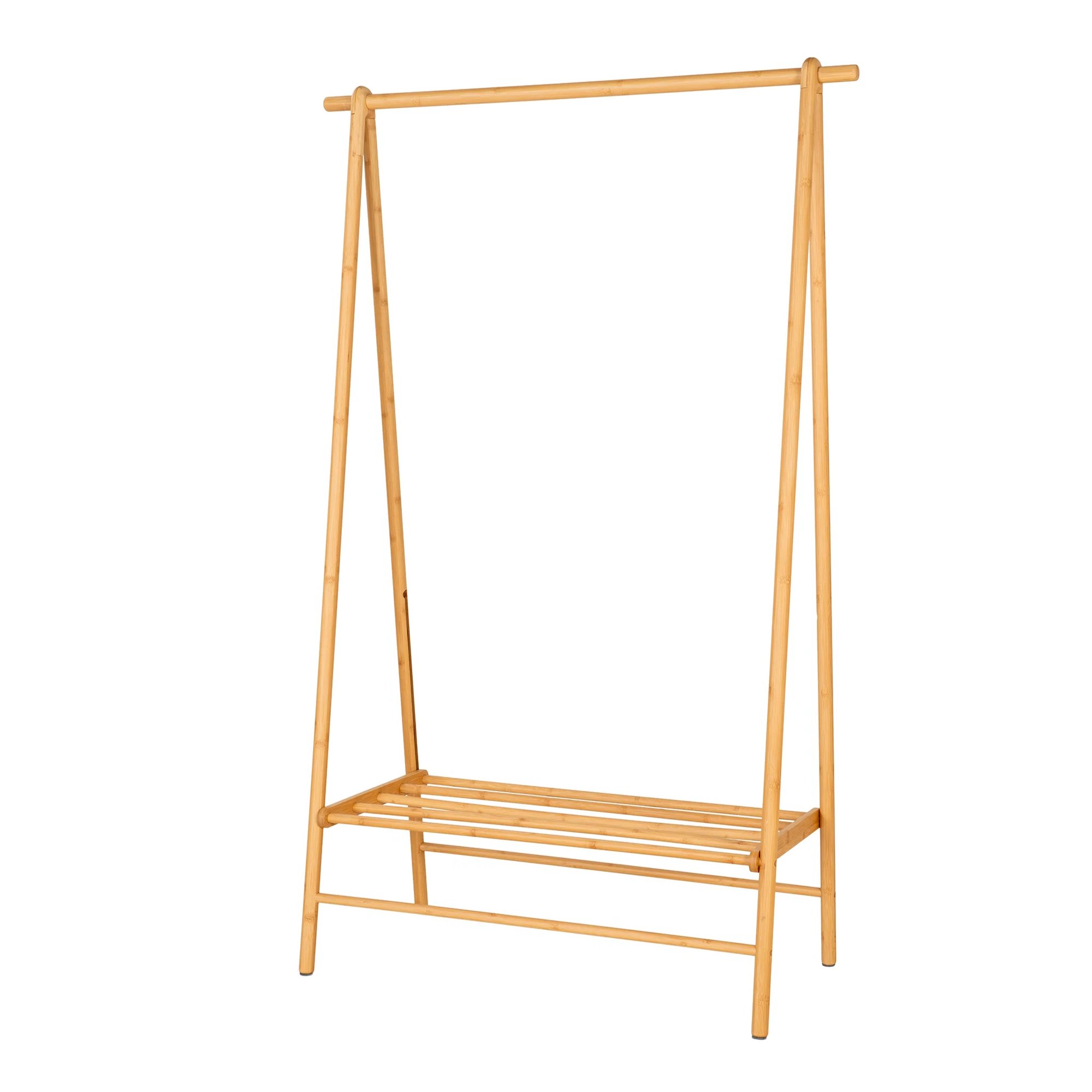 Věšák na oblečení MONOES vám pomůže přehledně si zorganizovat oblečení i doplňky, které chcete mít neustále po ruce. Na jeho výrobu byl použitý bambus, pro který je charakteristická odolnost a barevná stálost. Součástí věšáku je jedna šatní tyč o maximální nosnosti 13 kg, na kterou můžete zavěsit bundy a kabáty. Police ve spodní části s maximální nosností 7 kg poskytne prostor pro uložení bot nebo kabelek.