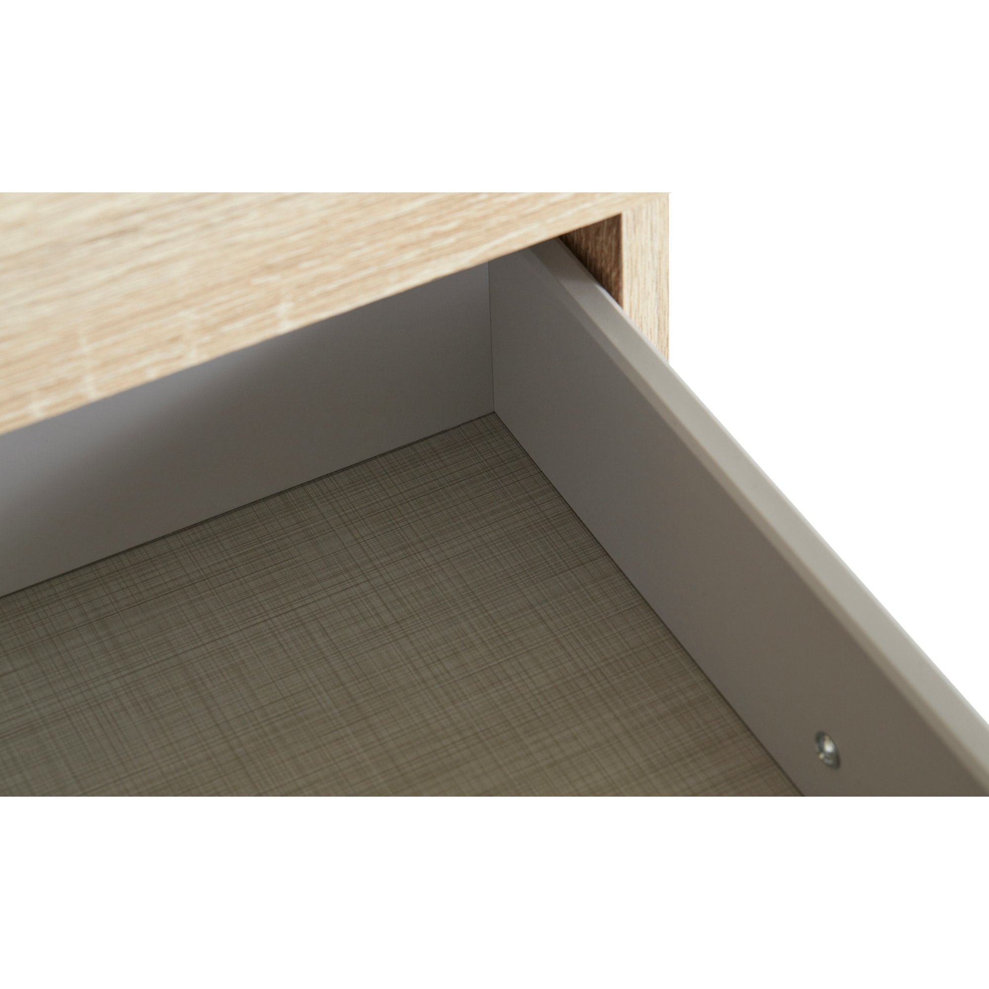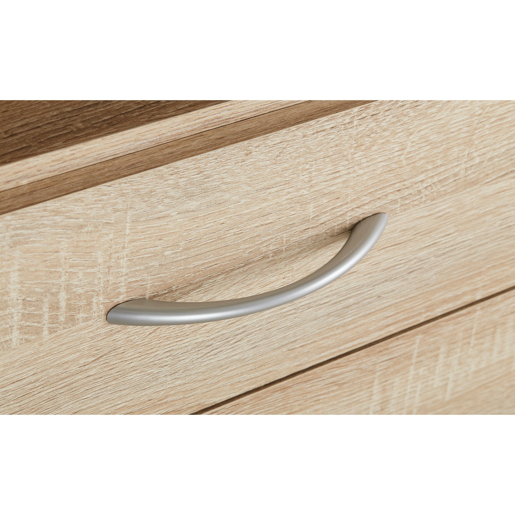 Komoda disponuje 2 vloženými policemi a 6 praktickými podlouhlými zásuvkami. Její korpus je vyrobený z laminovaného dřevěného materiálu, dvířka a police z fóliovaného dřevěného materiálu. Tyto materiály jsou nenáročné na údržbu. Chcete mít interiér sjednocený do jednoho stylu? Podívejte se na další nábytek ze stejnojmenného nábytkového programu MULTIRAUMKONZEPT.