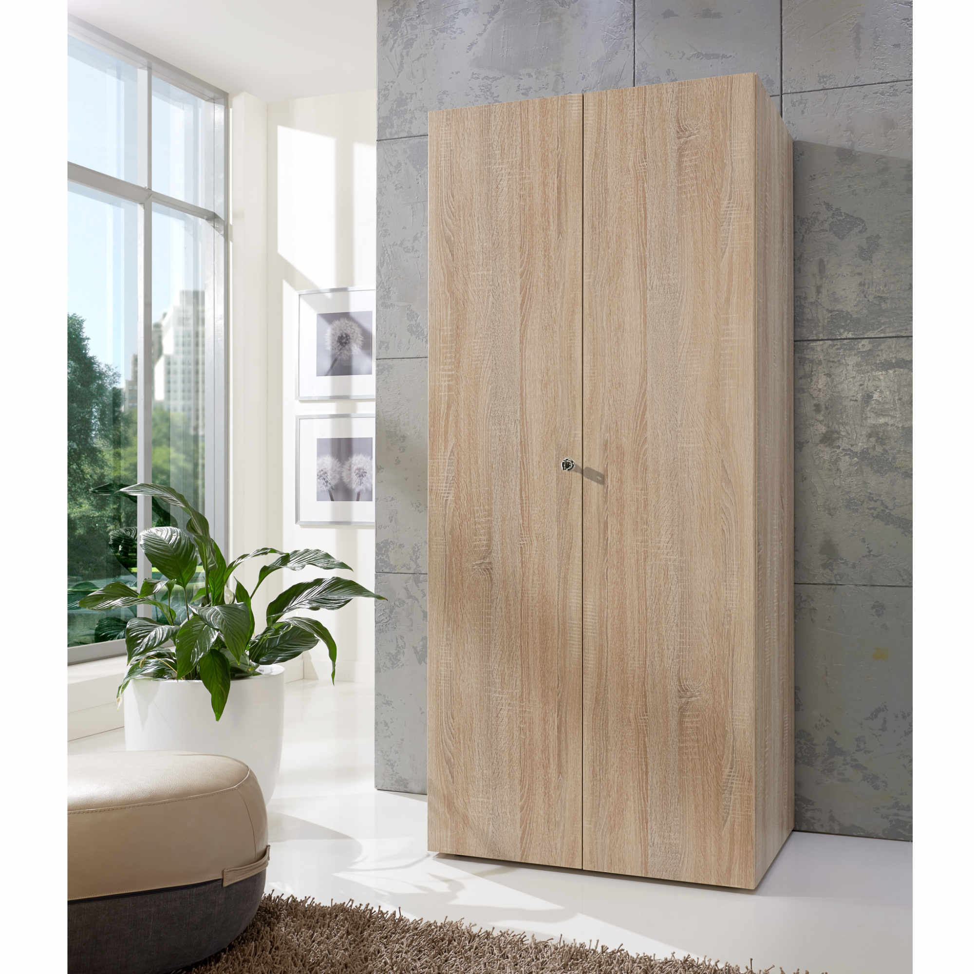 Skříň má 2 uzamykatelné otočné dveře, za nimiž se nachází 5 vložených polic. Díky dělenému prostoru, který si podle potřeby můžete výškově upravit, budete mít dokonalý přehled o uložených předmětech. Korpus skříně je vyrobený z laminovaného dřevěného materiálu a dvířka z fóliovaného dřevěného materiálu. Tyto materiály jsou nenáročné na údržbu.