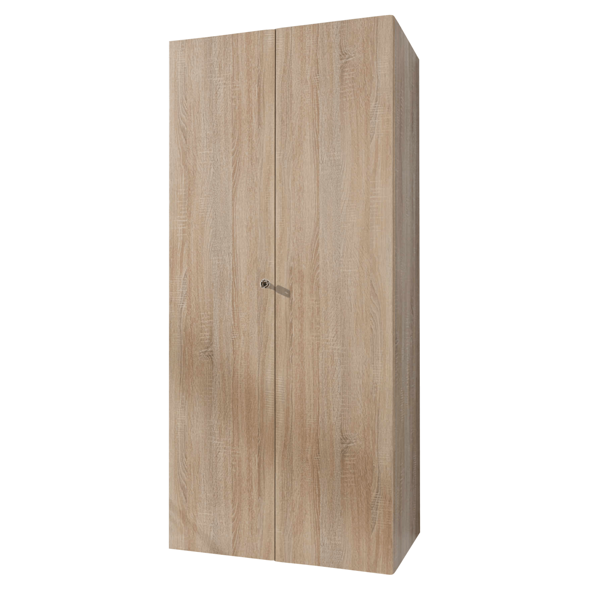 Skříň je uzavíratelná pomocí 2 uzamykatelných otočných dveří, za nimiž se nachází 4 vložené police a 1 šatní tyč. Díky dělenému prostoru, který si podle potřeby můžete výškově upravit, budete mít neustále přehled o uskladněných předmětech. Korpus skříně je vyrobený z laminovaného dřevěného materiálu a dveře z fóliovaného. Díky tomu je skříň nenáročná na údržbu.