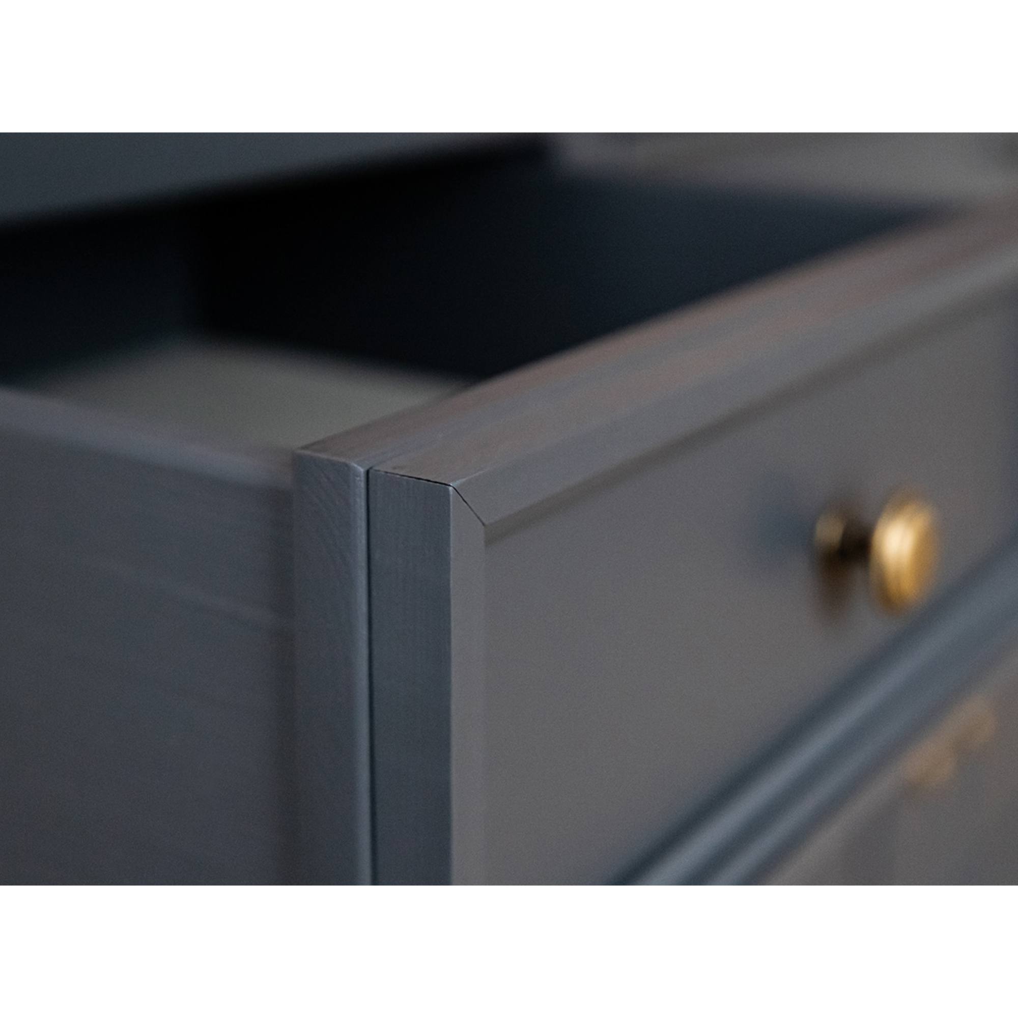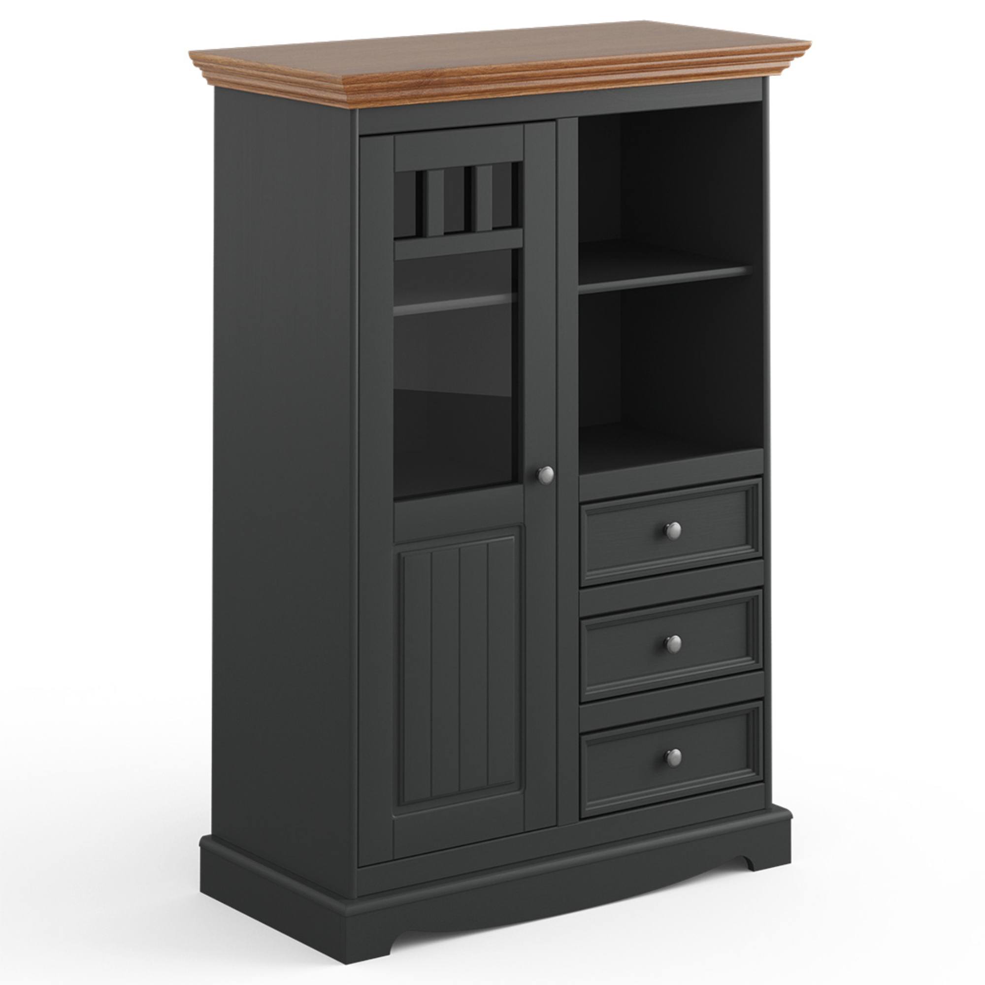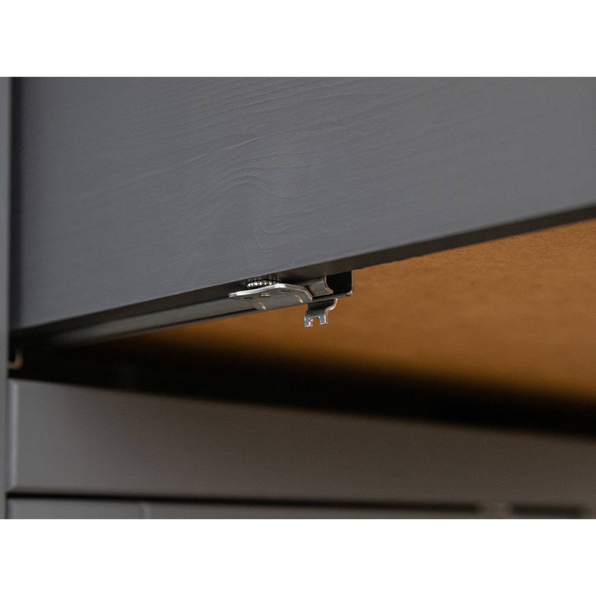 Do tří kompaktních zásuvek můžete uložit pasy, příbory nebo jiné drobnosti. Ve dvou otevřených přihrádek se zase budou vyjímat různé dekorace. Podobně můžete uspořádat police skryté za skleněnými dvířky. Dno vitríny dále využijete na dokumenty nebo jiné předměty, které není potřeba mít vždy na očích. Zásuvky disponují systémem dovírání SOFT CLOSE, což zvyšuje komfort používání nábytku.