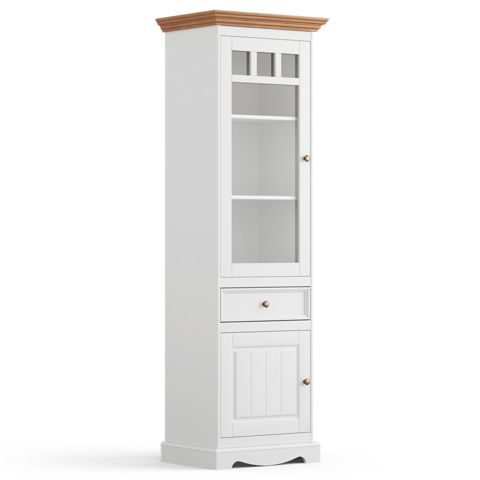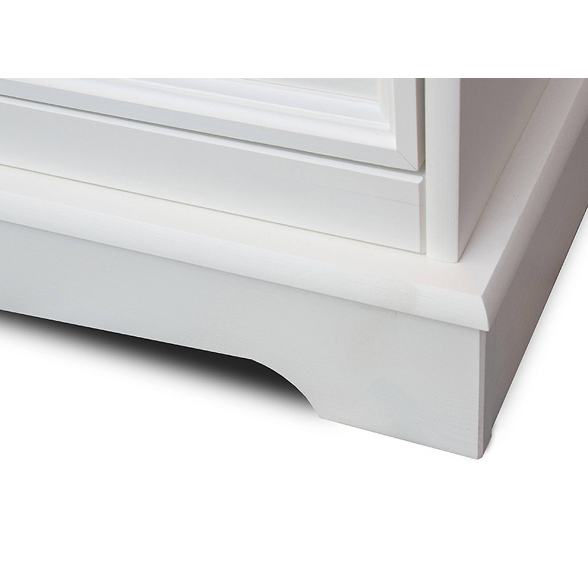 Vitrína BELLU se vyznačuje ozdobnými prvky zdůrazňují charakter provensálského stylu. Použité dřevo finské borovice se vyznačuje vysokou plasticitou a měkkostí. Ekologické dřevo borovice je snadno zpracovatelné, a přitom odolné.