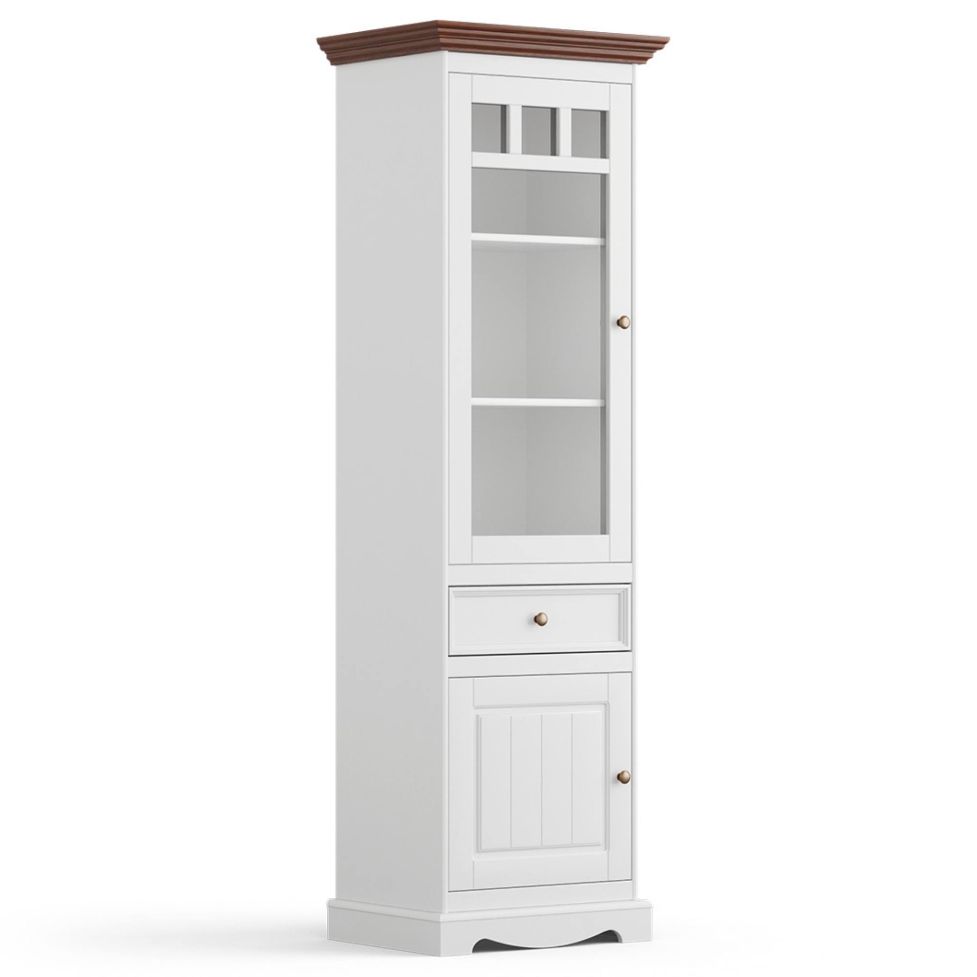 Vitrína BELLU - levá, ořech/bílá