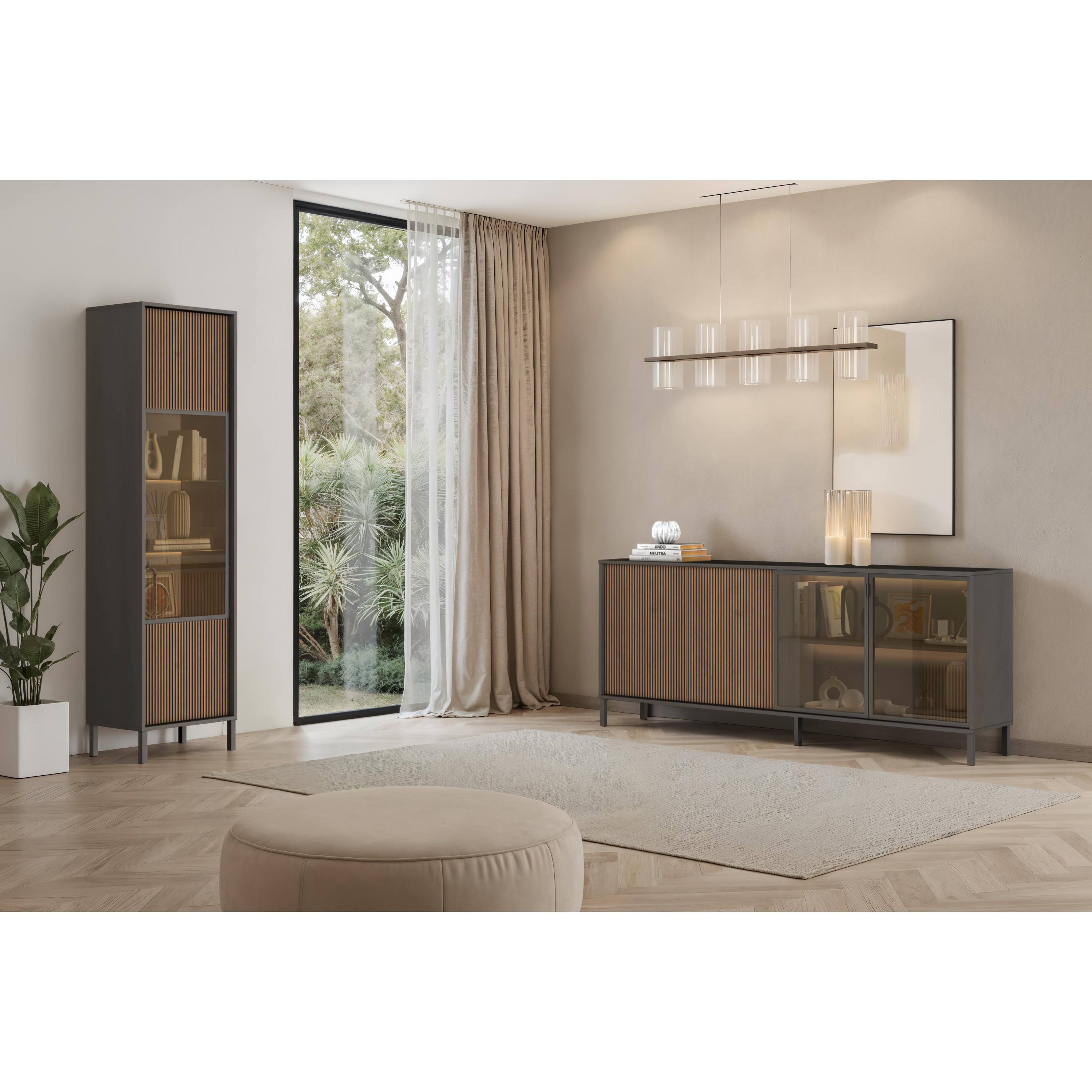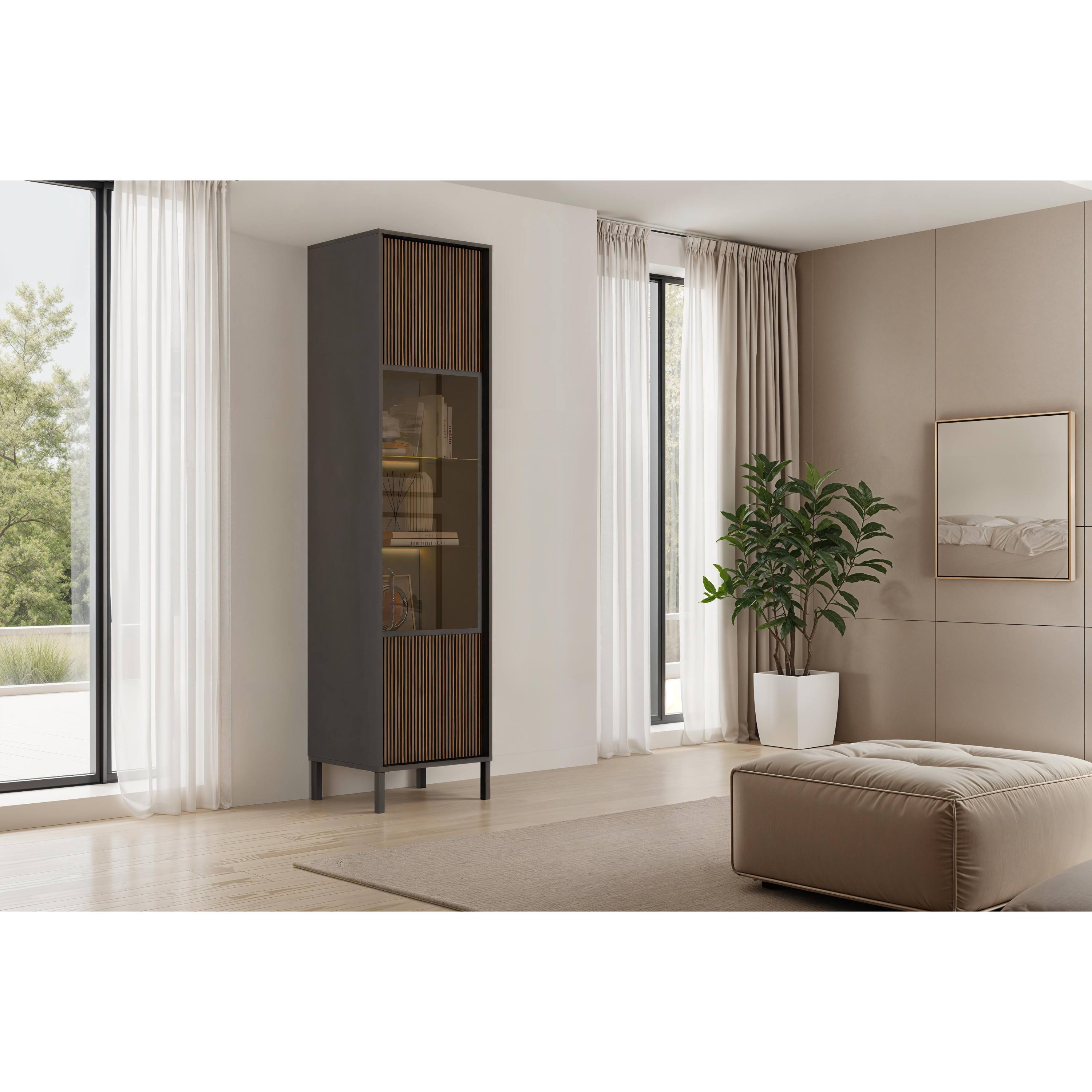 Vitrína CORTINA - antracitová/tmavě hnědá