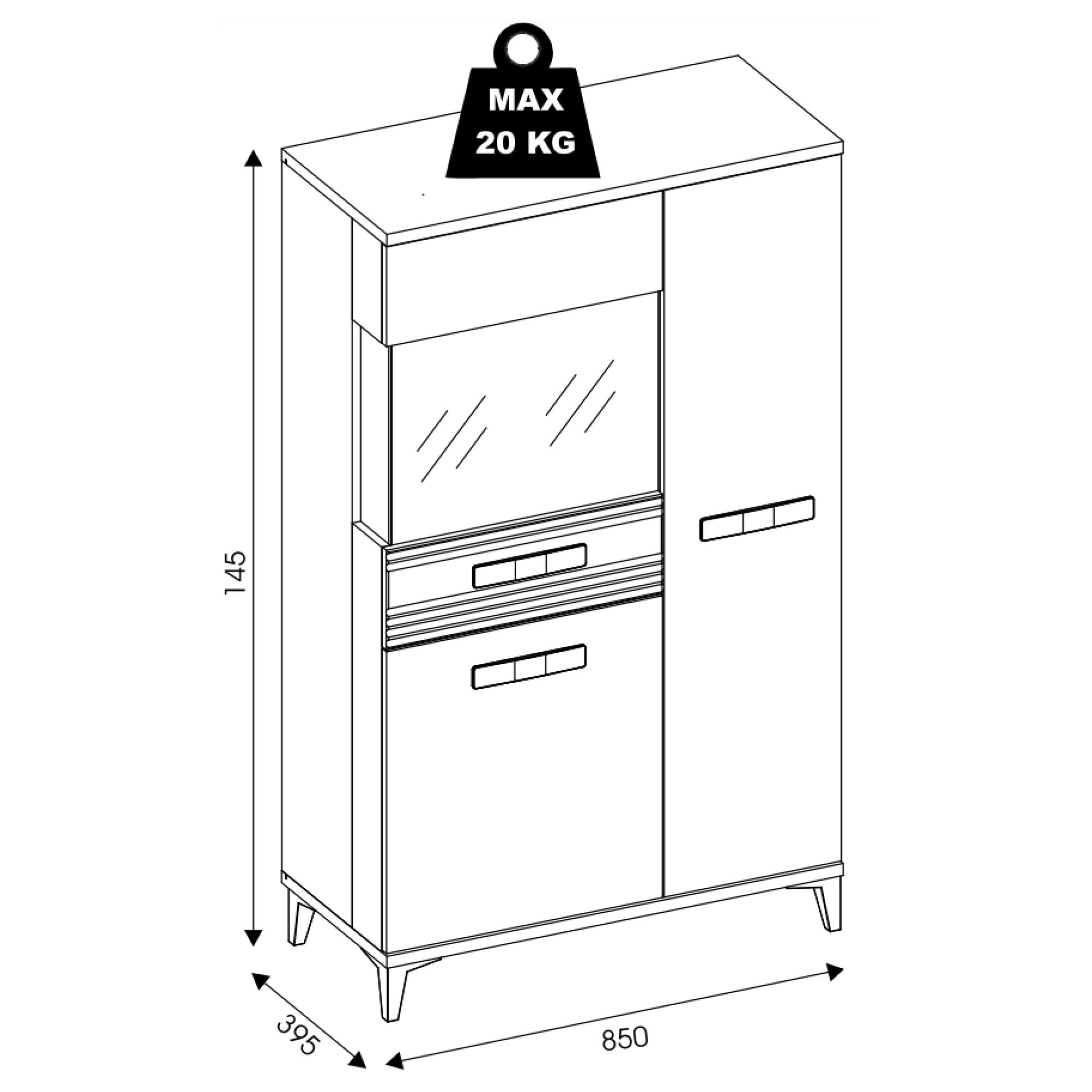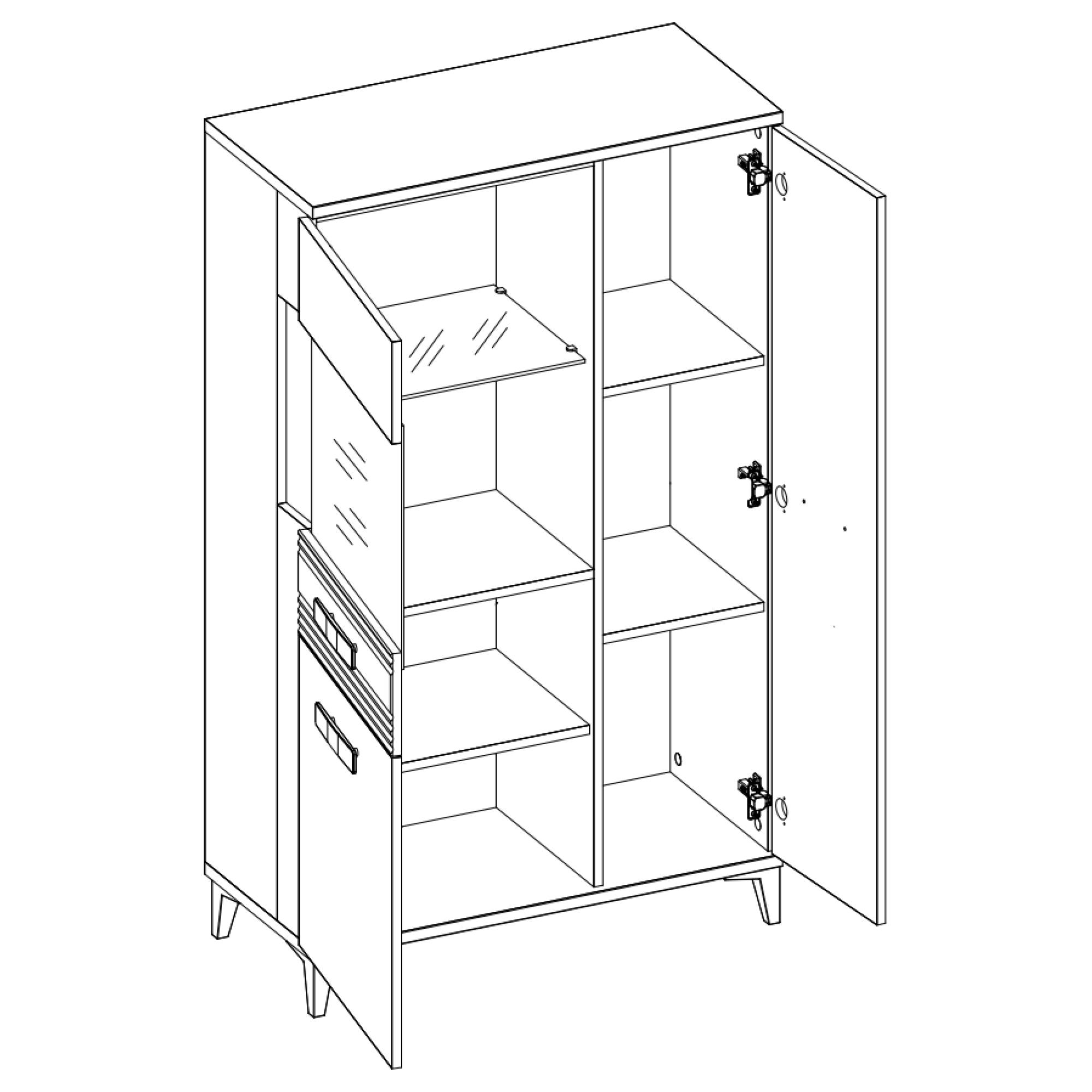 Úložný prostor se skládá z pěti vložených polic, z toho jedna je skleněná, takže vaše vystavené dekorace budou za prosklenými dvířky vždy na očích. Manipulaci dvířek vám navíc usnadní mechanismus nerušeného zavírání SOFT CLOSE. Povrch vitríny se vyznačuje jednoduchou údržbou.