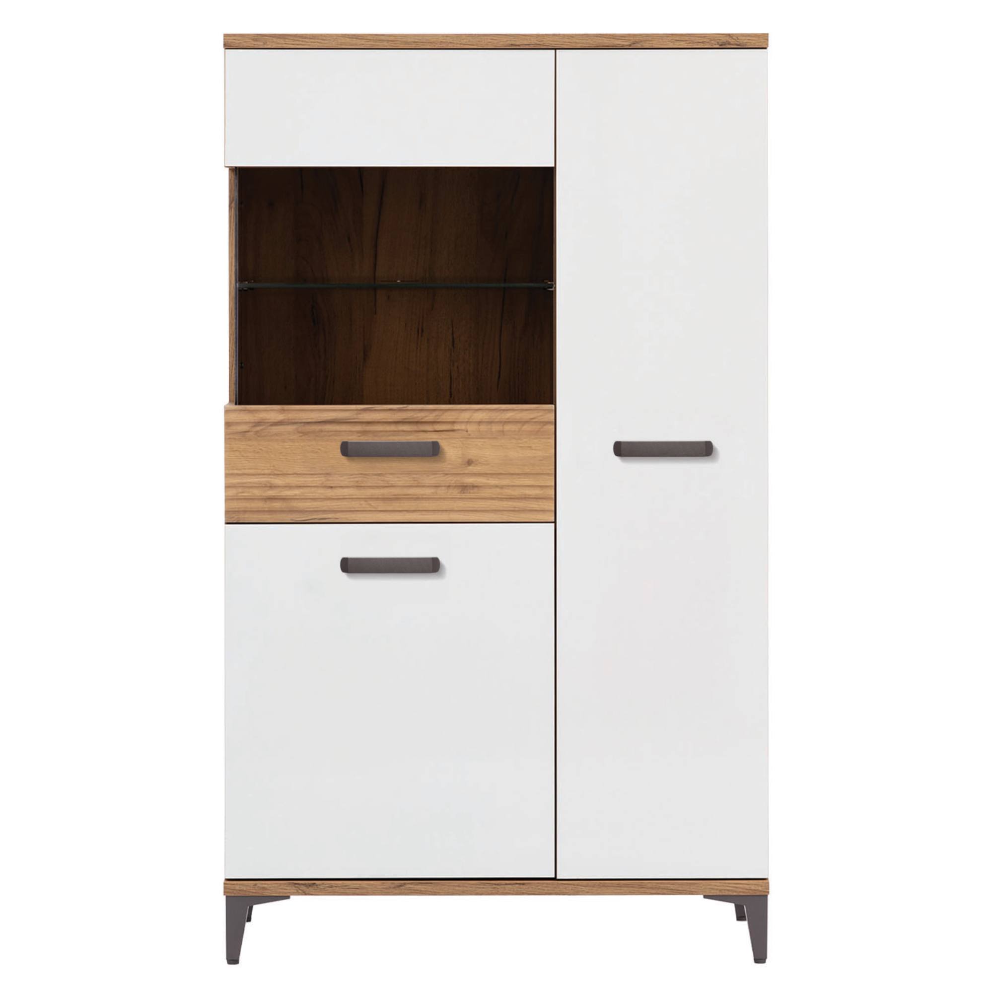 Vitrína DARCY SB6 stavěná ve skandinávském stylu vám poskytne funkční prostor pro uložení všeho potřebného, ale zároveň se stane ozdobou vašeho interiéru. Dokonalé spojení přírodního dekoru zlatého řemeslného dubu a alpské bílé vytvoří ve vašem obývacím pokoji reprezentativní vzhled.