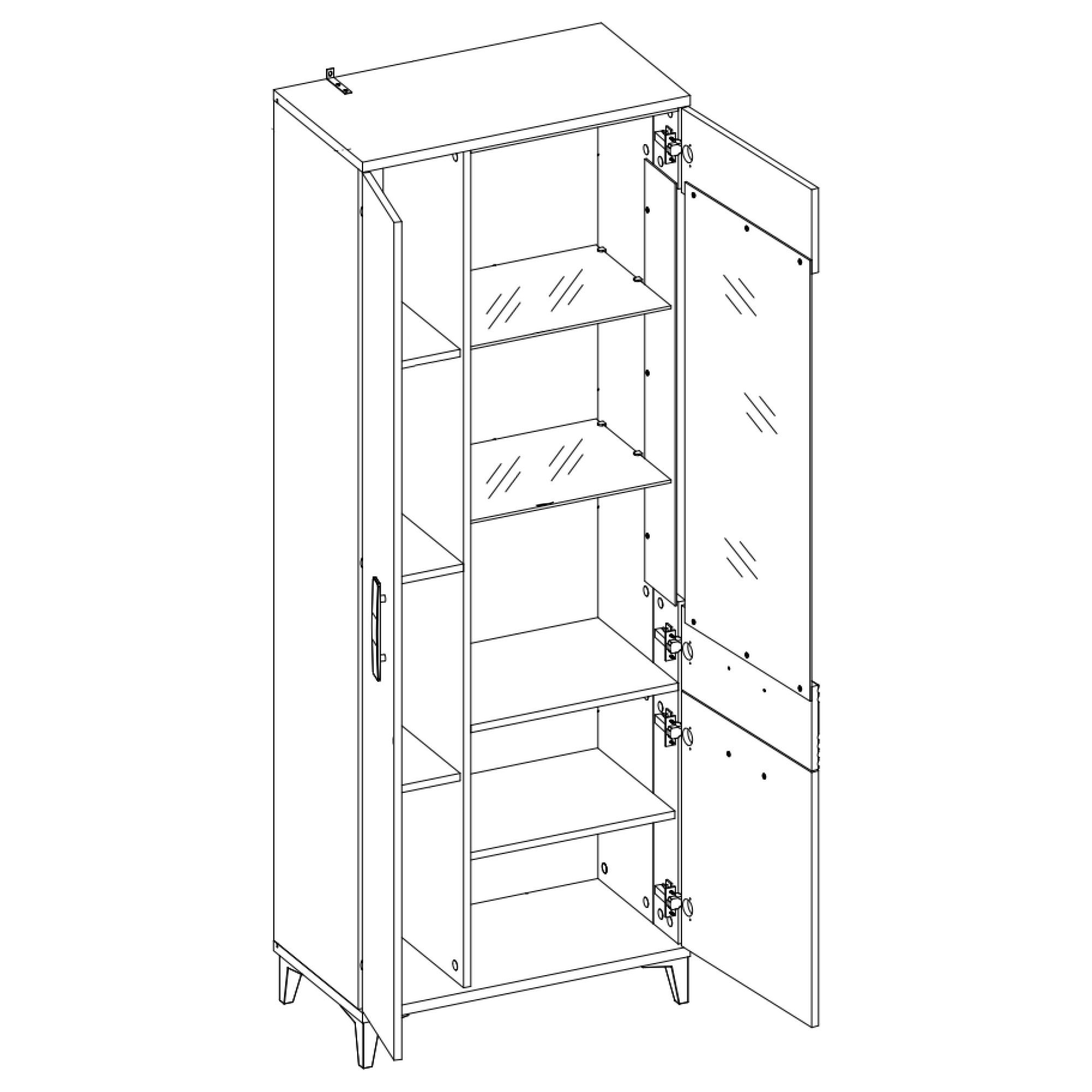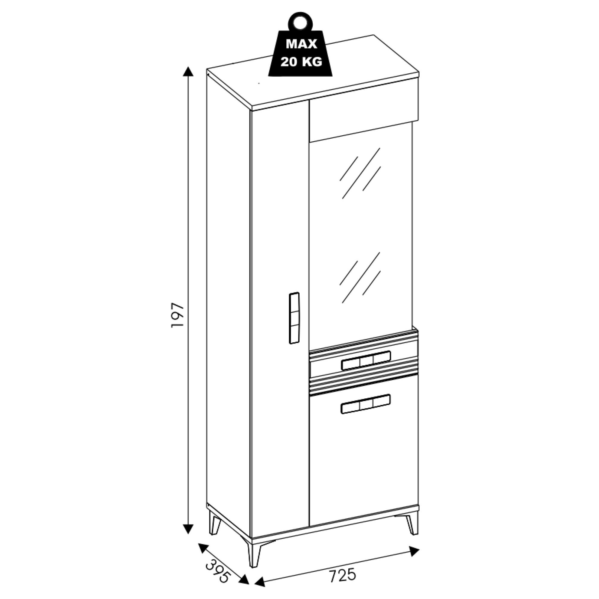 Úložný prostor se skládá ze sedmi vložených polic, z toho dvě jsou skleněné, takže vaše vystavené dekorace budou za prosklenými dvířky vždy na očích. Manipulaci dvířek vám navíc usnadní mechanismus nerušeného zavírání SOFT CLOSE. Povrch vitríny se vyznačuje jednoduchou údržbou.
