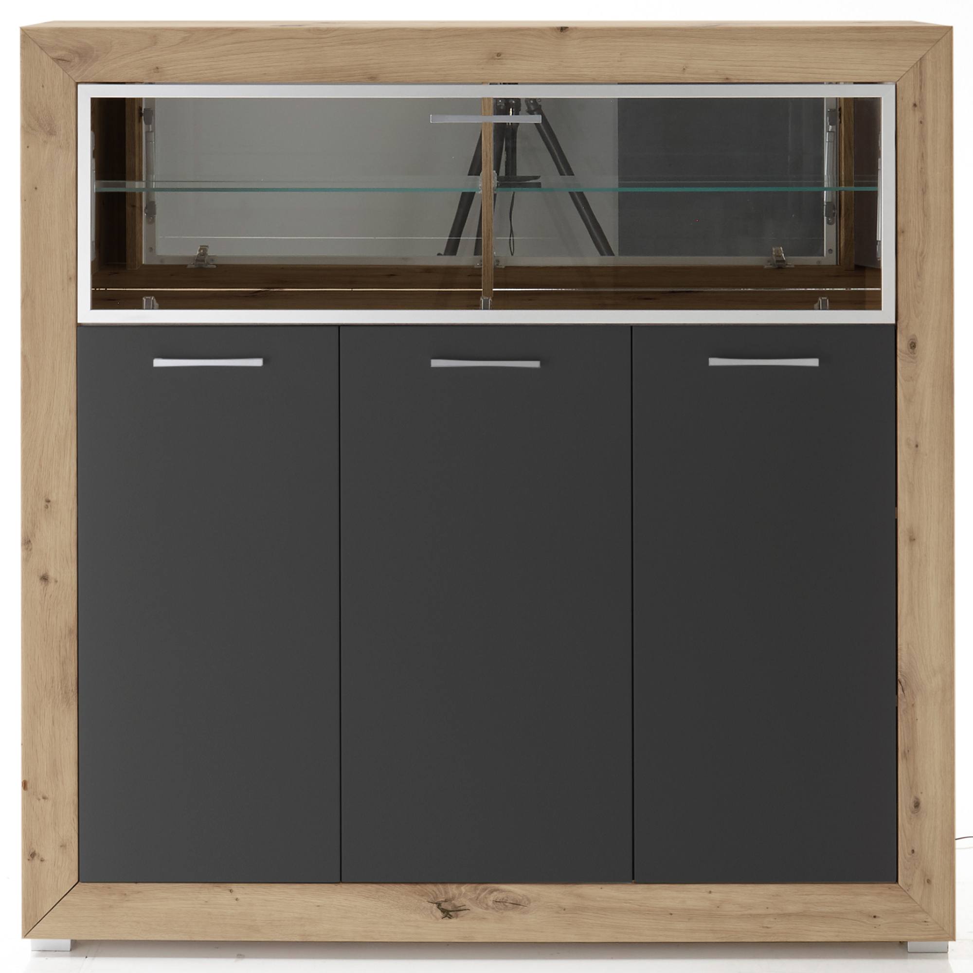 Vitrína FERNANDO T21 - dub artisan/matná šedá