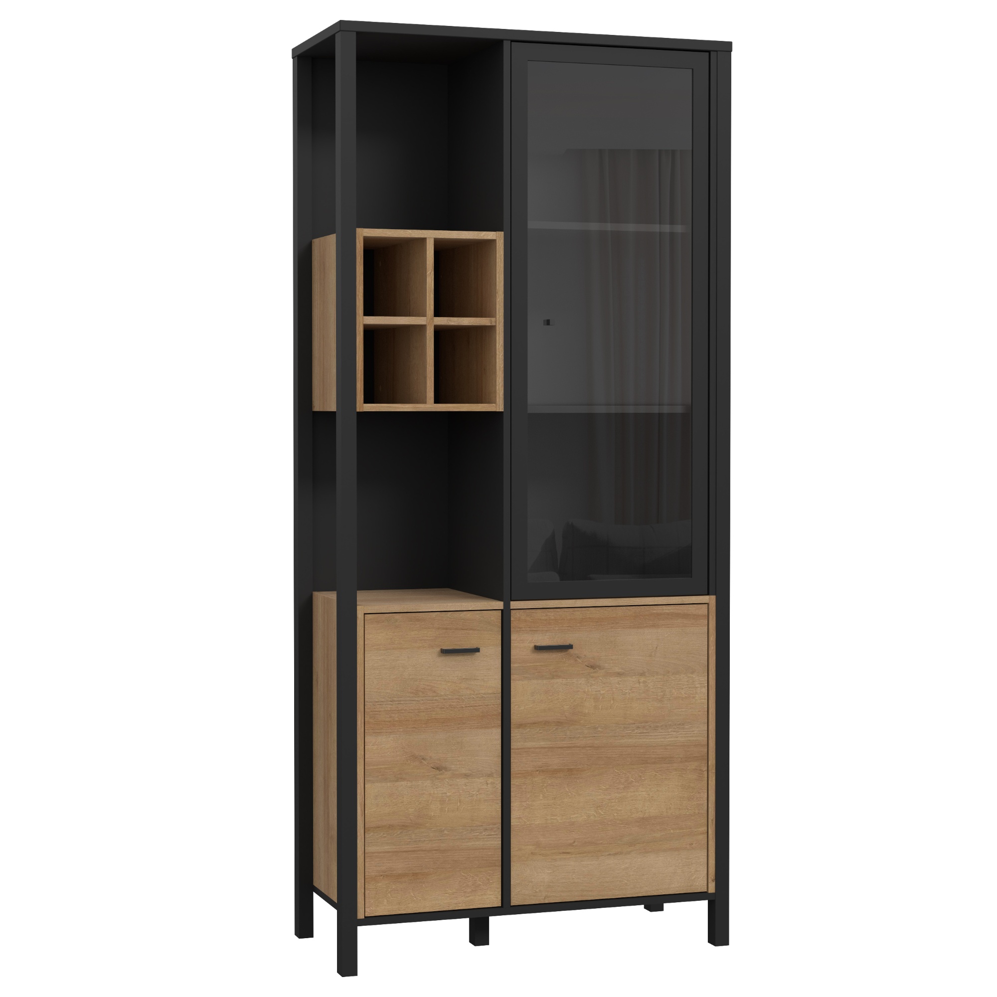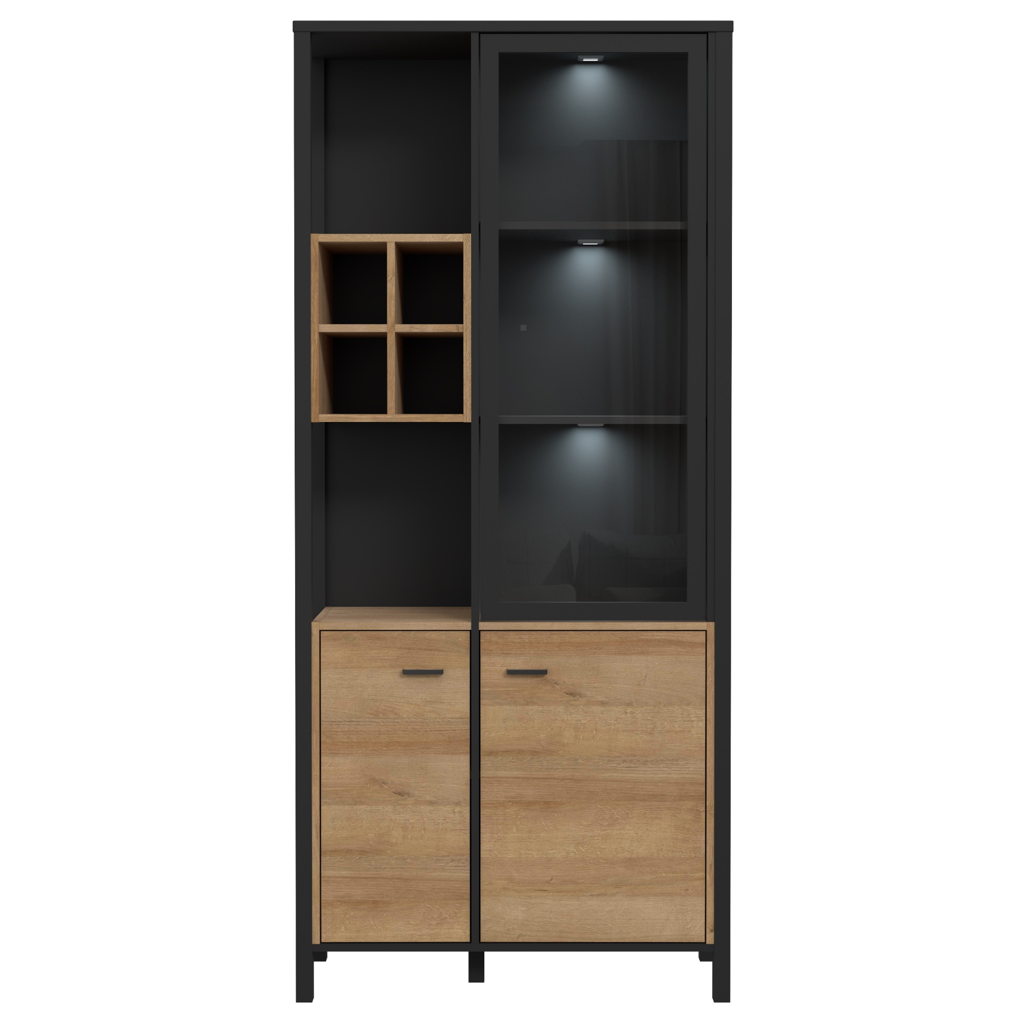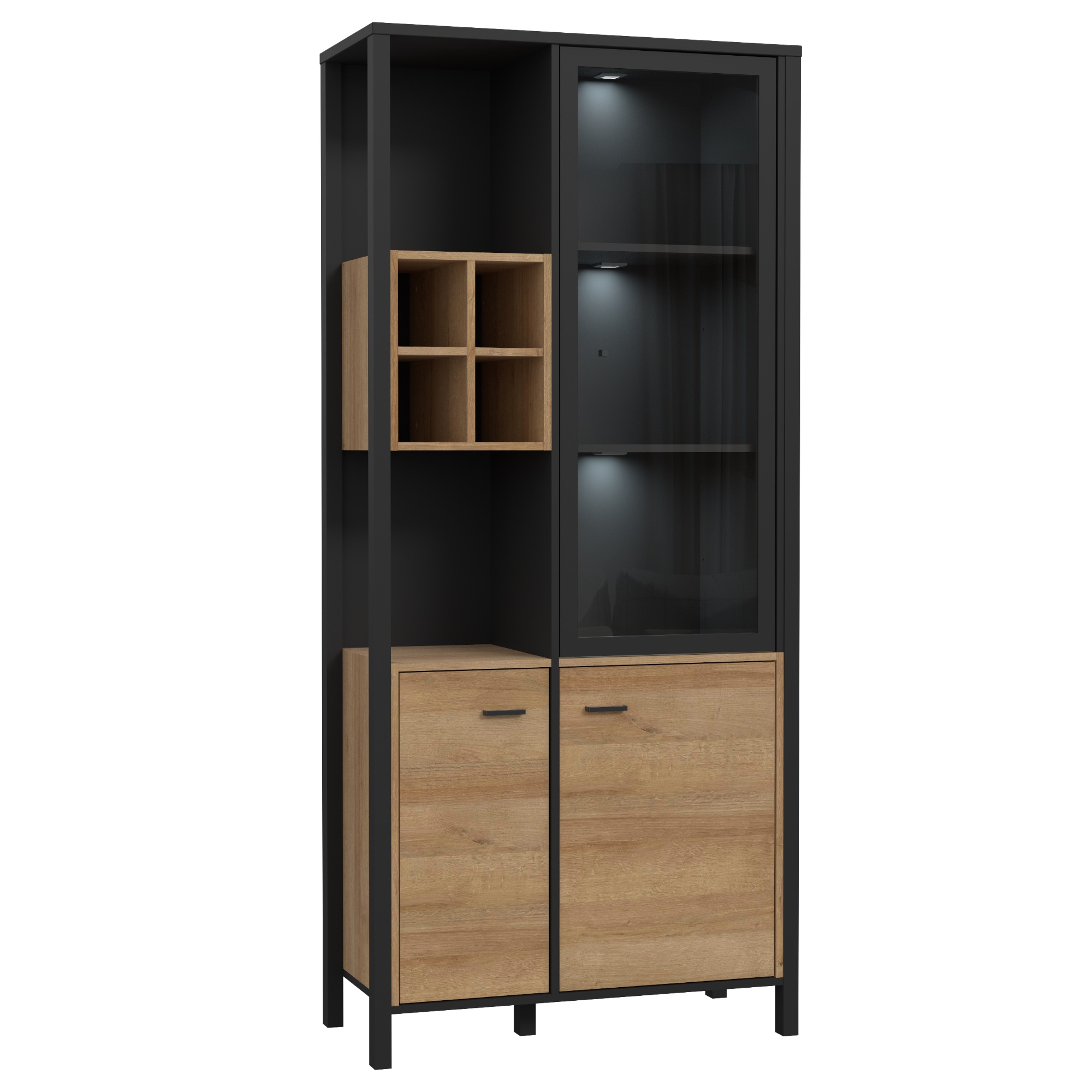Vitrína HIGH ROCK 9 - černá/dub riviera