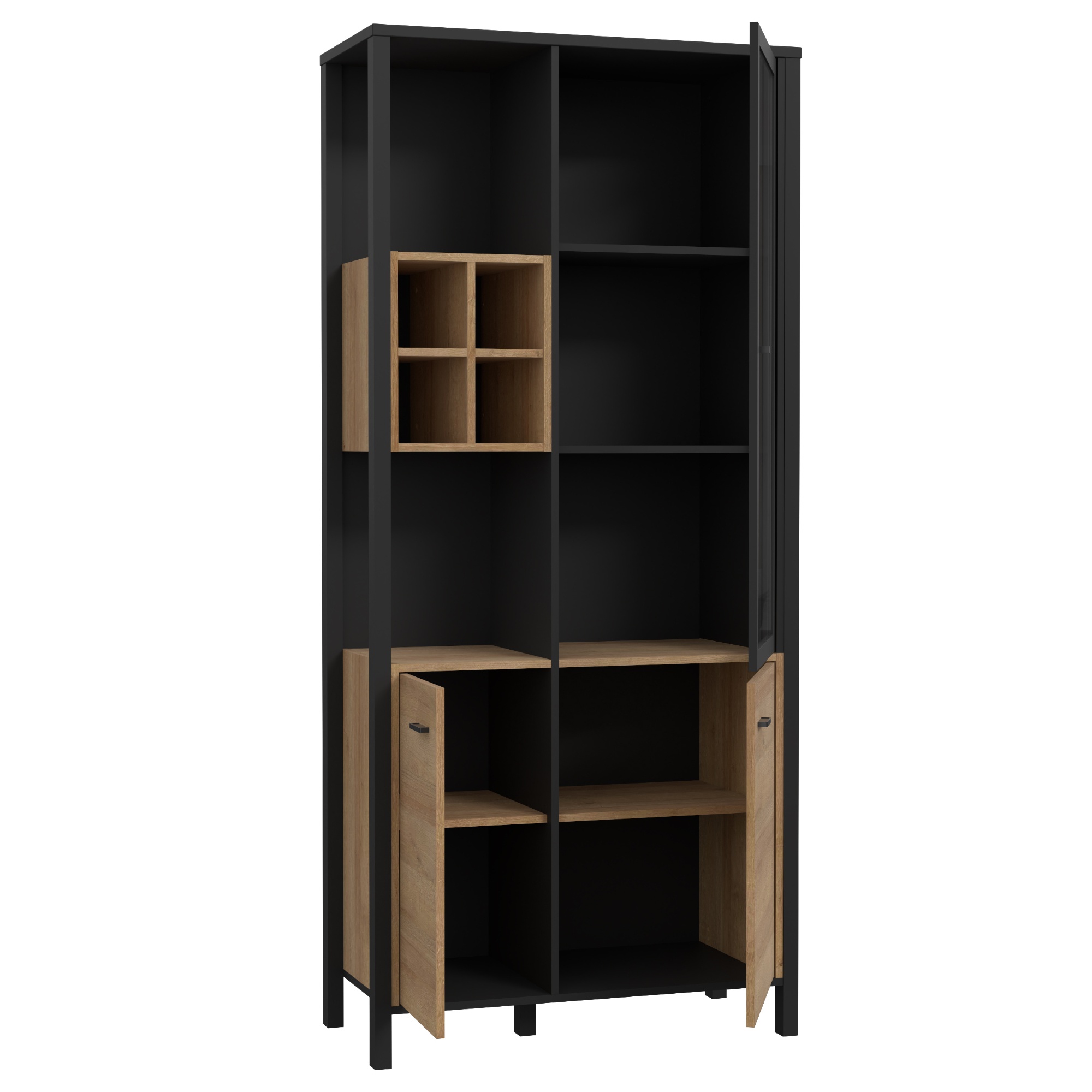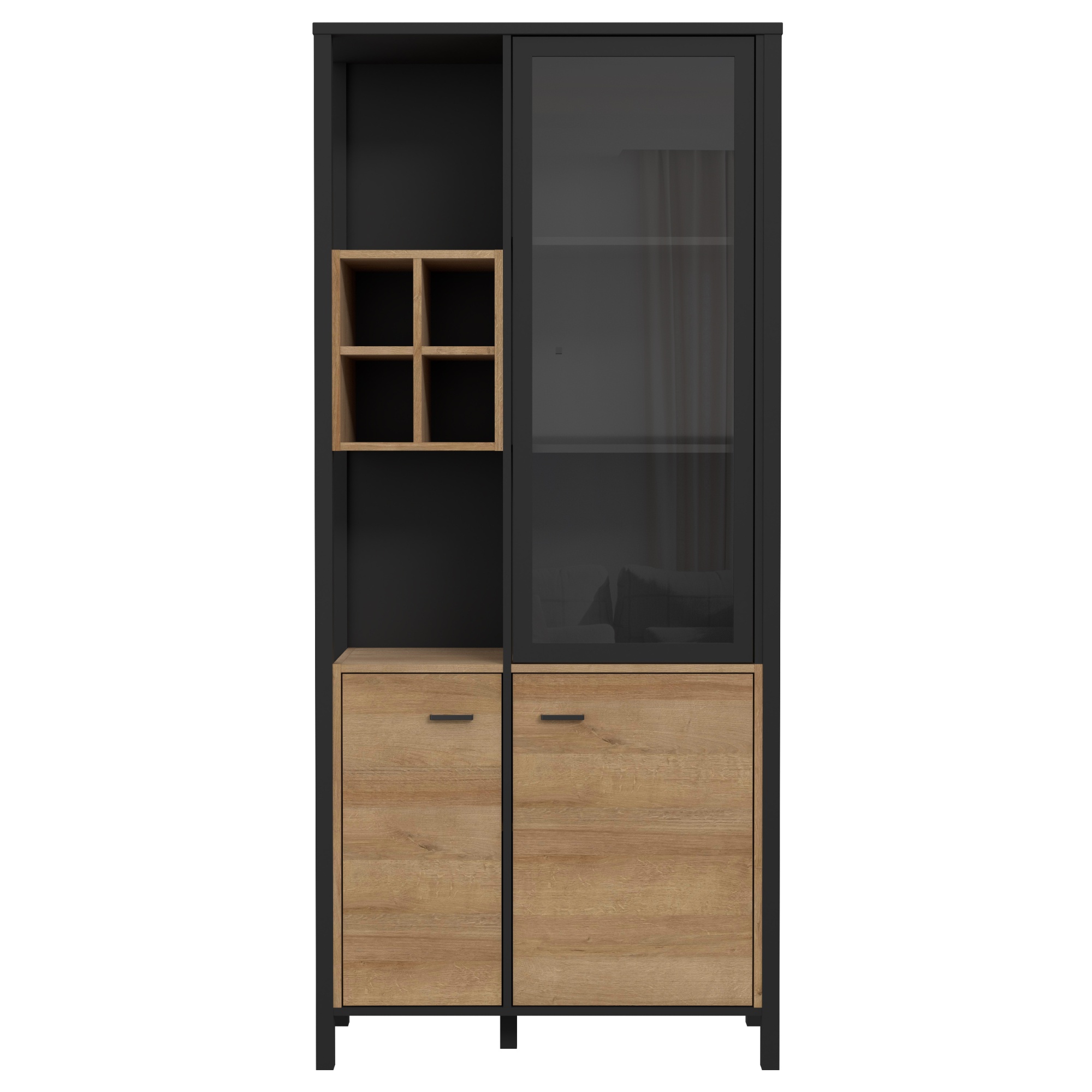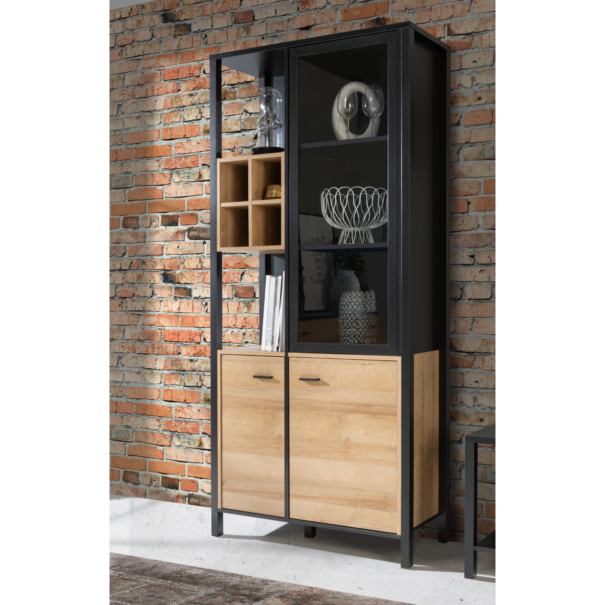 Vitrína HIGH ROCK 9 - černá/dub riviera