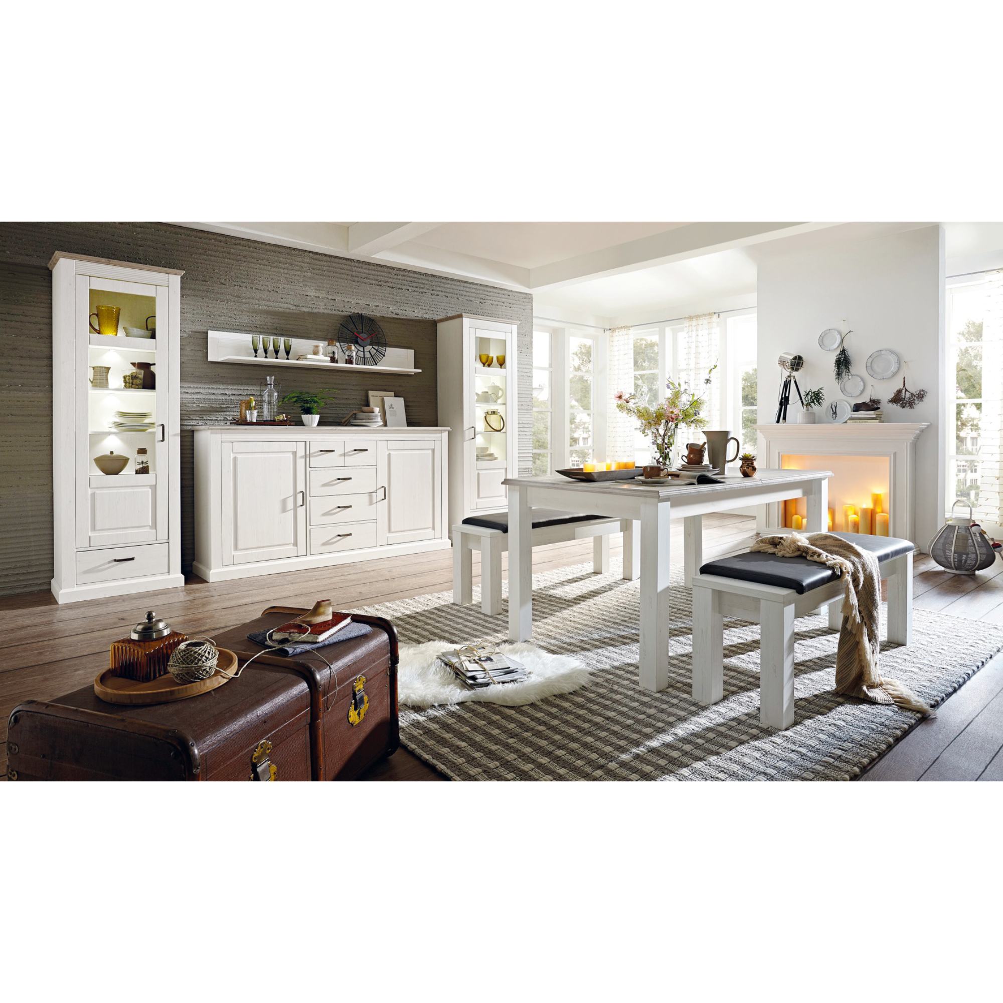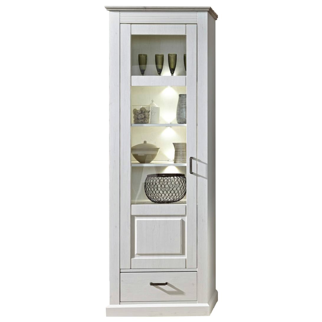 Elegantní vitrína LIMA inspirovaná provence stylem, která zaujme barevnou kombinací dřevěného dekoru pinie a bílé. Úložný prostor je prakticky rozdělen do čtyř polic a jedné spodní zásuvky. Vystavené předměty za prosklenými dvířky vám zvýrazní dodávané LED osvětlení. Zásuvka a dvířka jsou opatřena systémem tichého dovírání SOFT CLOSE. Horní pilastr a kovové úchyty dotváří celkový vzhled. Element je dodáván částečně smontovaný.