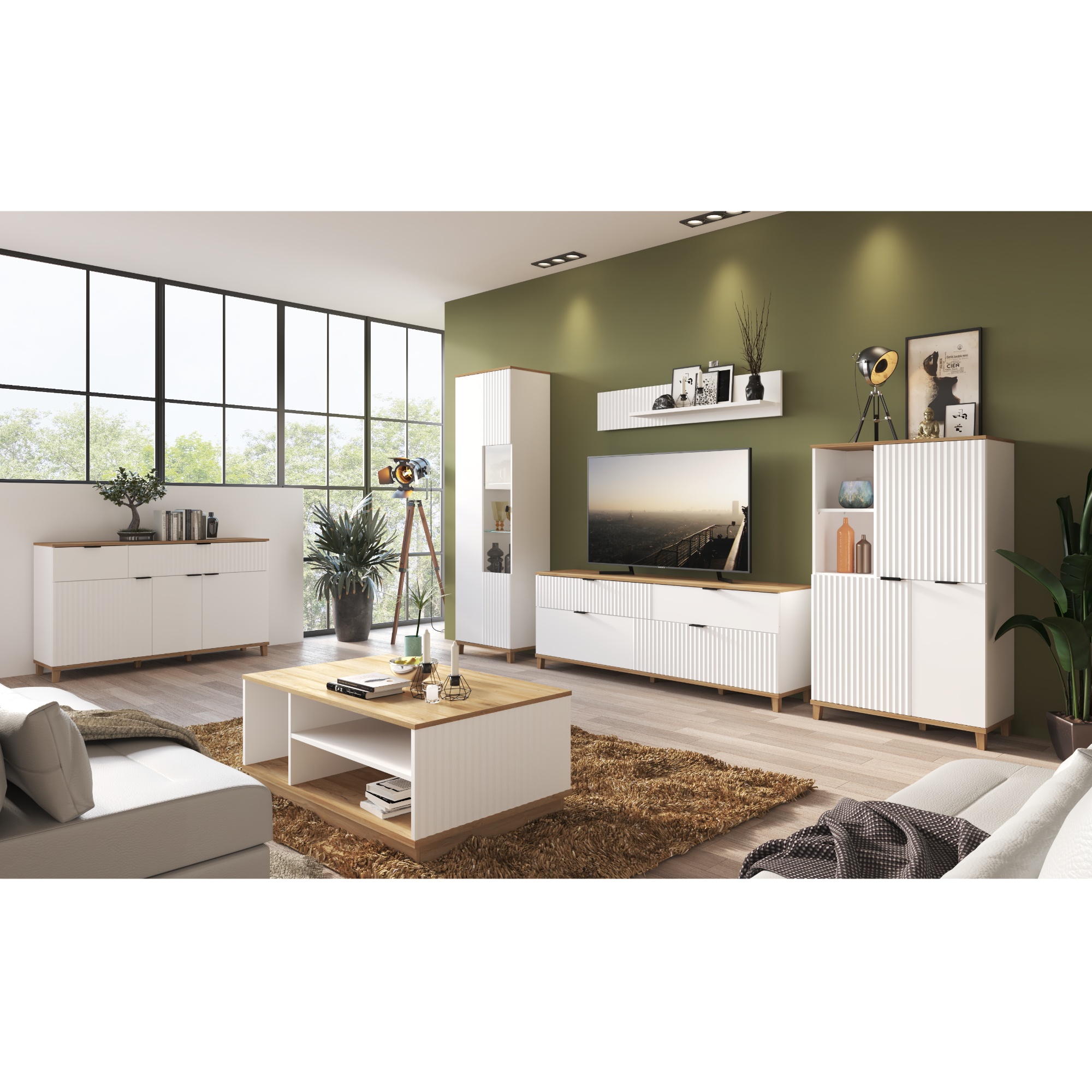 Vitrína PLISSEE PLIV01 dodá obývacímu pokoji styl a díky dostatečnému úložnému prostoru udrží v místnosti řád a pořádek.