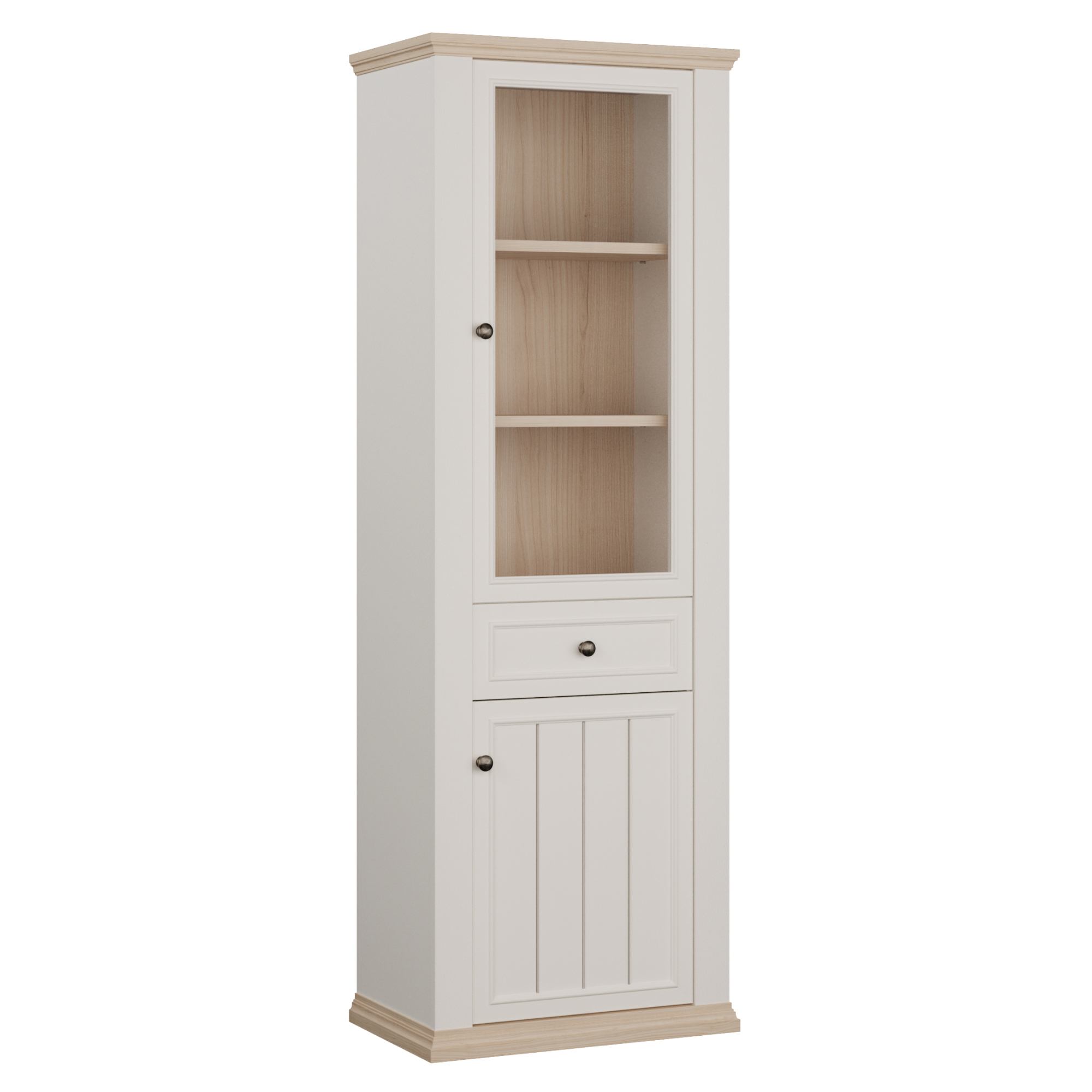 Vitrína PONTYPOOL - bílá/dub riva, šířka 70 cm, levá/pravá