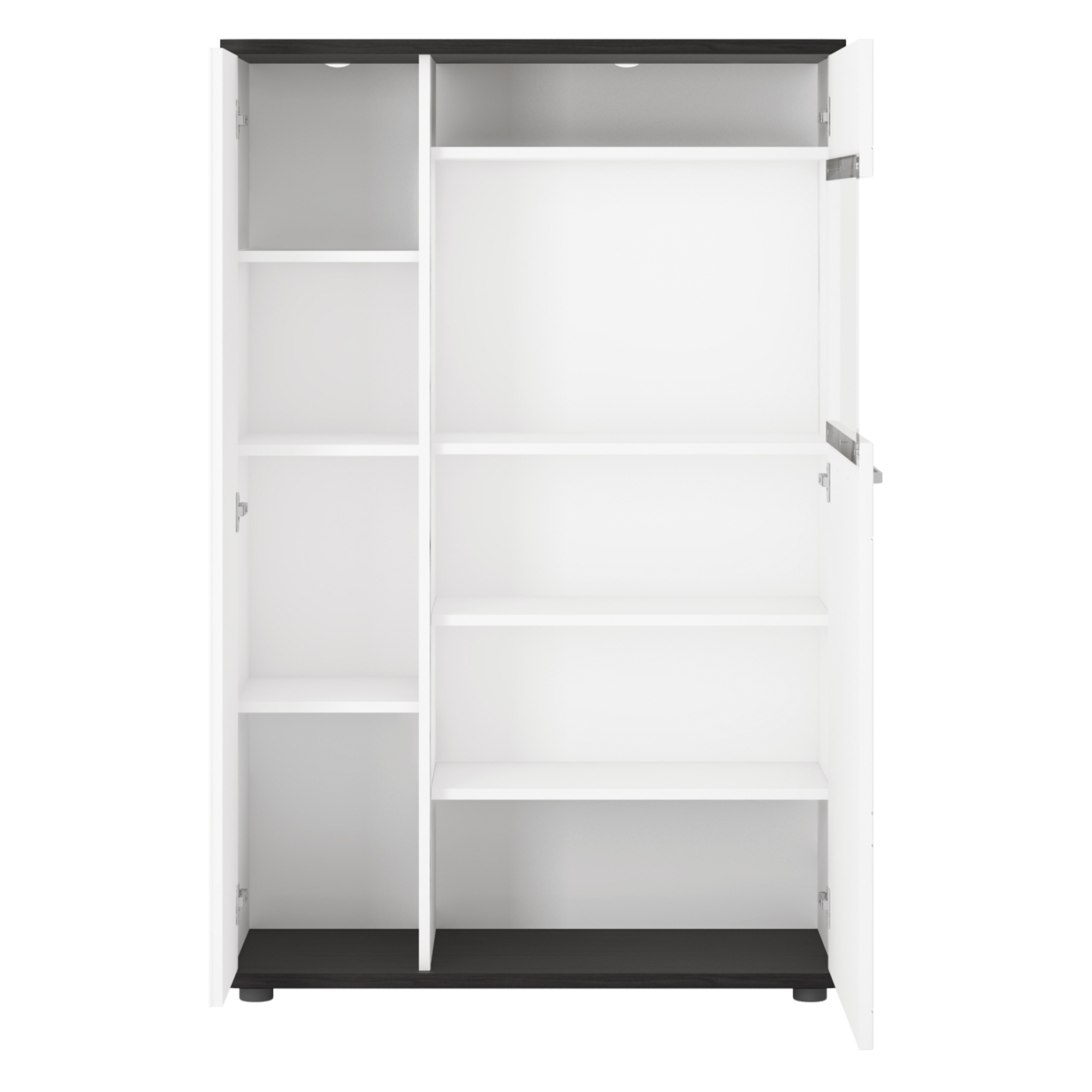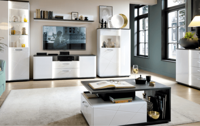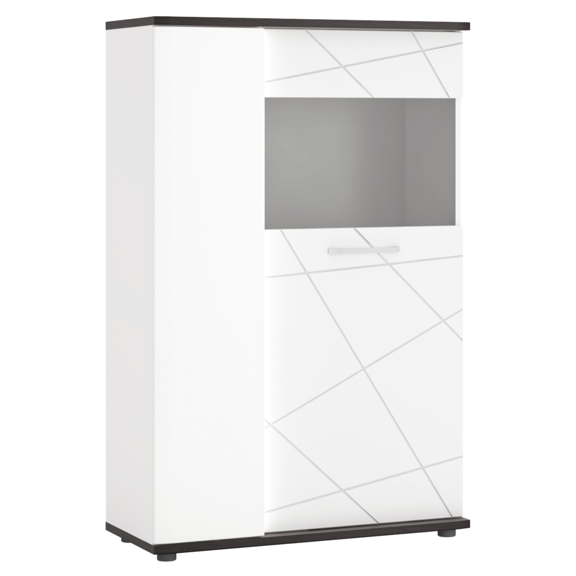 Vitrína VENEZIA VENV02 v klasické kombinaci alpské bílé a černé dodá každé místnosti moderní a čistý nádech. Nejlépe zapadne do moderně laděných obývacích pokojů.