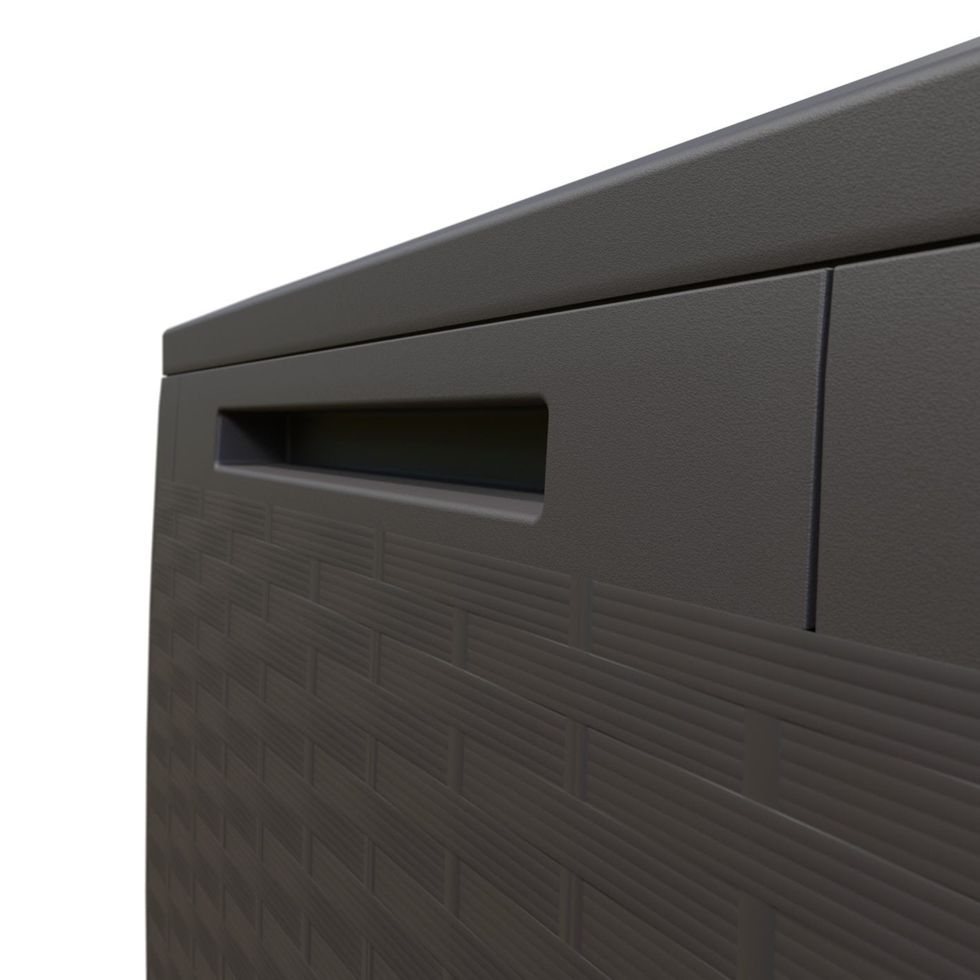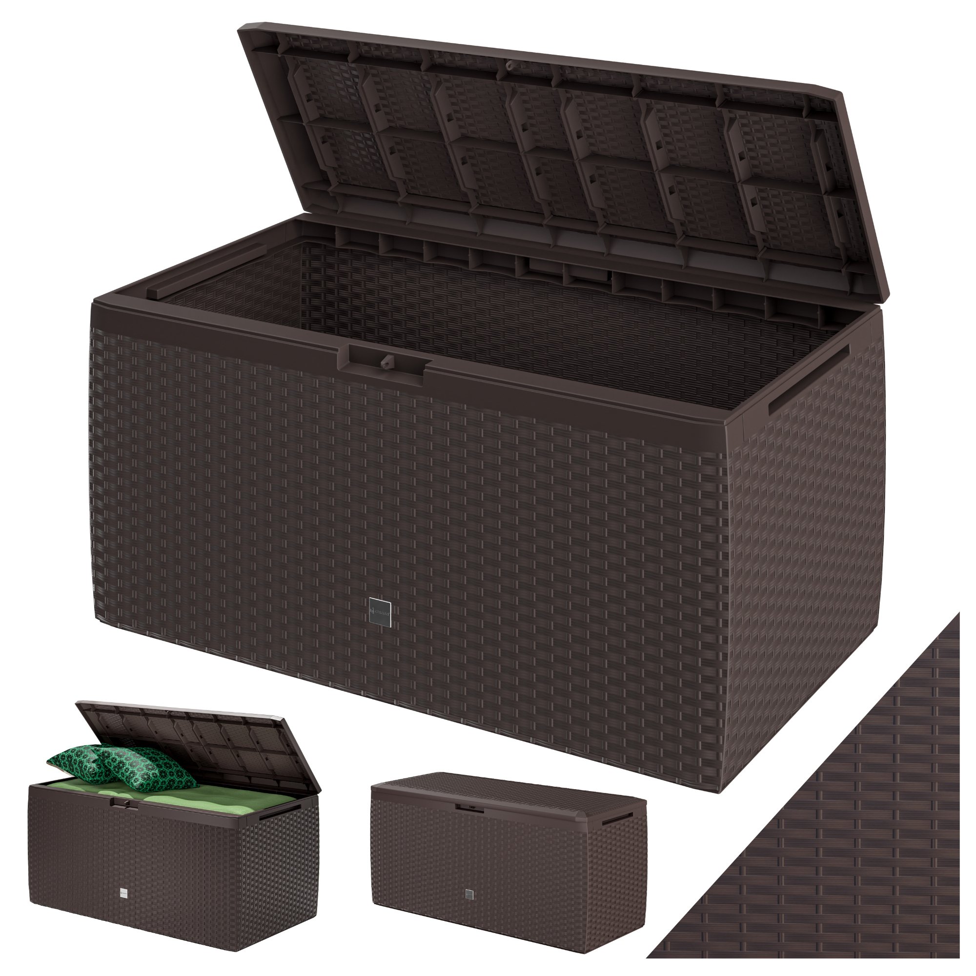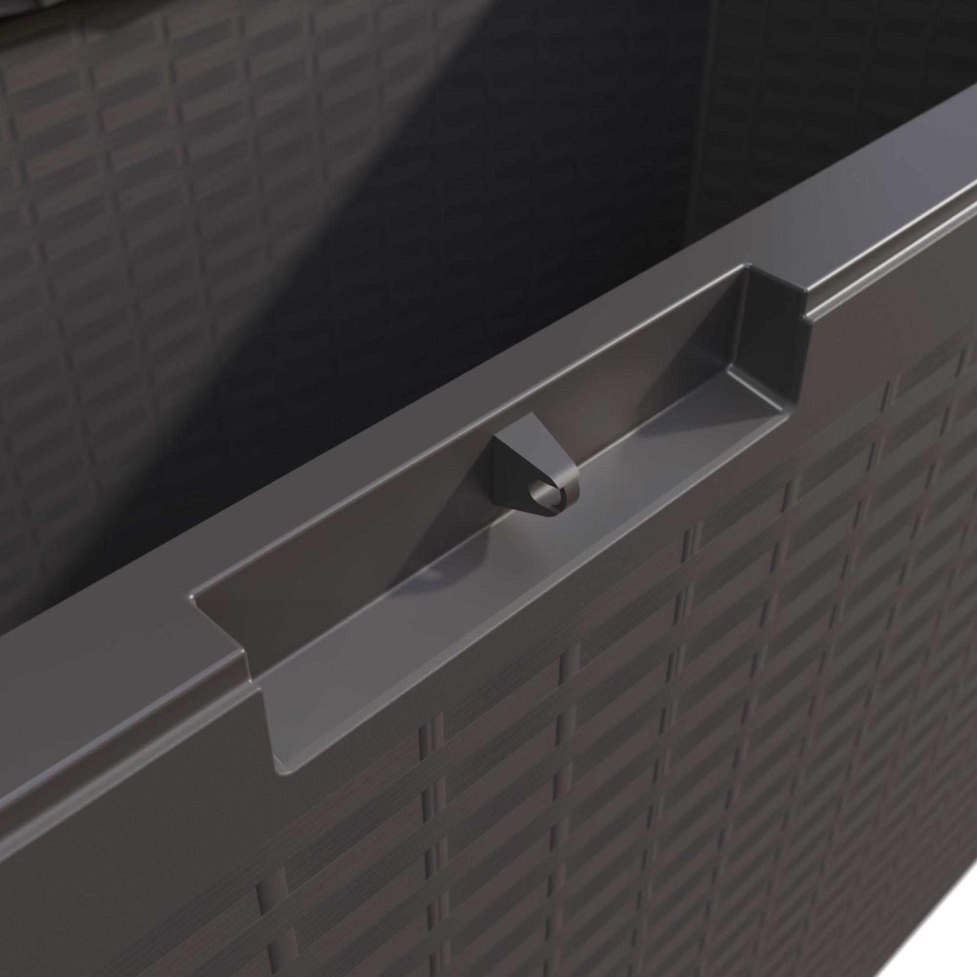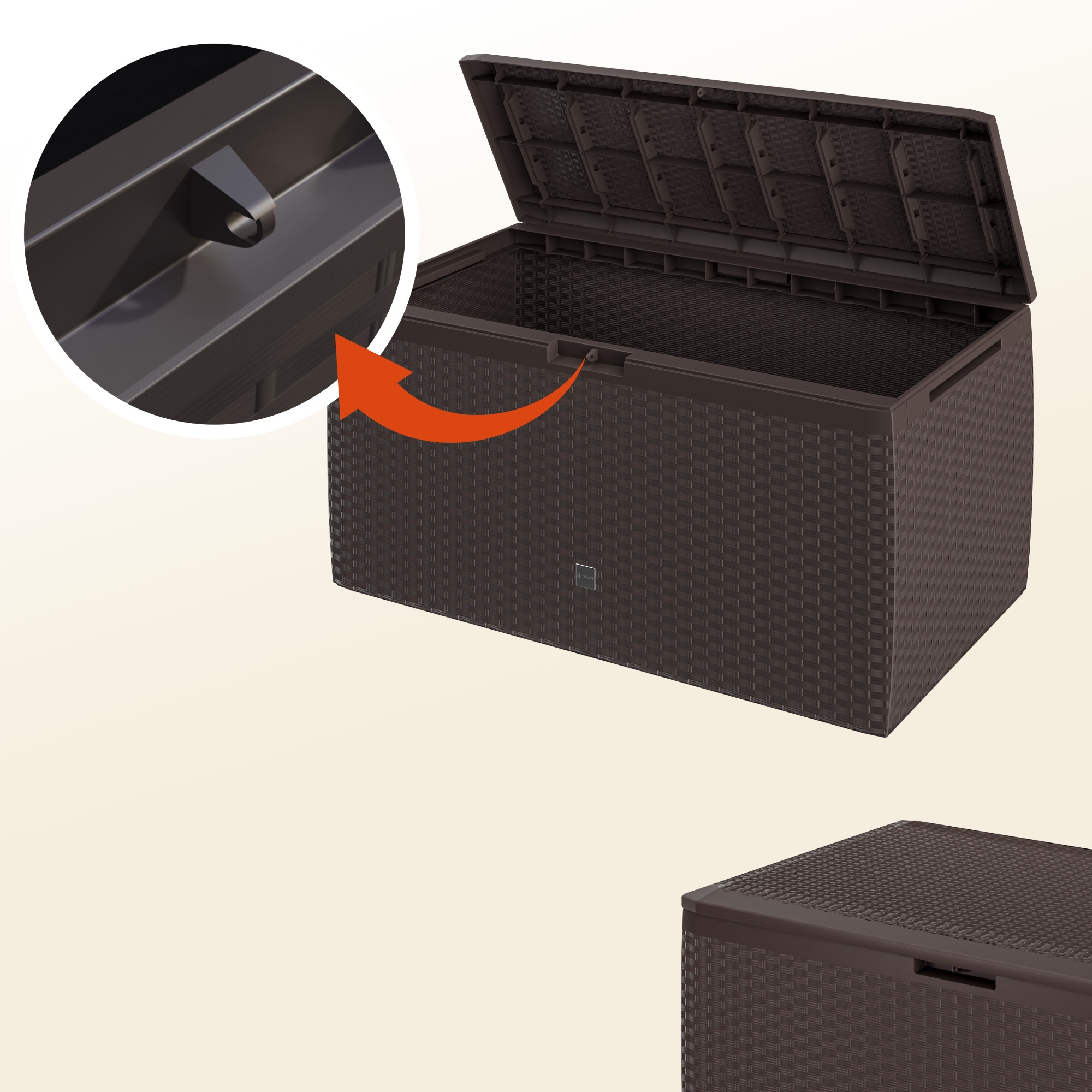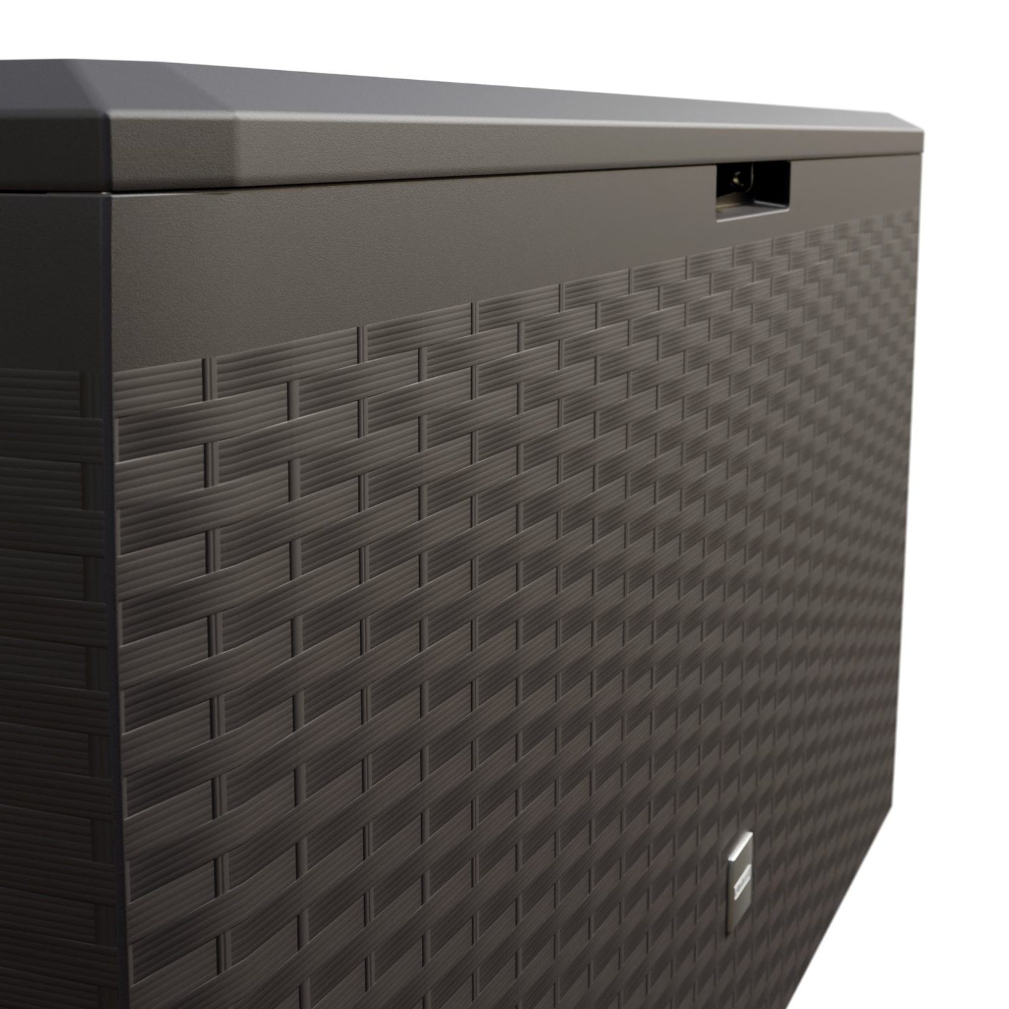Je vyroben z polypropylenu, odolného vůči povětrnostním vlivům a UV záření. Je tedy ideální volbou pro celoroční použití. Jeho robustní provedení s objemem 290 l nabízí dostatek úložného prostoru na polštáře, deky, hračky a další doplňky.