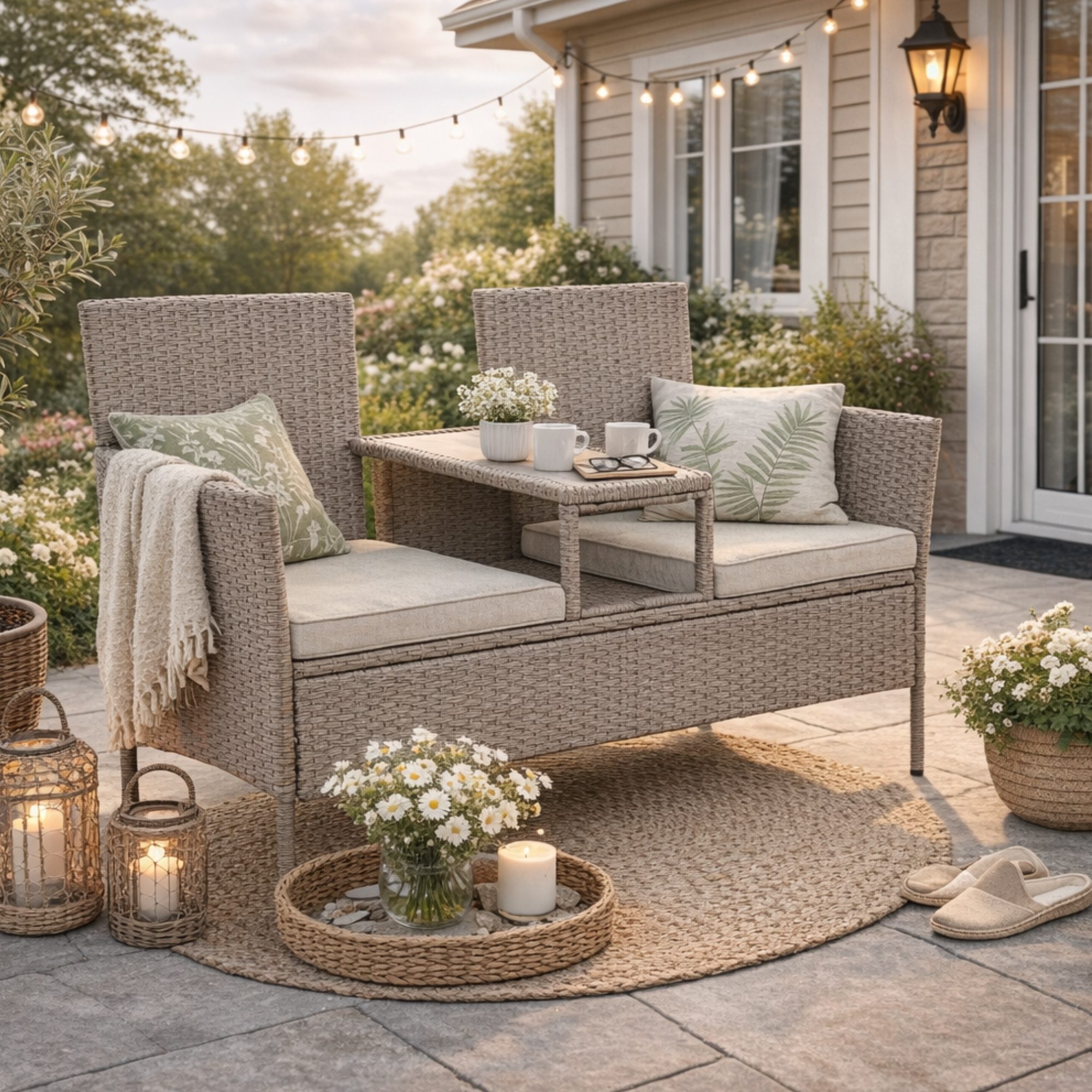- Povrchová úprava konstrukce: Opletená polyratanem