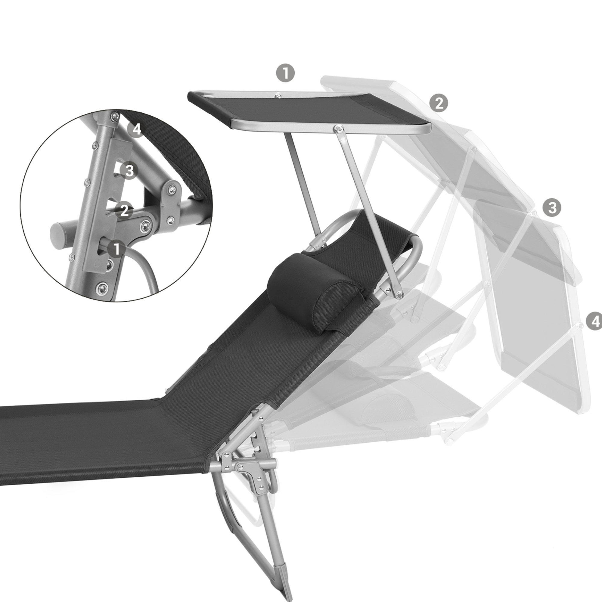 Toto lehátko má stabilní konstrukci, která je vyrobena z kovu. Jeho potah je ze syntetické tkaniny odolné vůči UV záření. Lehátko má polohovatelnou zádovou opěrku a nastavitelnou sluneční clonu, a tak jej snadno přizpůsobíte vašim aktuálním potřebám.