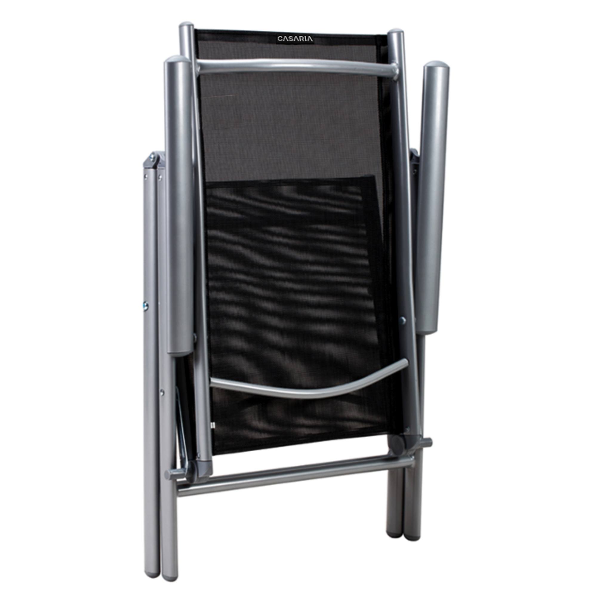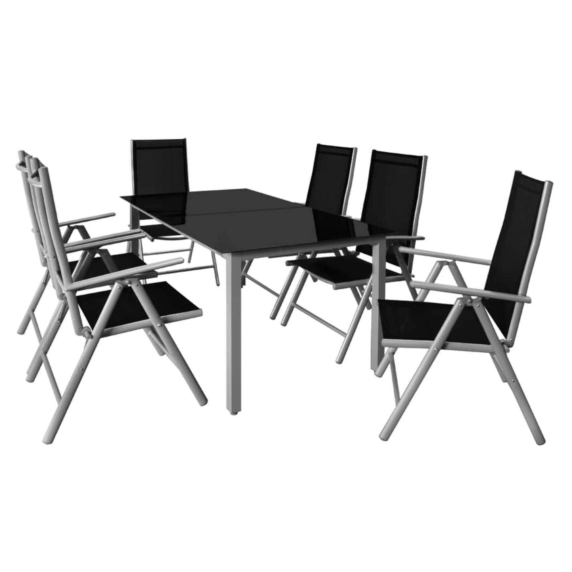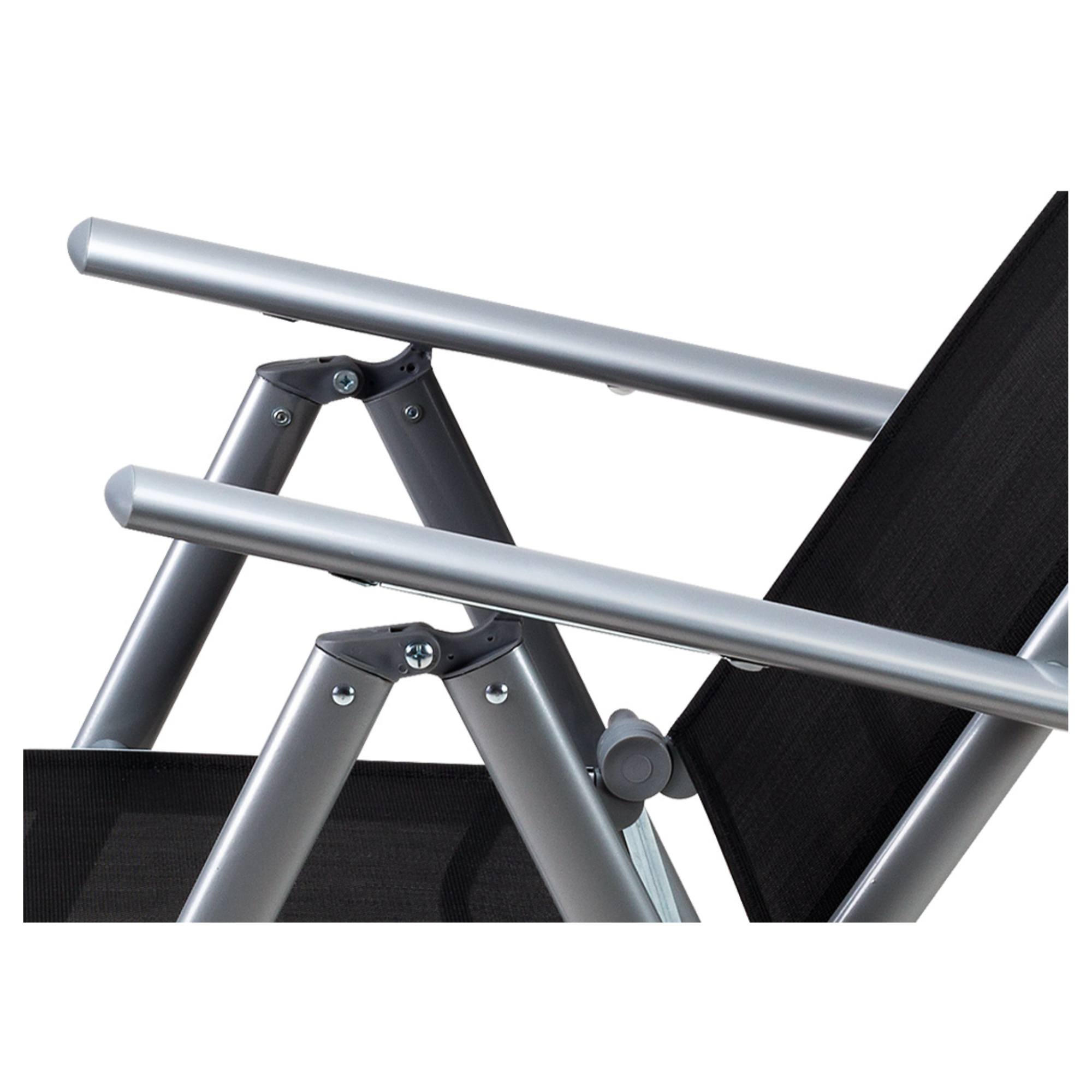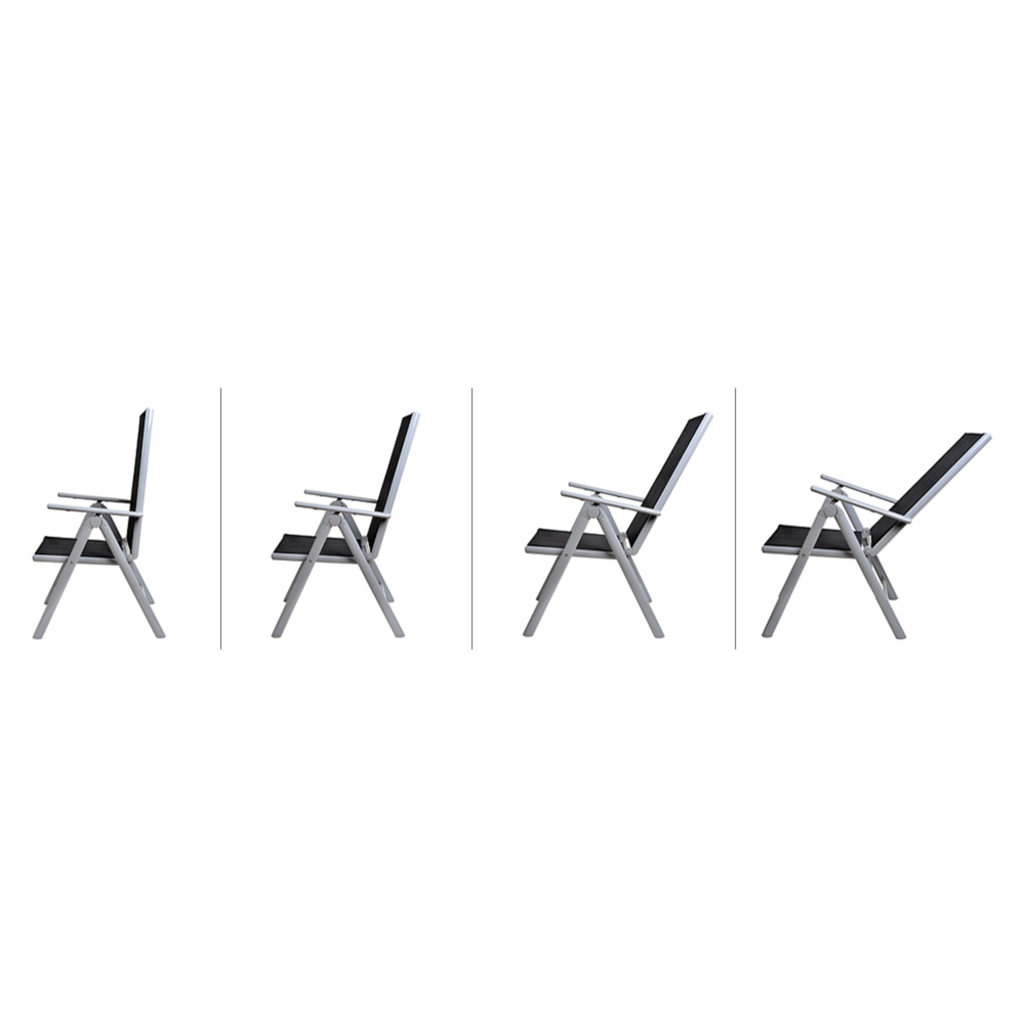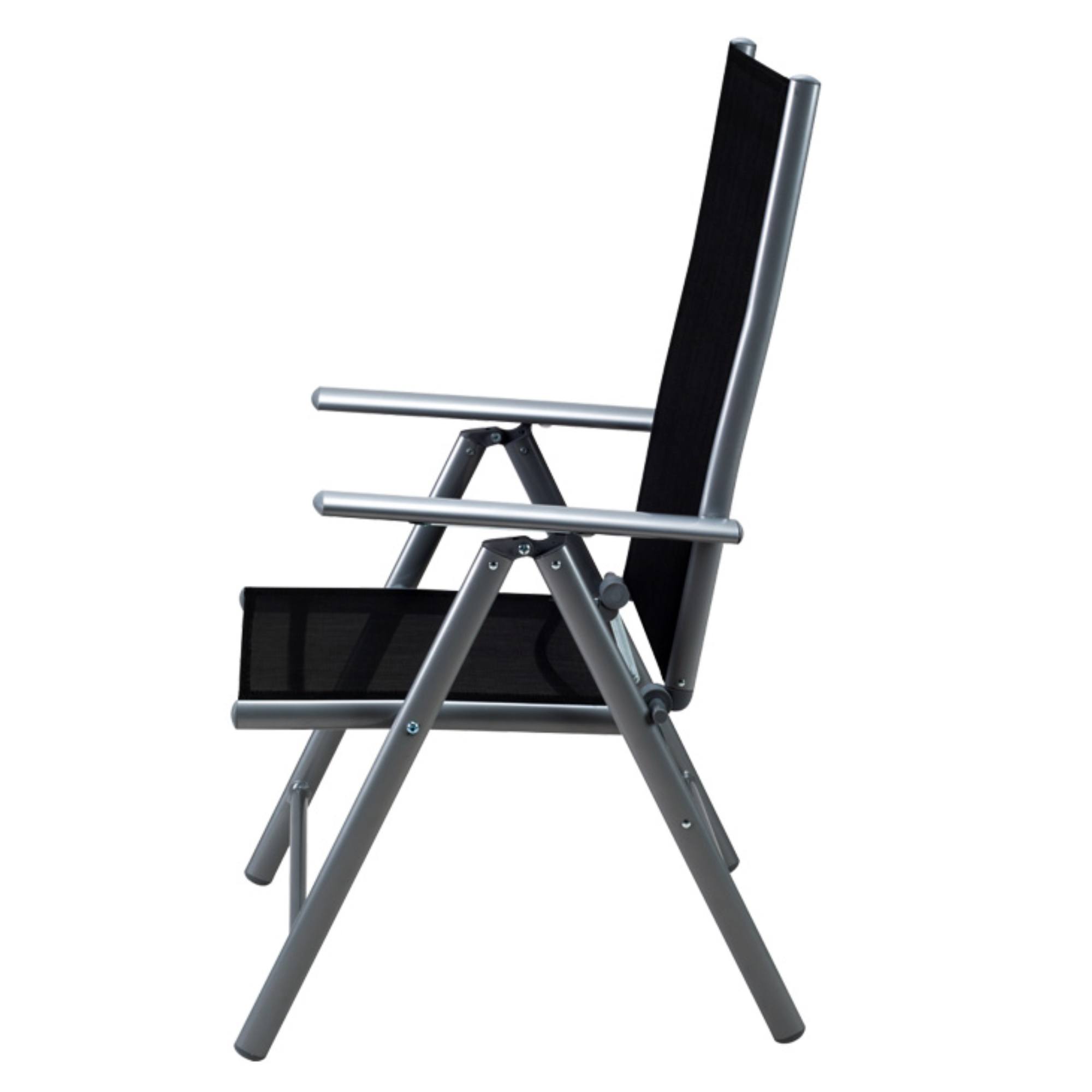 Stabilní konstrukce sestavy je vyrobena z hliníku s nerezovými šrouby, jehož povrch je práškově lakovaný. Tento materiál nepodléhá korozi, díky čemuž je sestava odolná vůči povětrnostním vlivům i nenáročná na údržbu. Horní deska stolu je z tvrzeného skla. Potahy židlí jsou vyrobeny z textilně-plastové tkaniny, která je pratelná. Opěradla židlí lze nastavit do 7 poloh, díky čemuž budete moct židle vždy přizpůsobit vašim aktuálním potřebám.