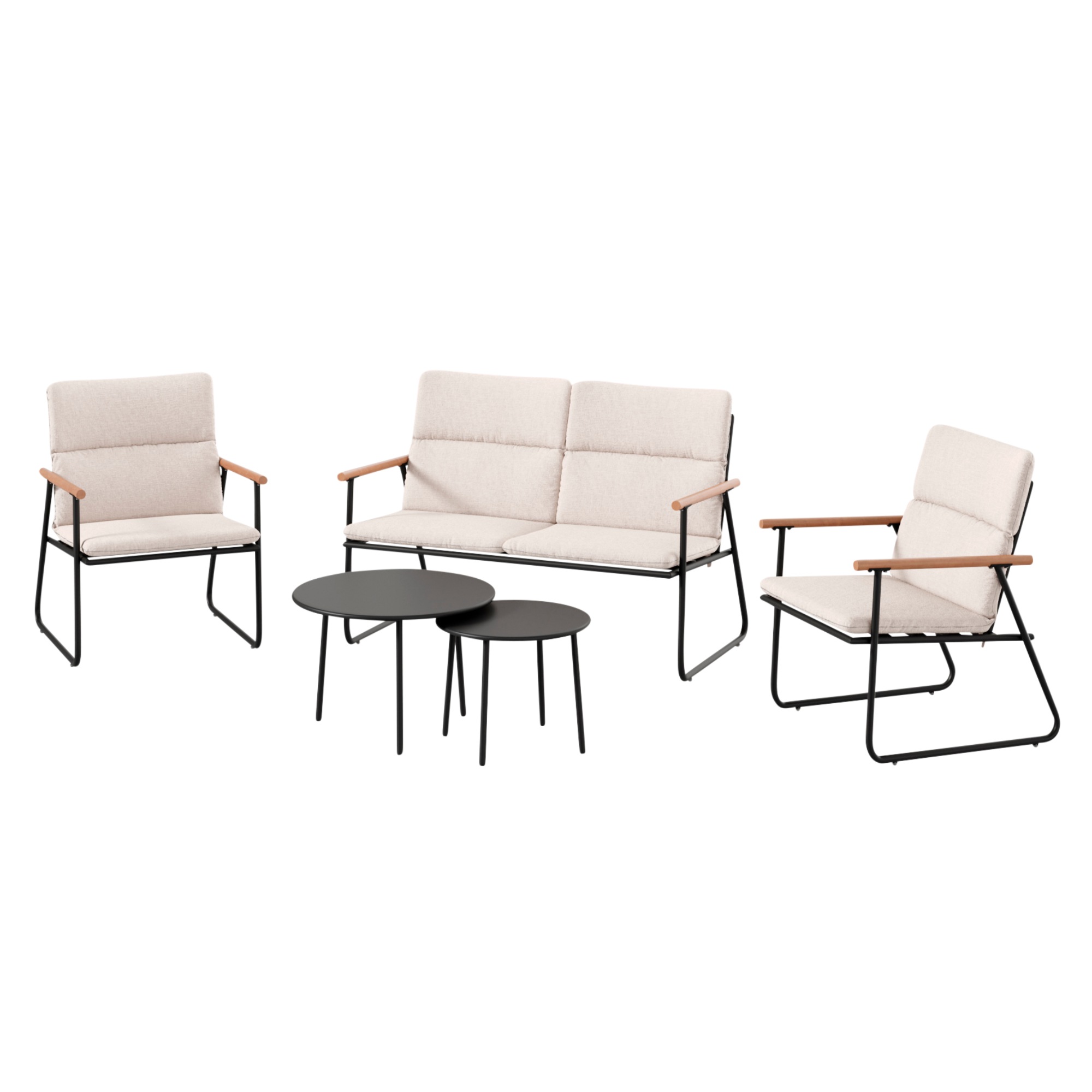 Zahradní sestava NIVELLES, která se skládá ze 2 křesel, dvoumístné pohovky a 2 stolků, je perfektní volbou pro každého milovníka zahradních posezení.