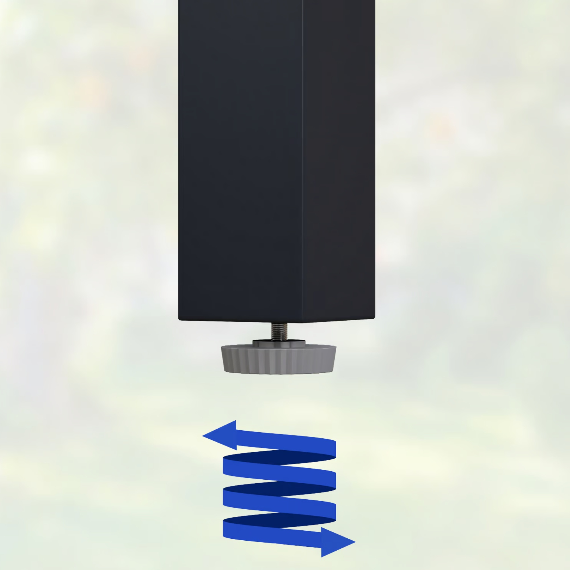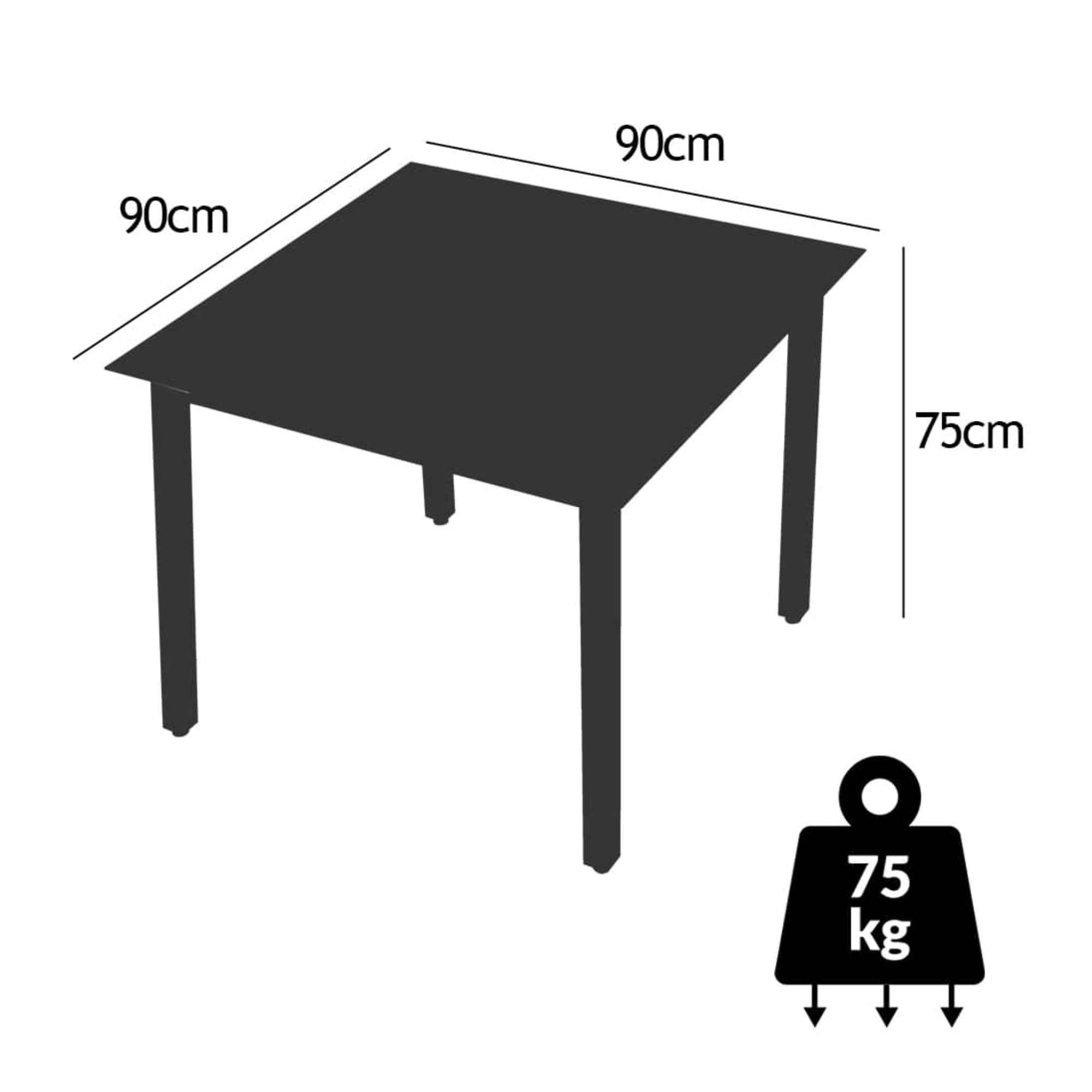 Horní deska stolu je z 5 mm silného tvrzeného skla. Jeho nohy jsou vybaveny integrovanými nivelačními šrouby, a tak si stůl zachová svou stabilitu i na nerovném povrchu.