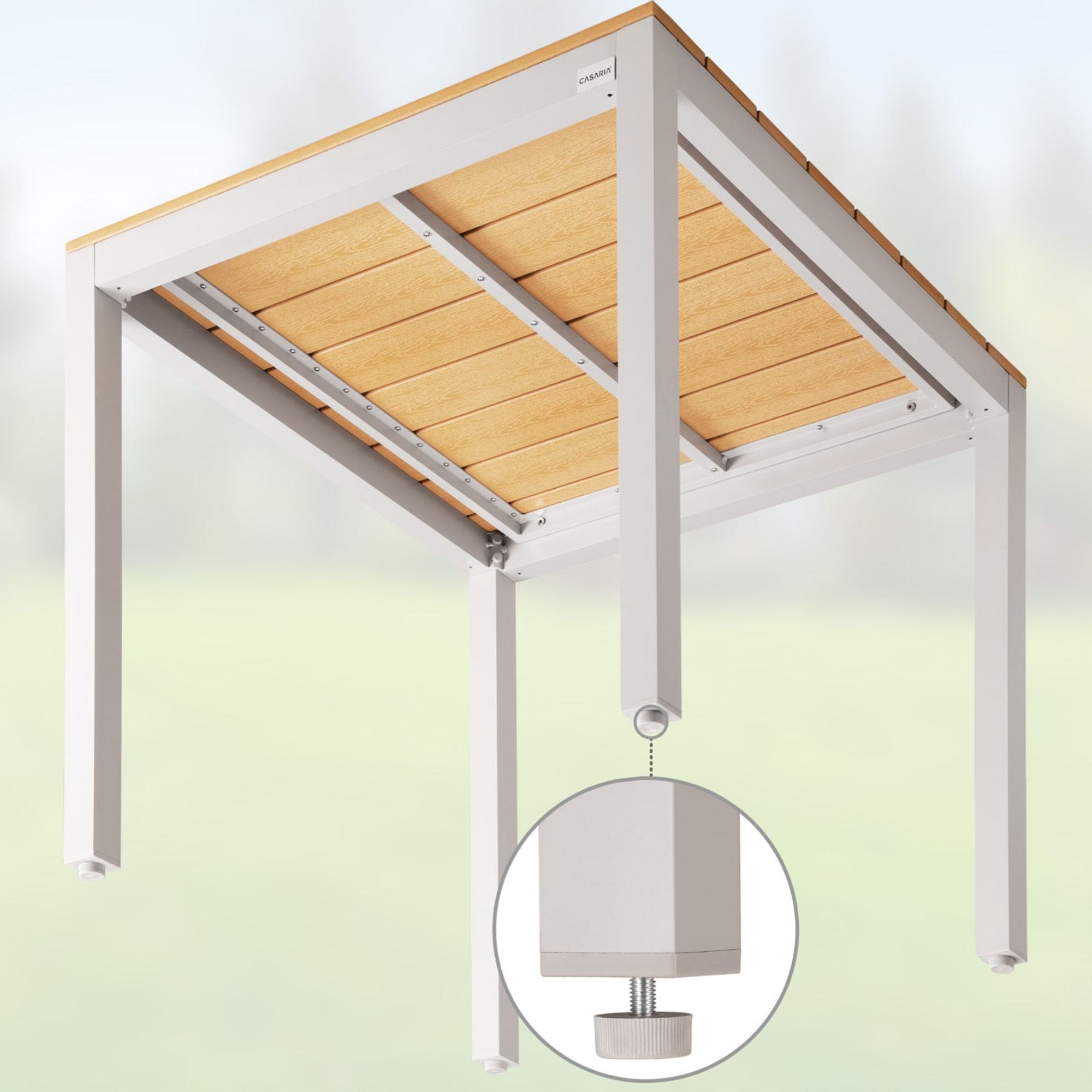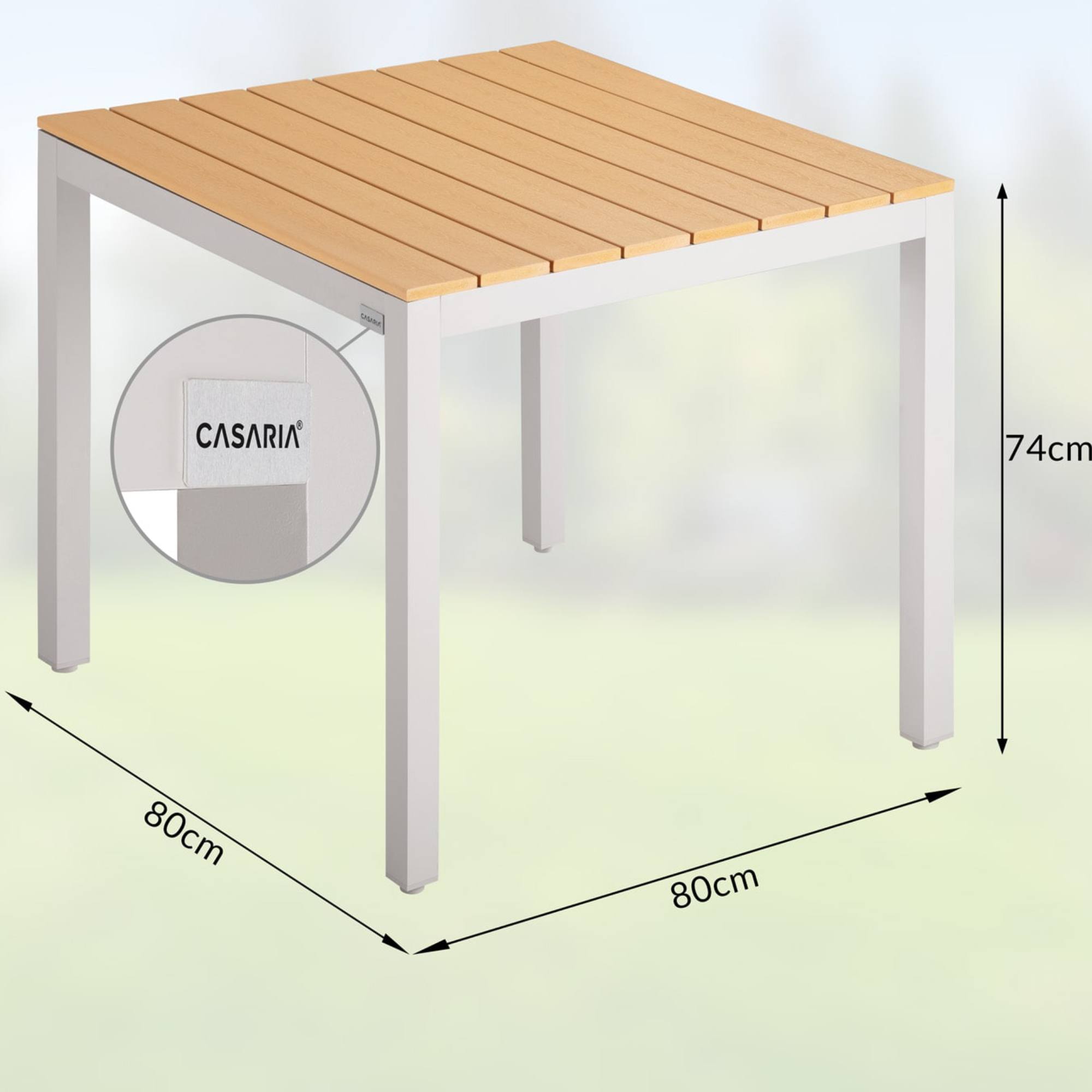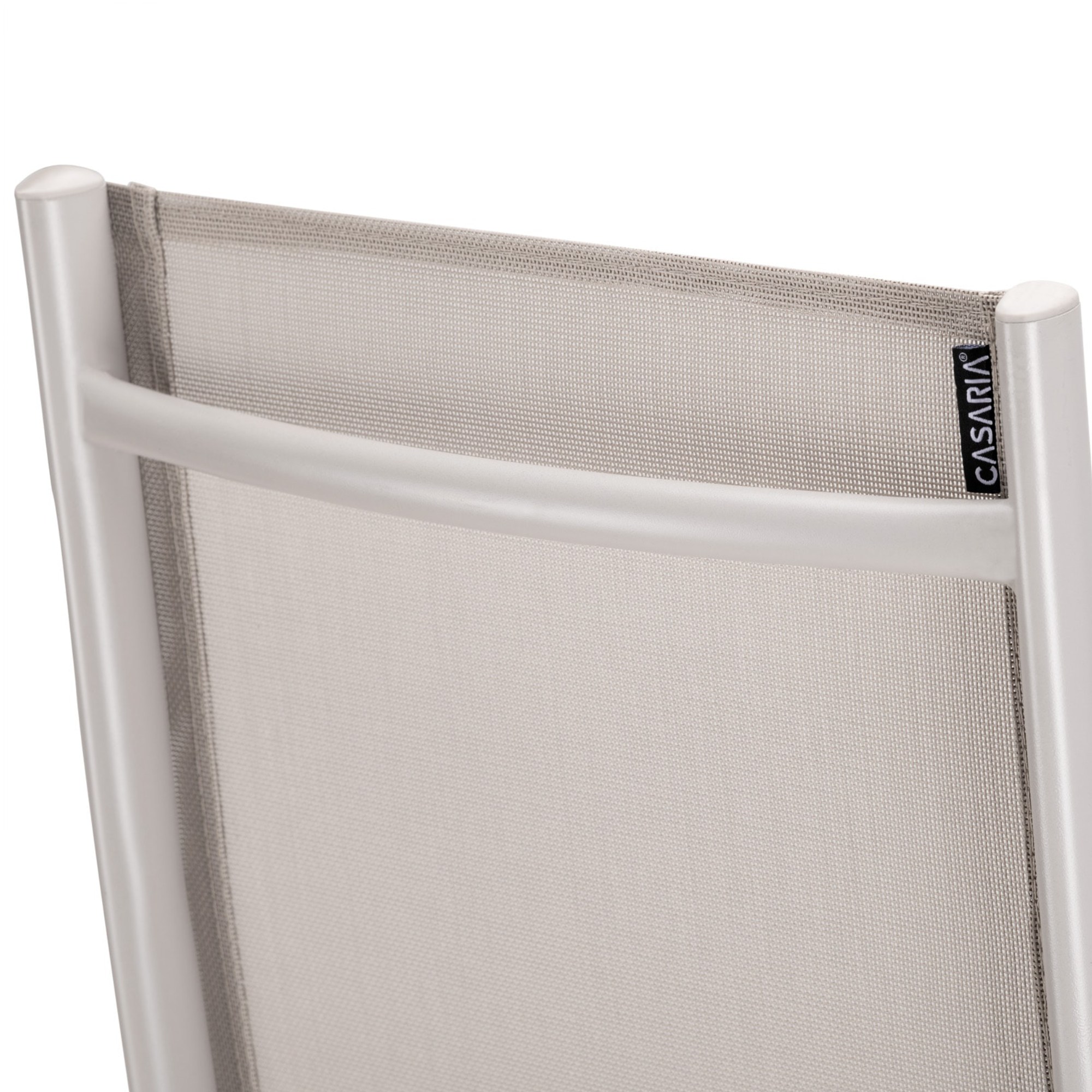 Stabilní konstrukce tohoto setu odolného vůči povětrnostním vlivům je vyrobena z hliníku, jehož povrch je práškově lakovaný. Nohy židlí i stolu jsou zakončeny nastavitelnými šrouby, **, díky kterým bude set stabilní i na nerovném povrchu. Nechybí ani chrániče podlahy. Horní deska stolu je vyrobena z materiálu WPC, který je tvořený kombinací dřevité hmoty a plastu. Opěradla židlí, jejichž potah je z pratelné tkaniny, lze nastavit do 7 různých poloh. Židle jsou skládací, **, a tak při skladovaní nezaberou zbytečně moc místa.