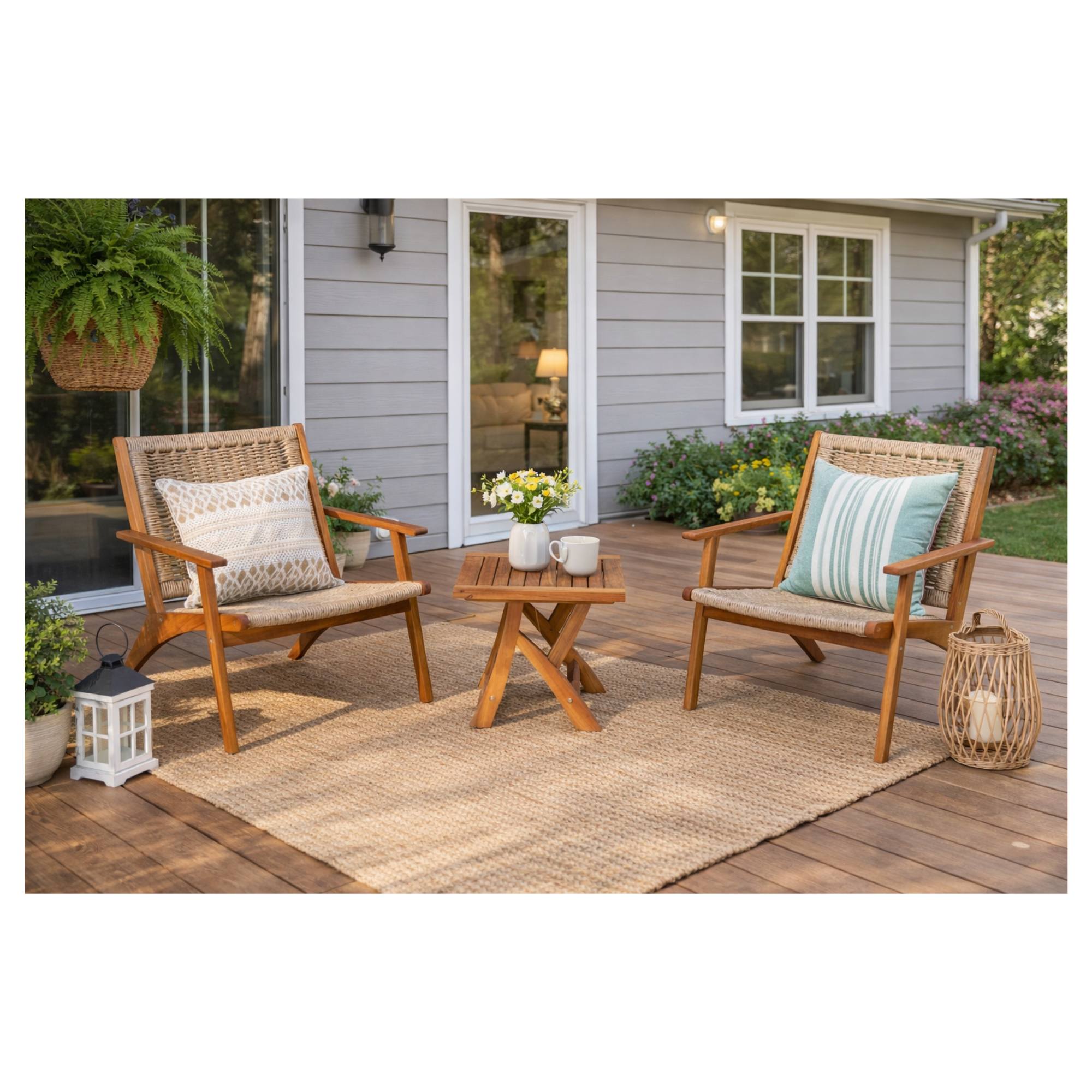 Zahradní set KYLIE, který se skládá ze 2 křesel a stolku, vnese do vaší zahrady nadčasovou eleganci.