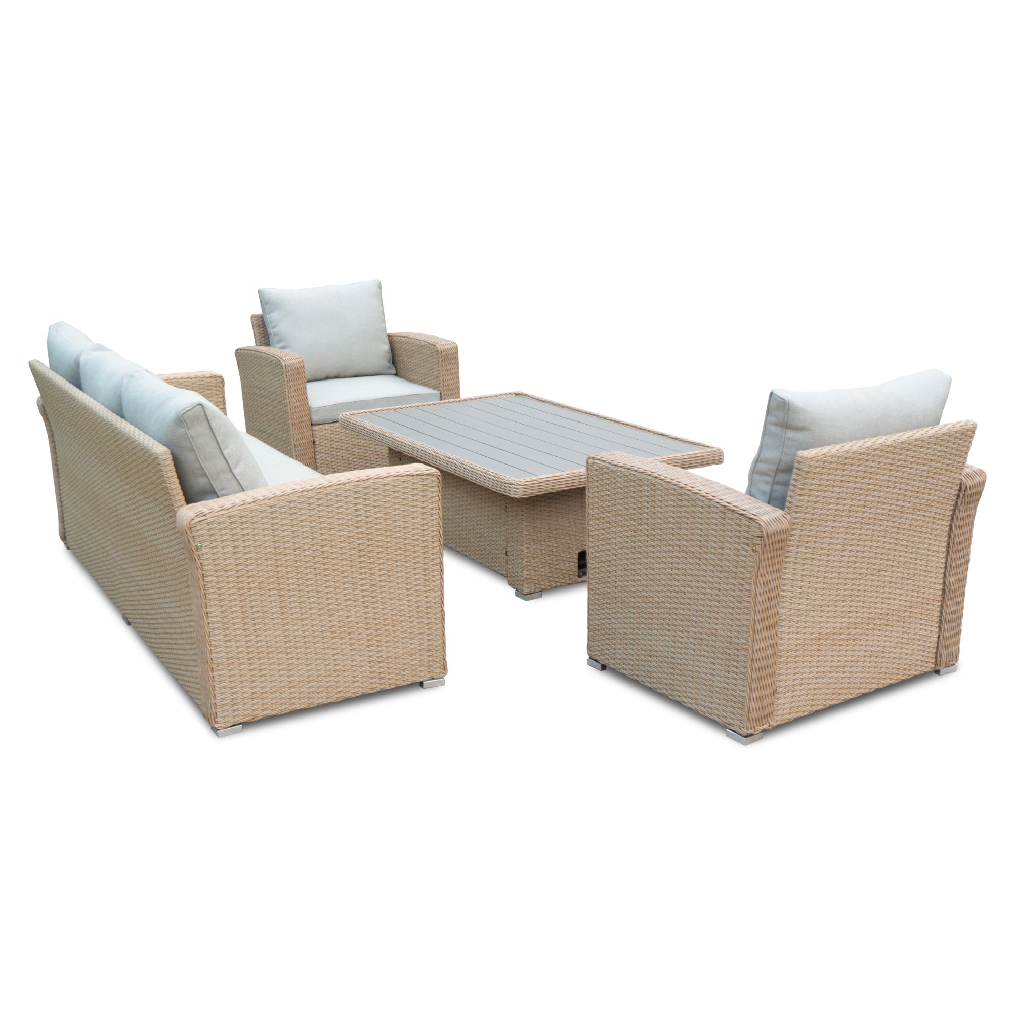 Zahradní set LETHA, který se skládá ze 2 křesel, trojmístné pohovky a stolku, je tou správnou volbou pro každého milovníka zahradních posezení.