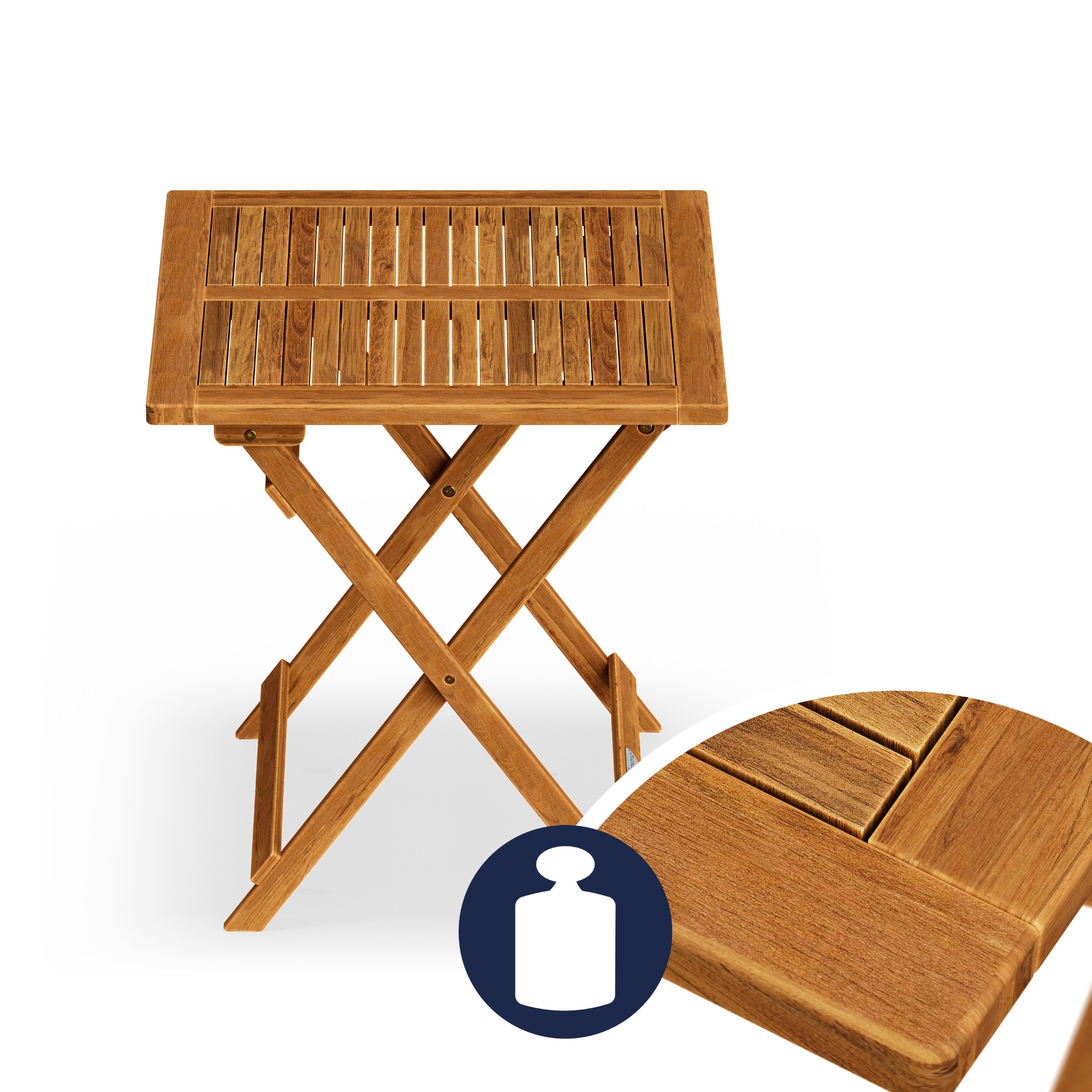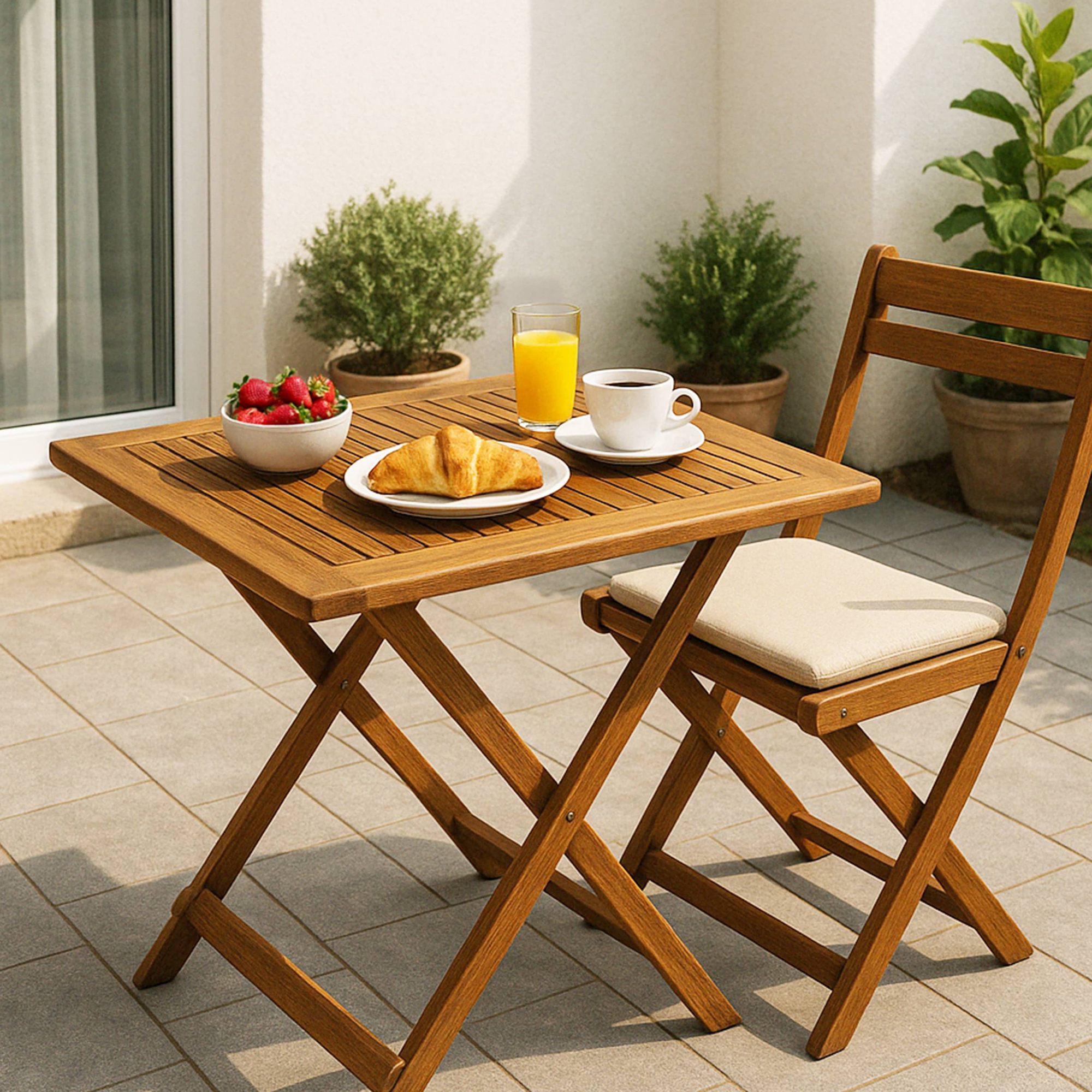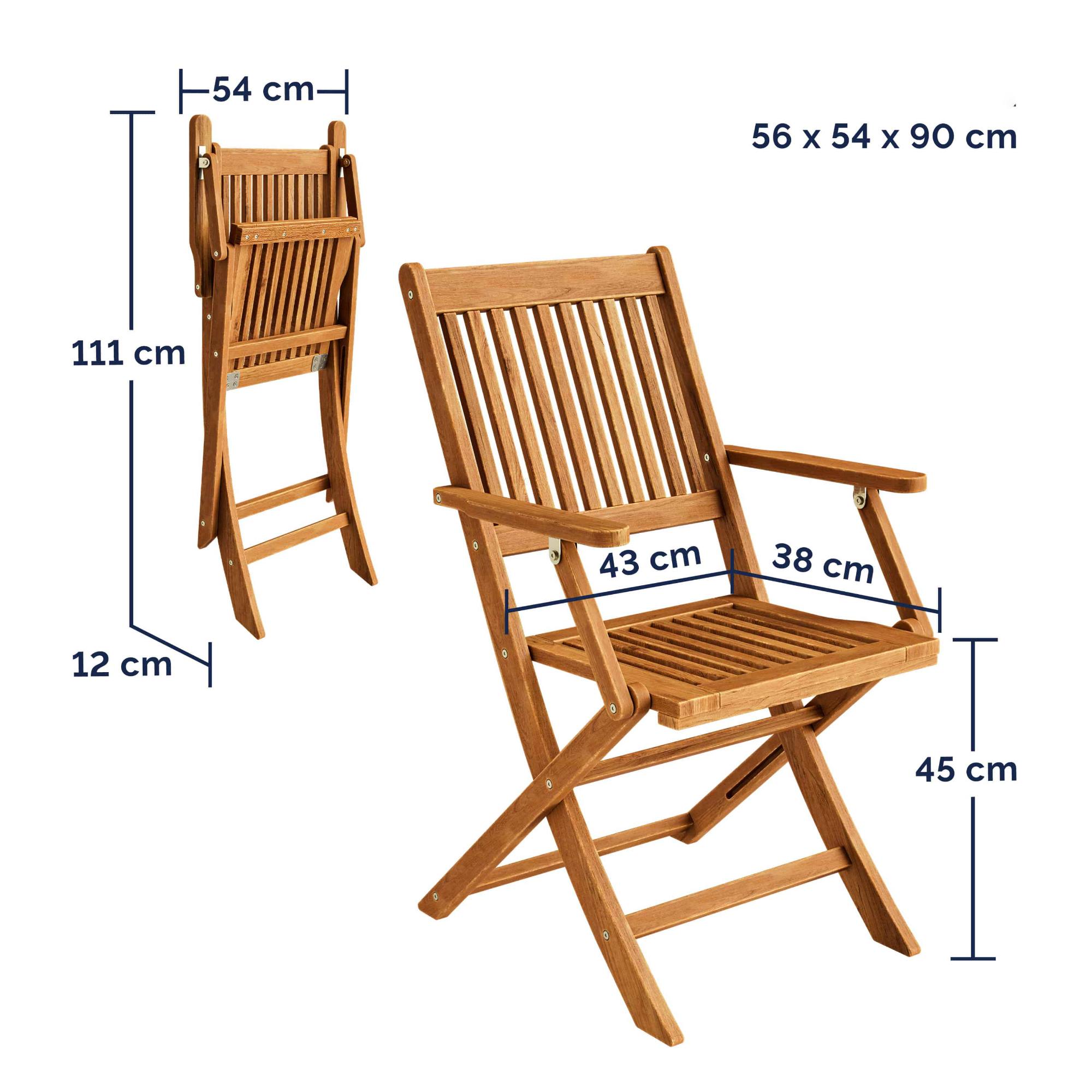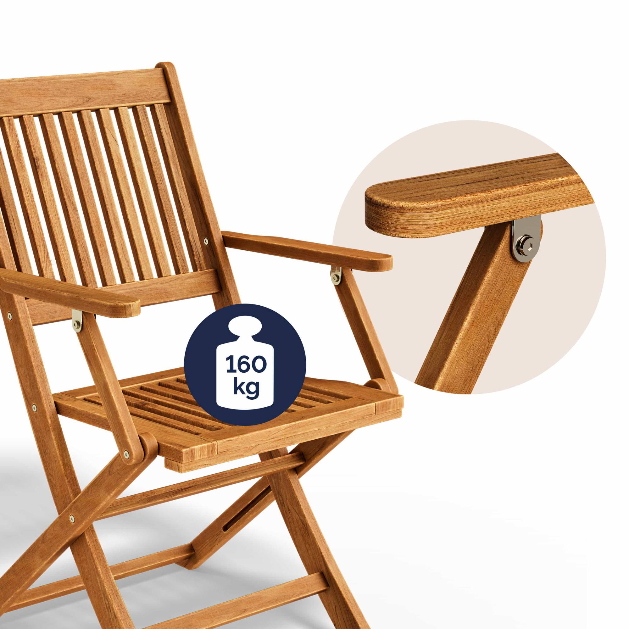 Konstrukce tohoto nábytku je vyrobena z masivního akáciového dřeva a její povrch je olejovaný. Židle, jejichž nosnost je 160 kg, i stůl jsou skládací, a tak při skladování nebudou zabírat zbytečně mnoho prostoru.
