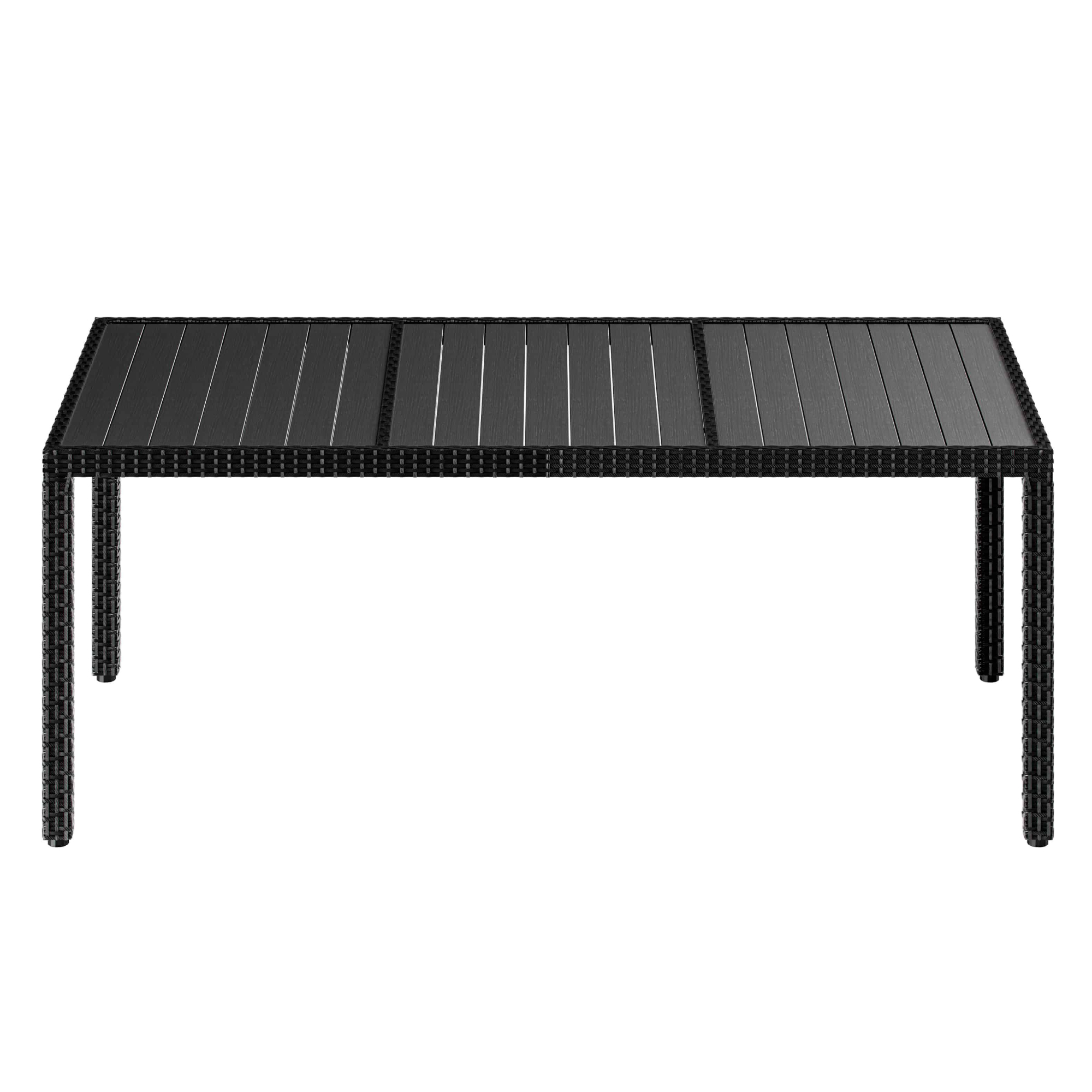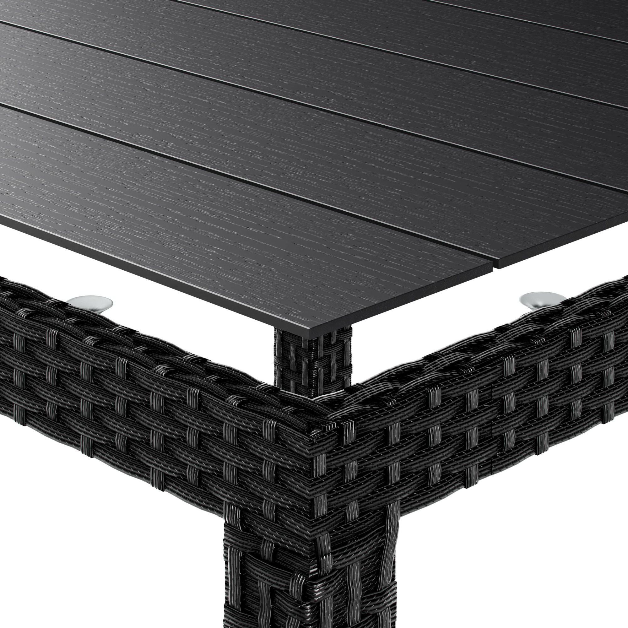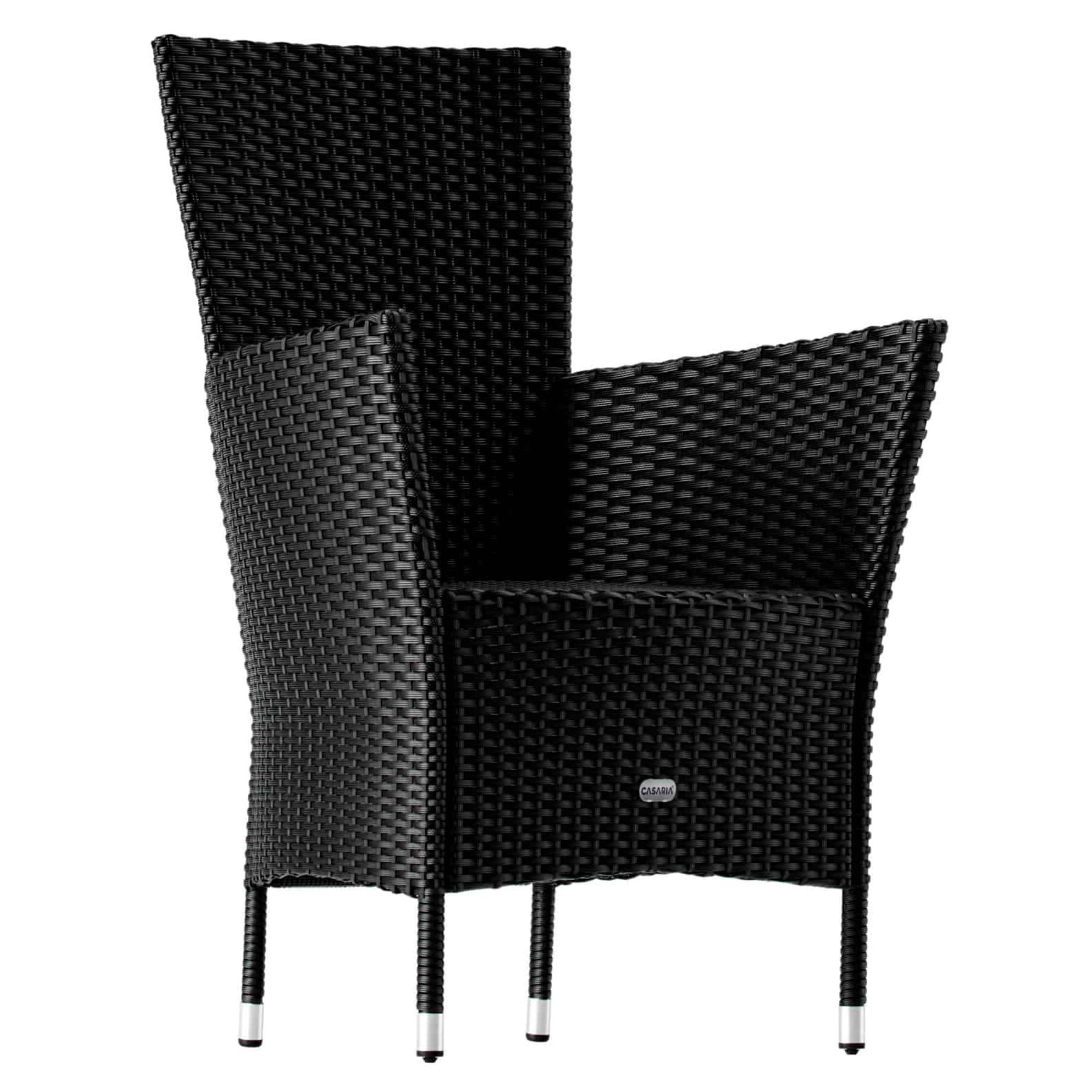 Pevná a stabilní konstrukce tohoto nábytku je vyrobena z práškově lakované ocele a opletena polyratanem. Nohy stolu i křesel jsou zakončeny nastavitelnými šrouby, díky kterým bude set stabilní i na nerovném povrchu. Horní deska stolu je z materiálu WPC, který je tvořený kombinací dřevité hmoty a plastu. O pohodlné sezení se starají nejen područky, ale i měkké pěnové sedáky o tloušťce 7 cm. Ty mají potahy se zipem, které lze v případě znečištění snadno sundat a vyprat v pračce na 30 °C.