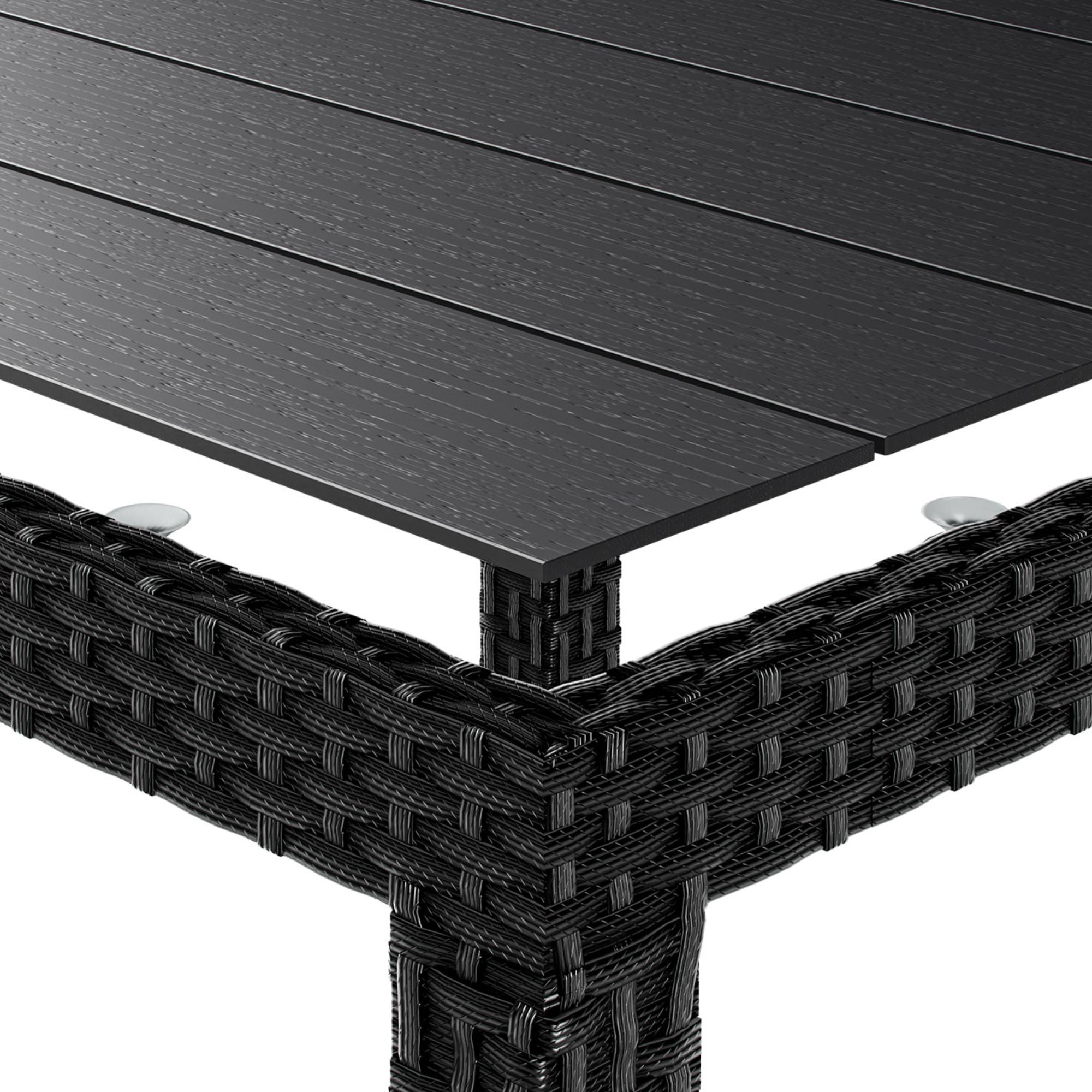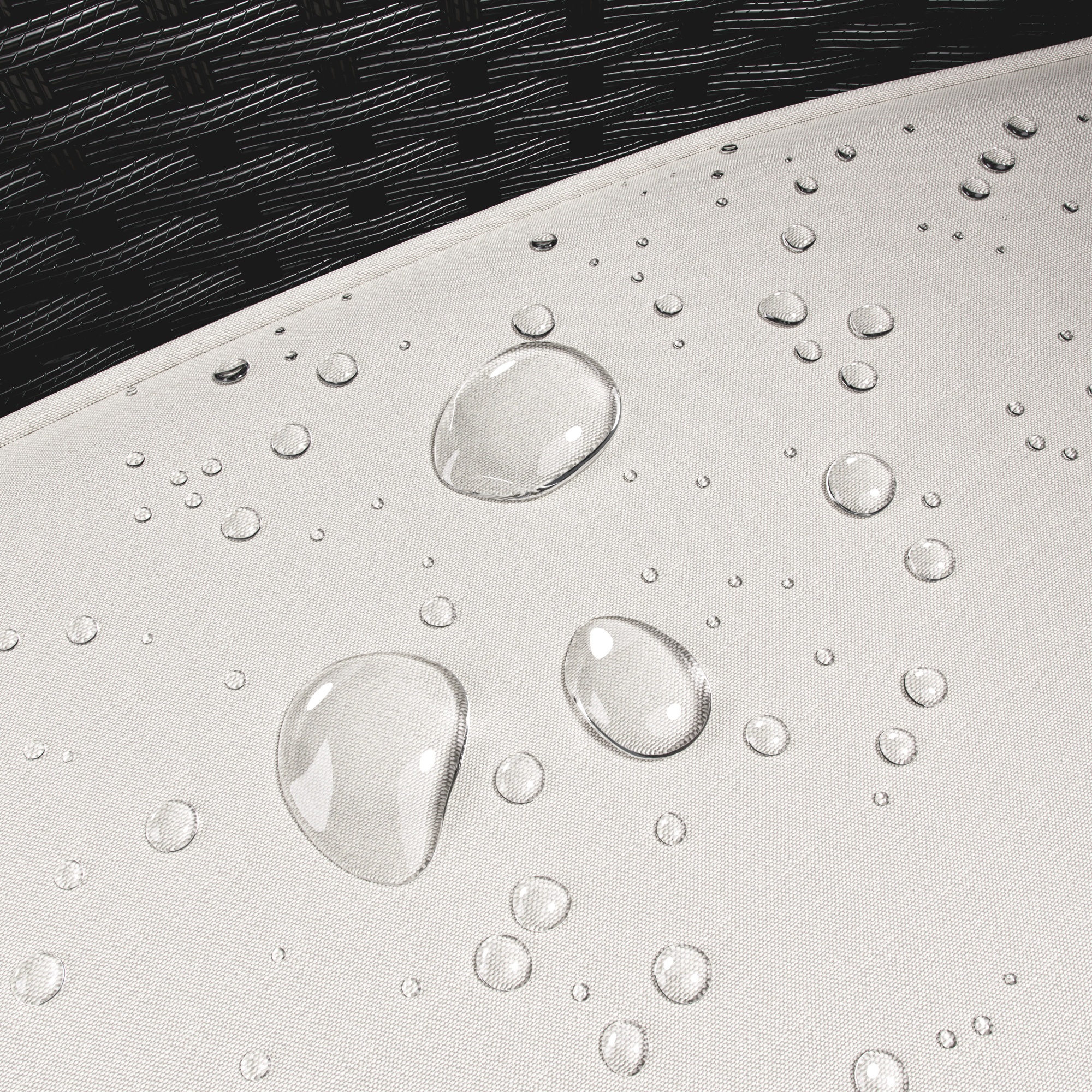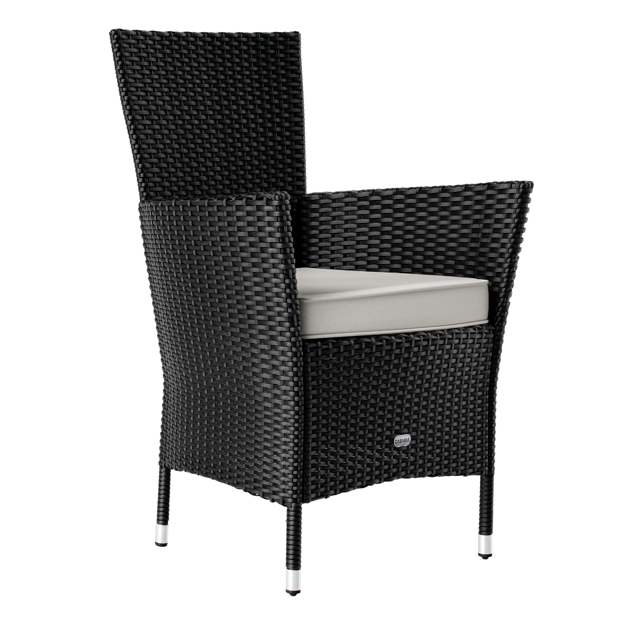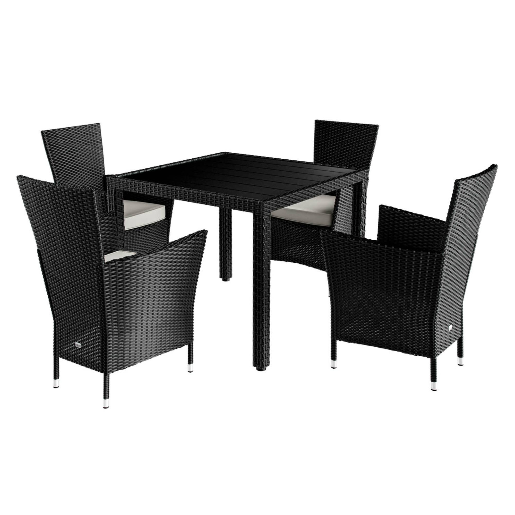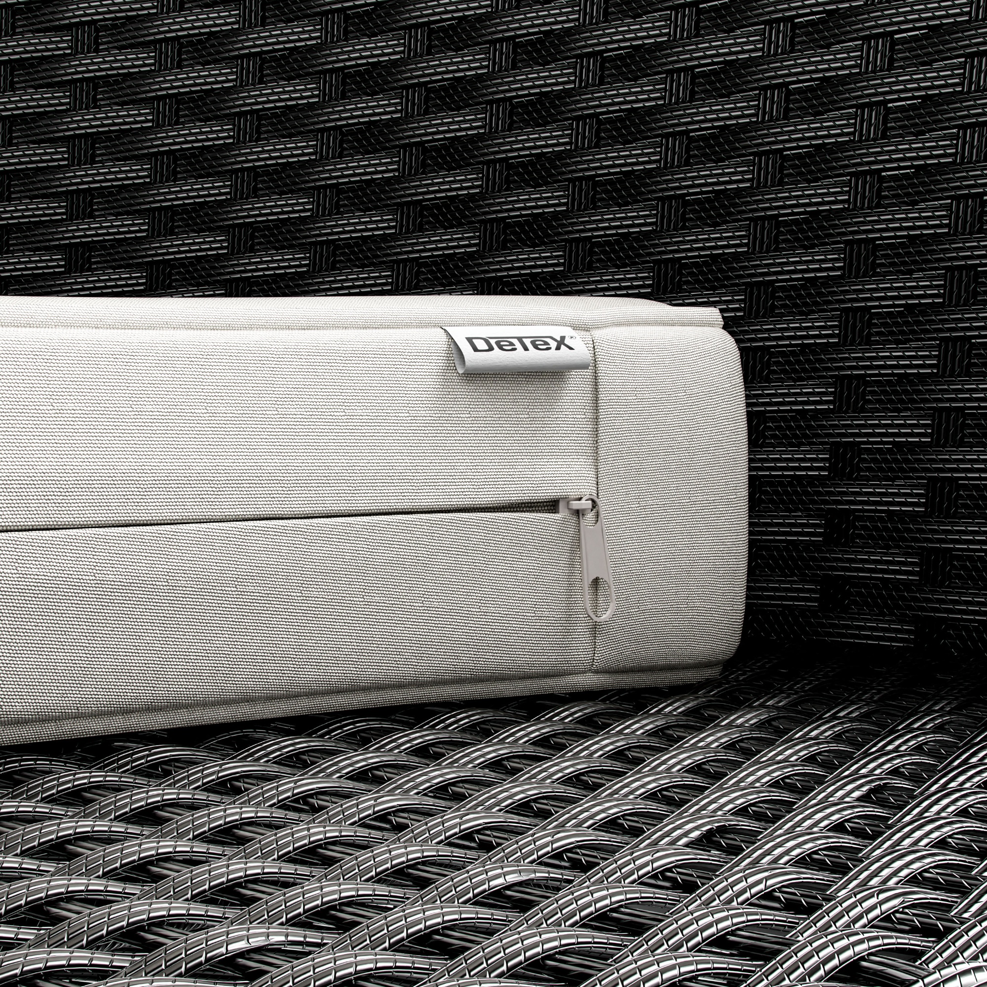 Pevná a stabilní konstrukce tohoto nábytku je vyrobena z ocele a opletena polyratanem. Nohy stolu i křesel jsou zakončeny nastavitelnými šrouby, díky kterým bude set stabilní i na nerovném povrchu. Horní deska stolu je ze snadno udržovatelného materiálu WPC, který je tvořený kombinací dřevité hmoty a plastu. O pohodlné sezení se starají nejen područky, ale i měkké pěnové sedáky o tloušťce 7 cm. Ty mají vodoodpudivé potahy se zipem, které lze v případě znečištění snadno sundat a vyprat v pračce na 30 °C.