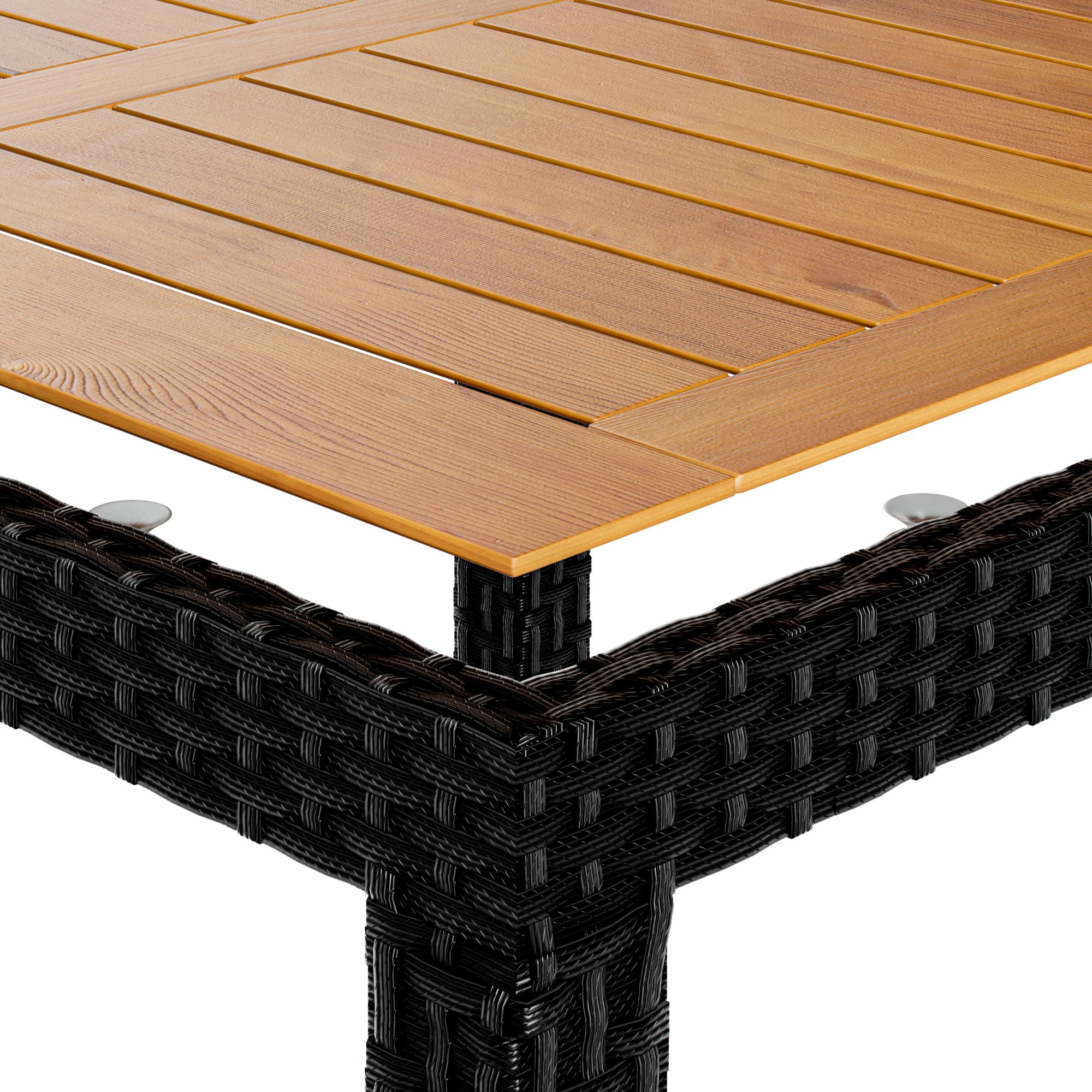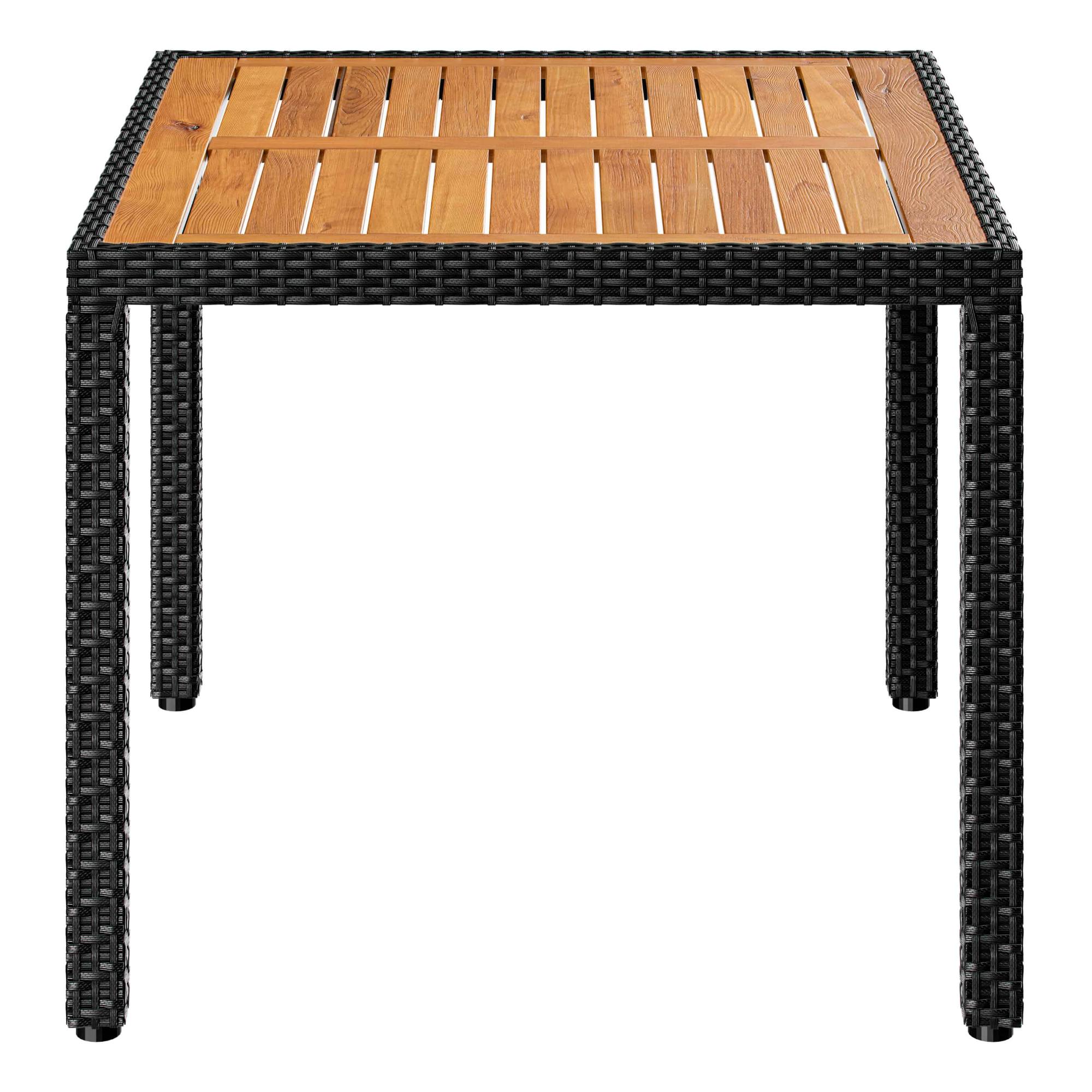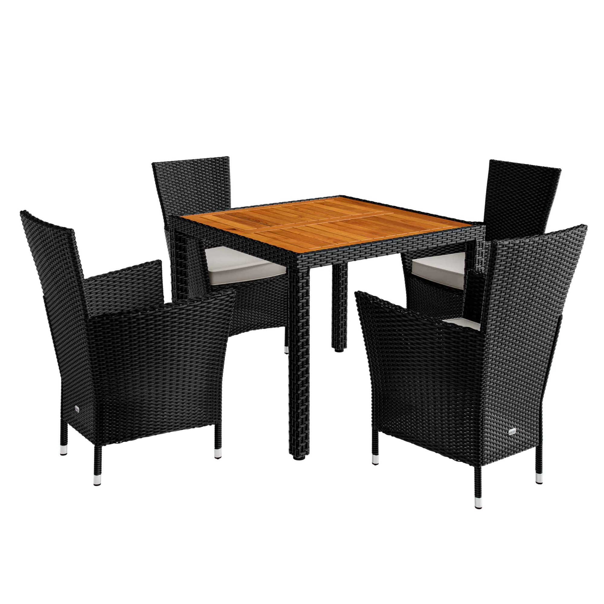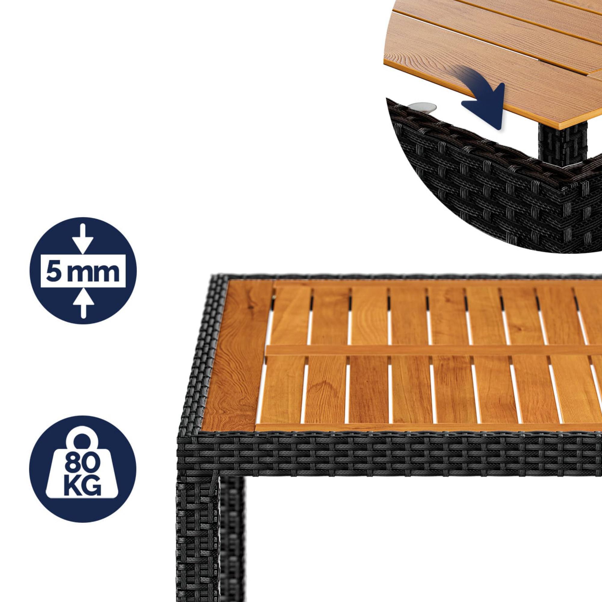Pevná a stabilní konstrukce tohoto nábytku je vyrobena z práškově lakované ocele a opletena polyratanem. Nohy stolu i křesel jsou zakončeny nastavitelnými šrouby, díky kterým bude set stabilní i na nerovném povrchu. Horní deska stolu je z masivního akáciového dřeva. O pohodlné sezení se starají nejen područky, ale i měkké pěnové sedáky o tloušťce 7 cm. Ty mají potahy se zipem, které lze v případě znečištění snadno sundat a vyprat v pračce na 30 °C.