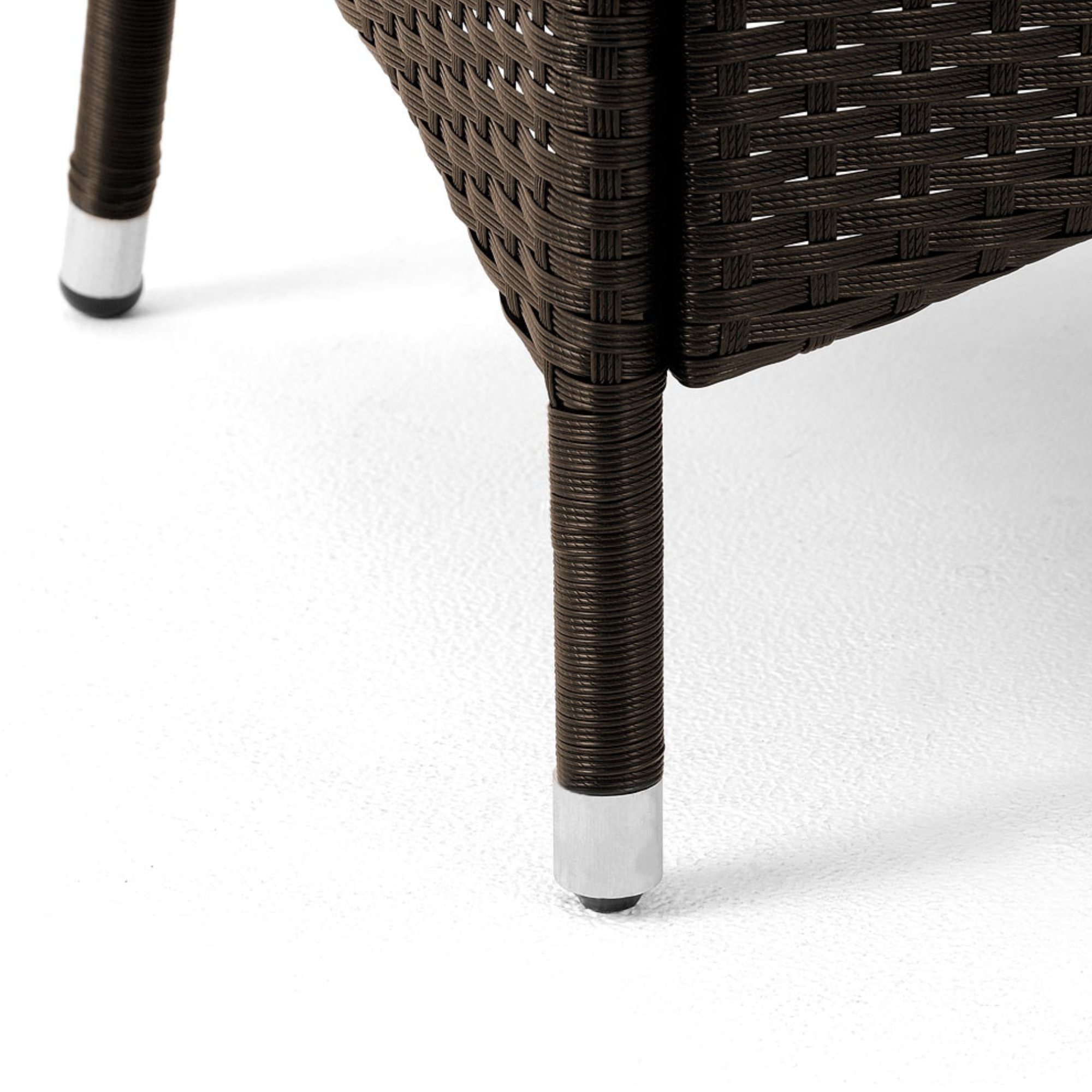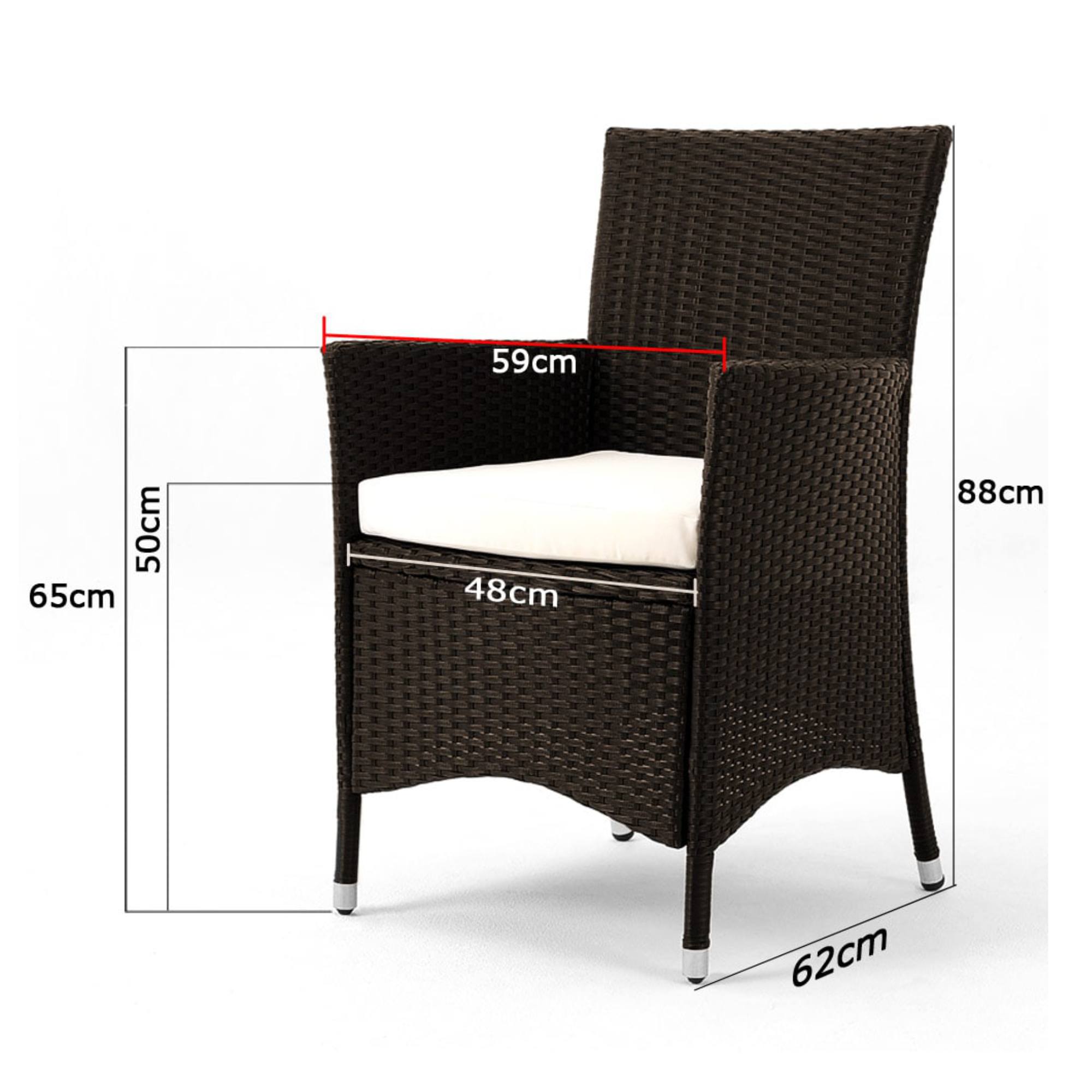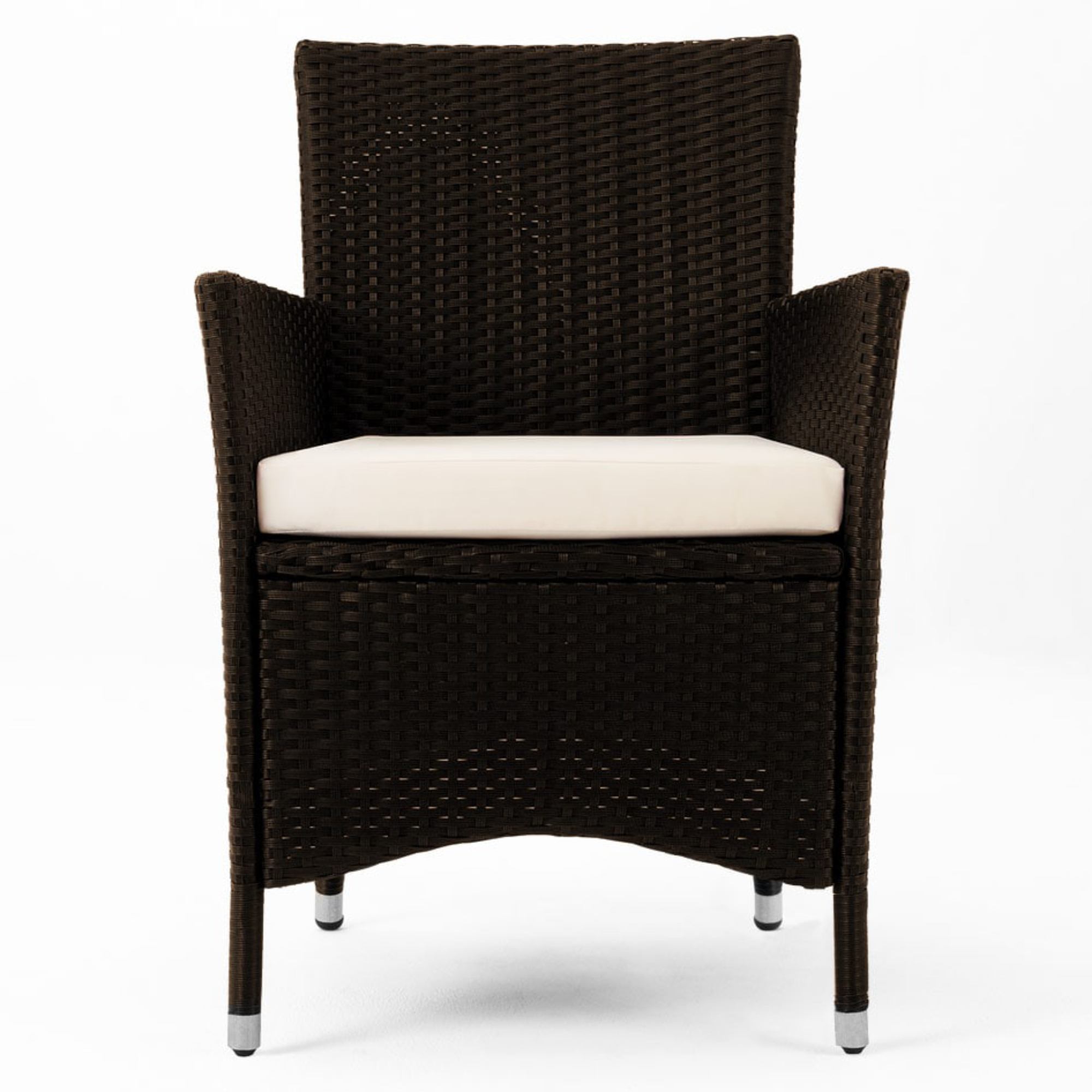 Pevná a stabilní konstrukce tohoto nábytku je vyrobena z práškově lakované ocele a opletena polyratanem. Horní deska stolu je z tvrzeného matného skla. Aby se na křeslech sedělo pohodlně, jsou vybavena nejen područkami, ale i 7 cm silnými pěnovými sedáky s vodoodpudivým potahem, které lze v případě potřeby prát v pračce na 30 °C. Křesla jsou stohovatelná, a tak při skladování nezaberou zbytečně moc místa.