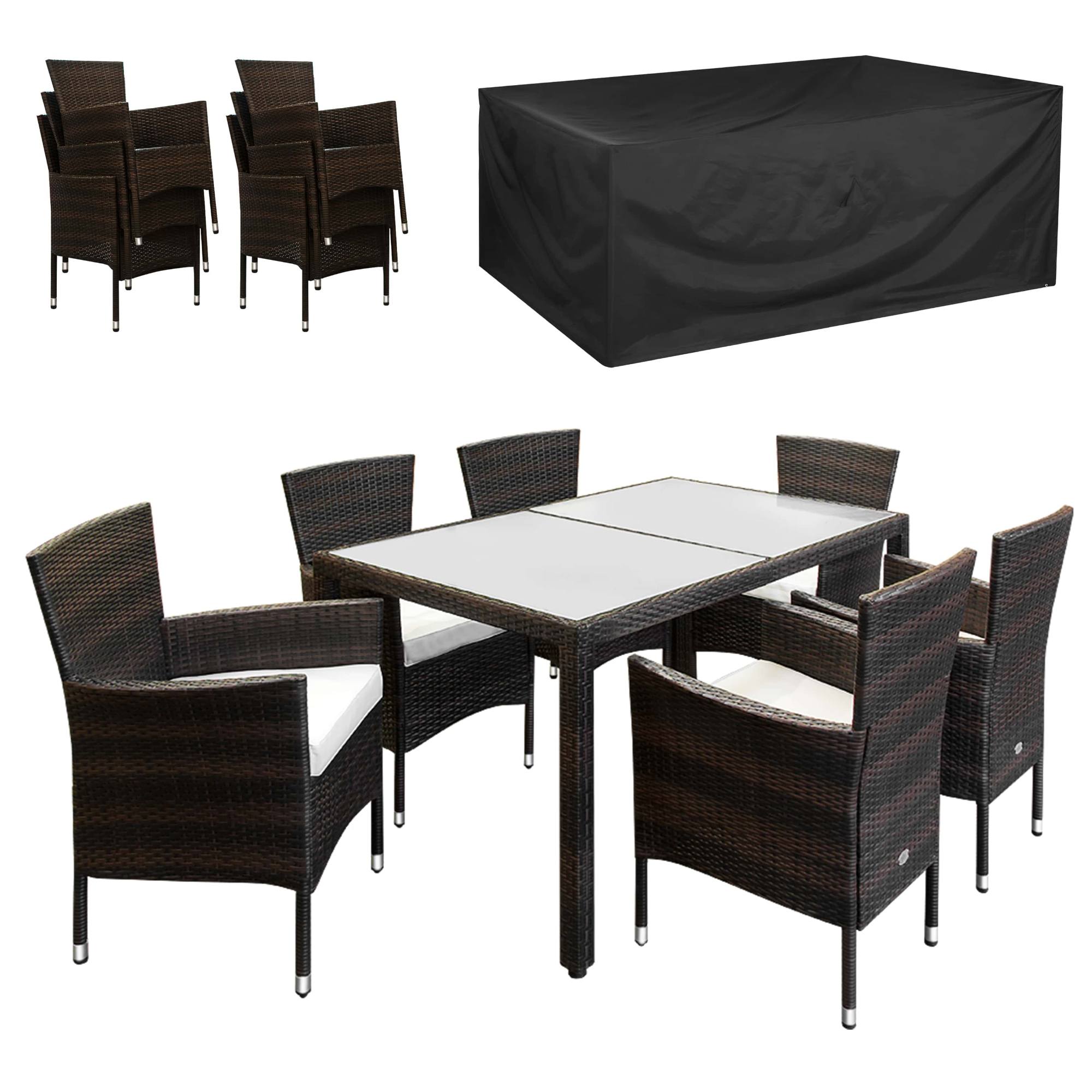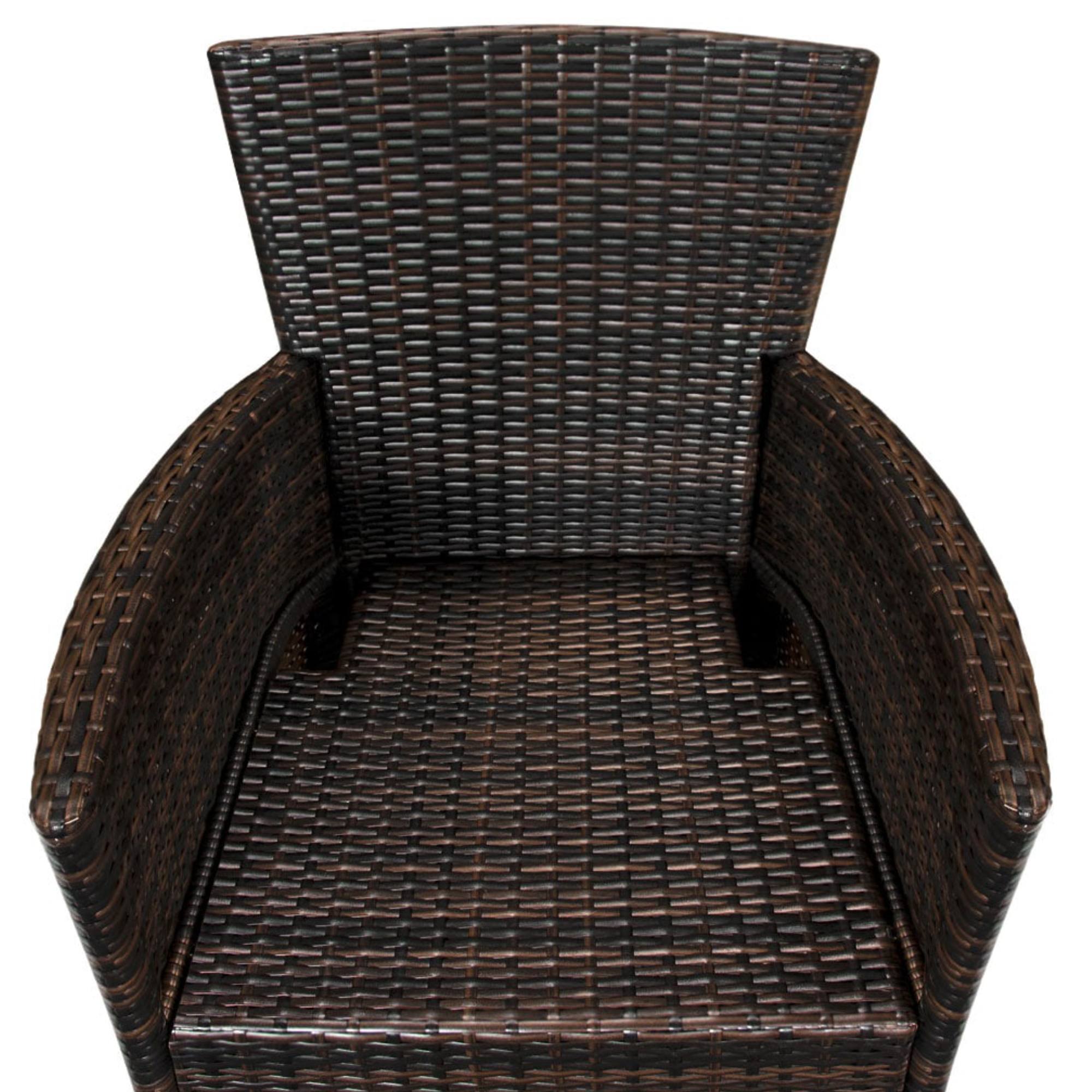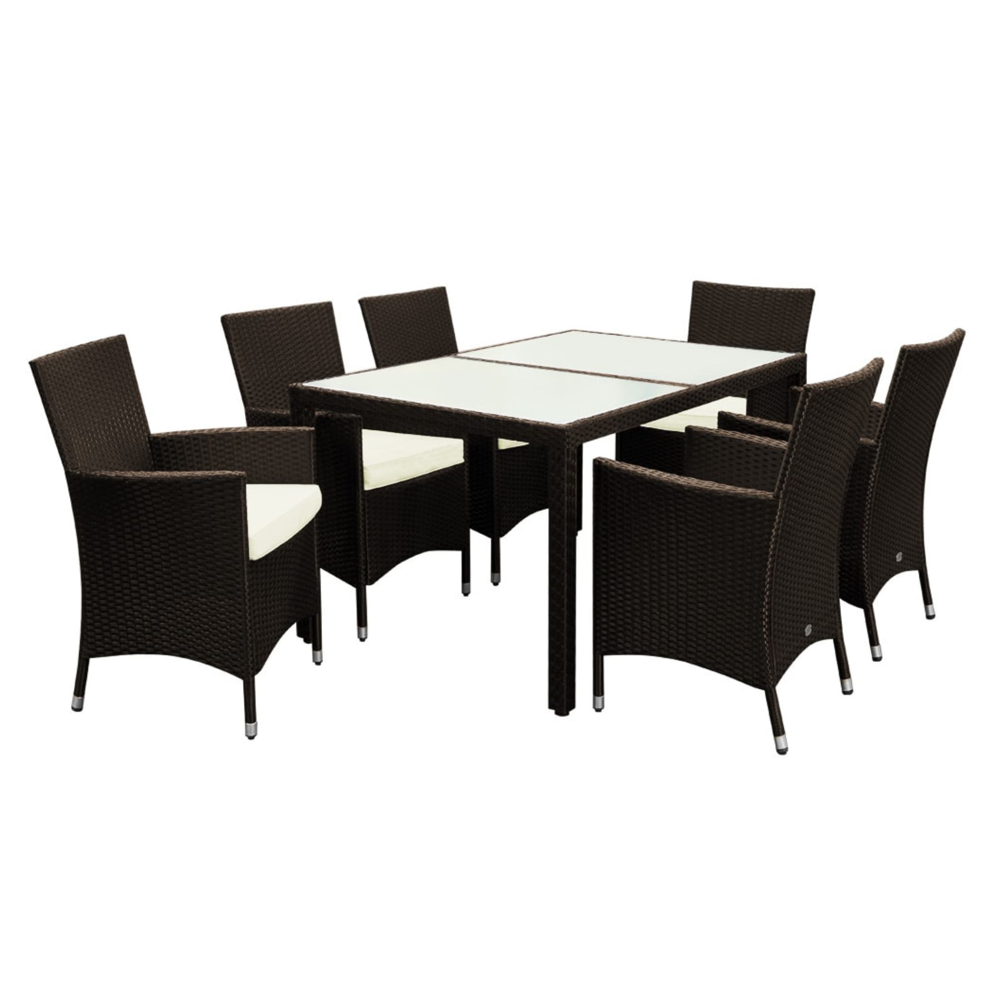 Pevná a stabilní konstrukce tohoto nábytku je vyrobena z práškově lakované ocele a opletena polyratanem. Horní deska stolu je z tvrzeného matného skla. Aby se na křeslech sedělo pohodlně, jsou vybavena nejen područkami, ale i 7 cm silnými pěnovými sedáky s vodoodpudivým potahem, které lze v případě potřeby prát v pračce na 30 °C. Křesla jsou stohovatelná, a tak při skladování nezaberou zbytečně moc místa.