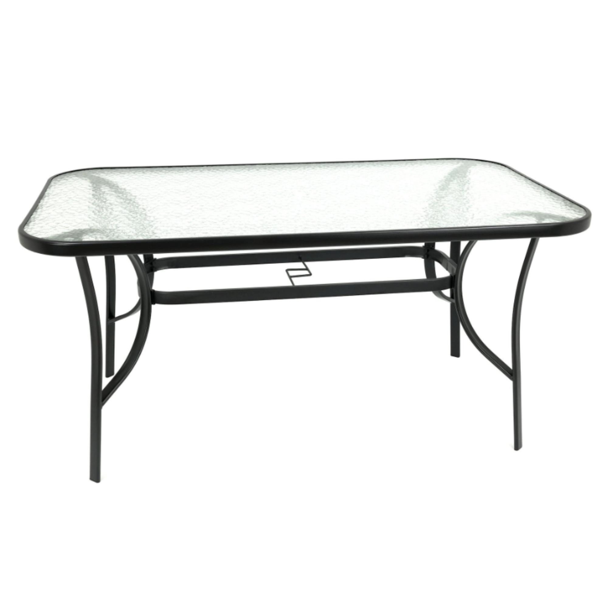 Odolný a stabilní stůl FIELDMANN vyrobený z ocelovo-hliníkových profilů. Horní deska je z průhledného tvrzeného skla, které má ve středu stolu otvor o velikosti 5 cm, kam lze umístit slunečník. Použité materiály nevyžadují žádnou zvláštní údržbu. Stůl je ideální pro venkovní použití.