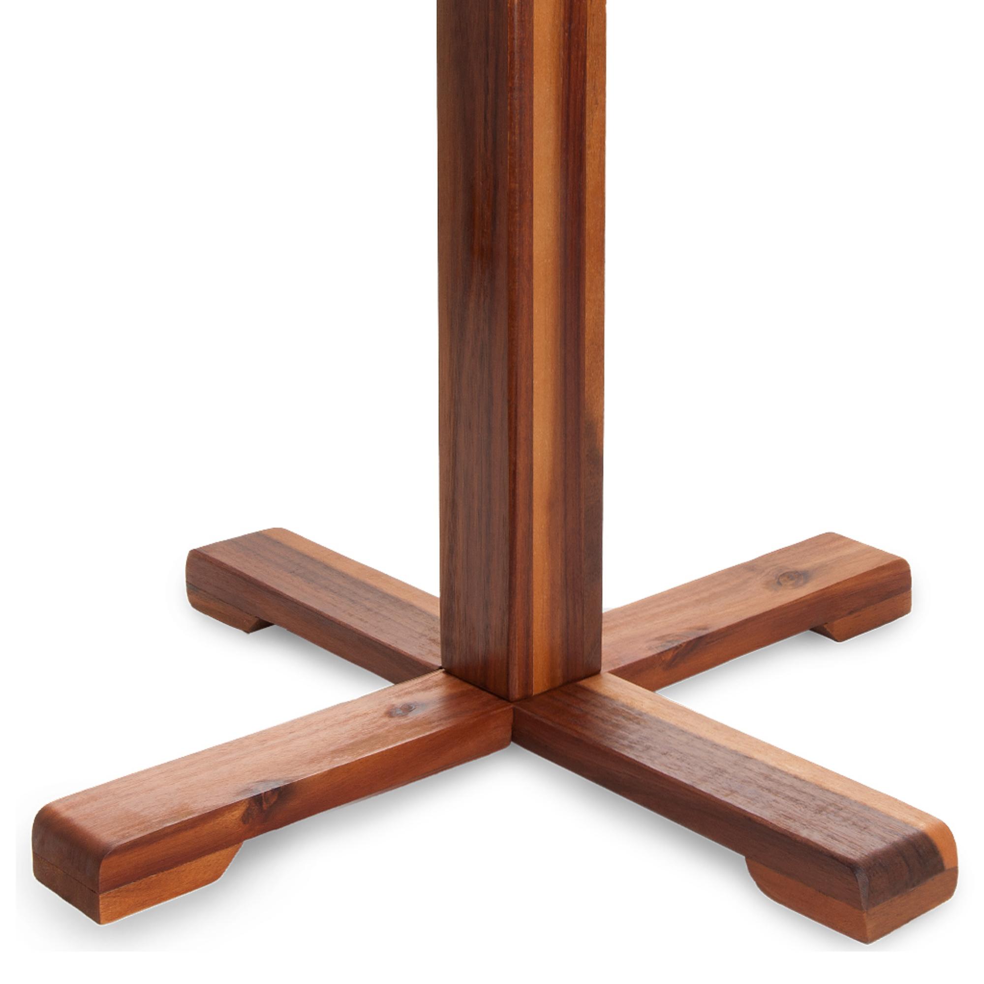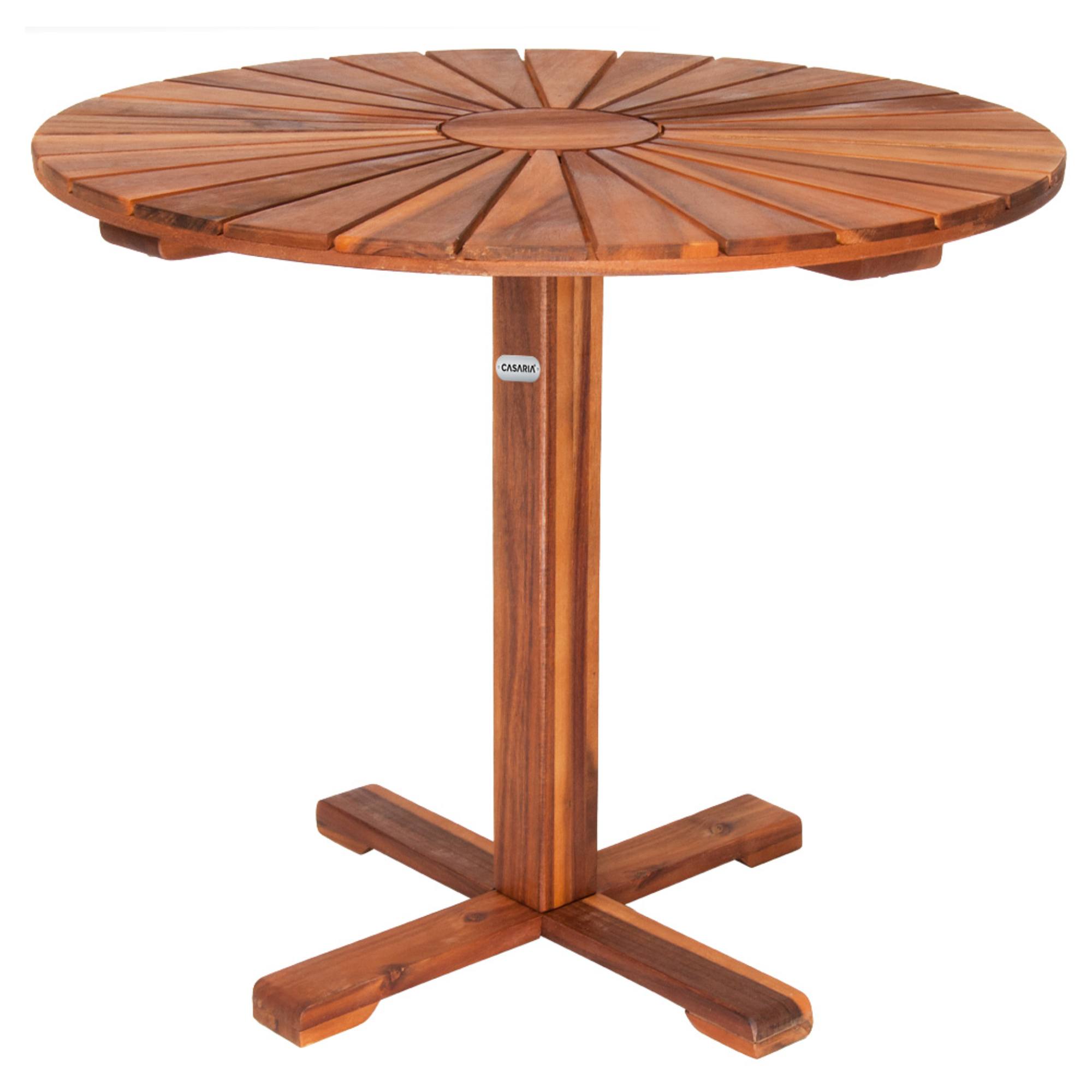 Konstrukce stolu je vyrobena z masivního akáciového dřeva a její povrch je olejovaný. Horní desku ozvláštňuje vzor slunce, který přispívá k originalitě stolu.