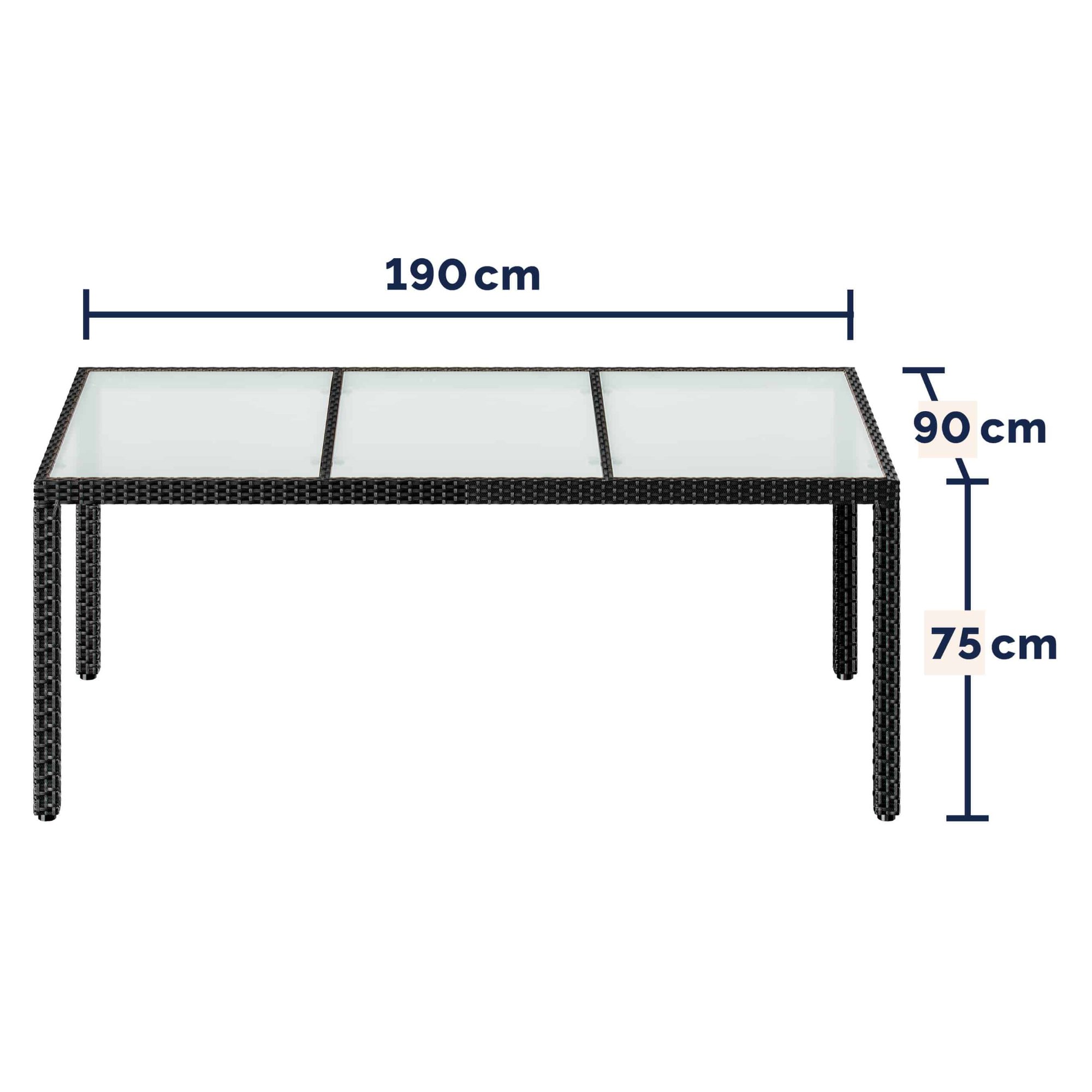 Zahradní stůl VERONA 4 - černá/mléčné sklo, šířka 190 cm