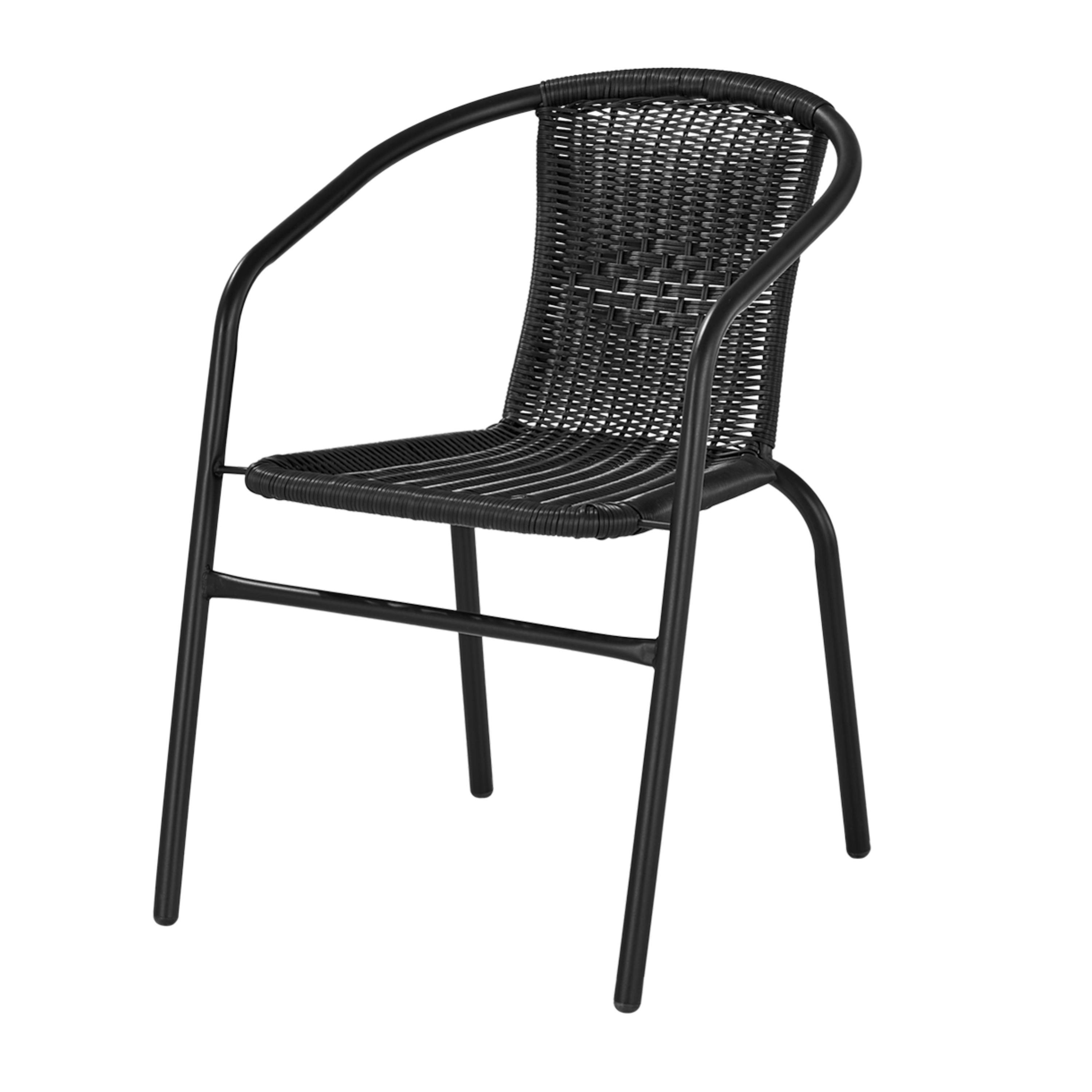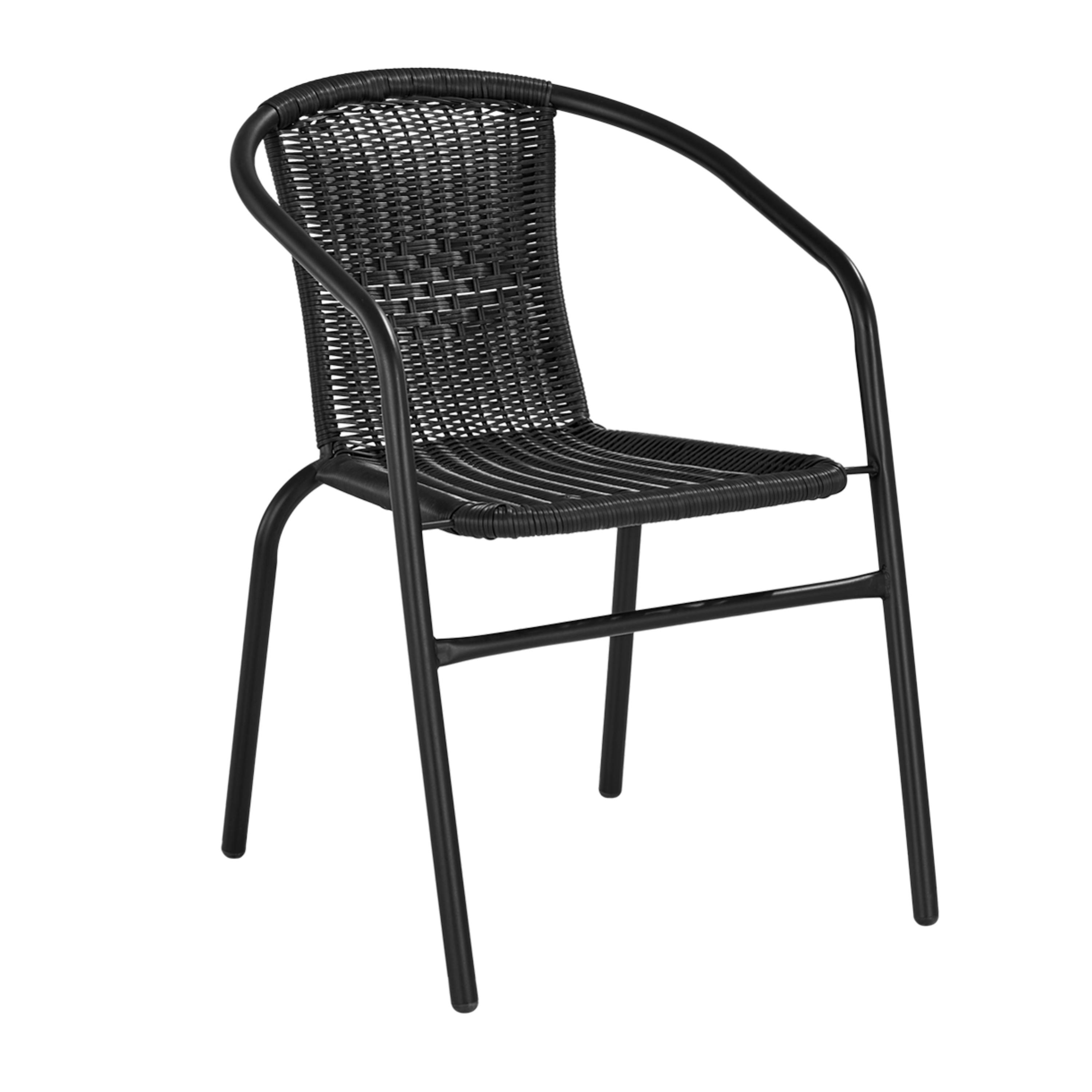 Konstrukce židle je vyrobena z kovu, který zajišťuje stabilitu a dlouhou životnost. Sedák i opěradlo jsou opleteny umělým ratanem (polyratanem), který věrně napodobuje přírodní ratan, ale je mnohem lépe přizpůsoben venkovnímu prostředí. Polyratan je odolný vůči vlhkosti, UV záření i změnám počasí, snadno se udržuje a dlouhodobě si zachovává svůj vzhled.