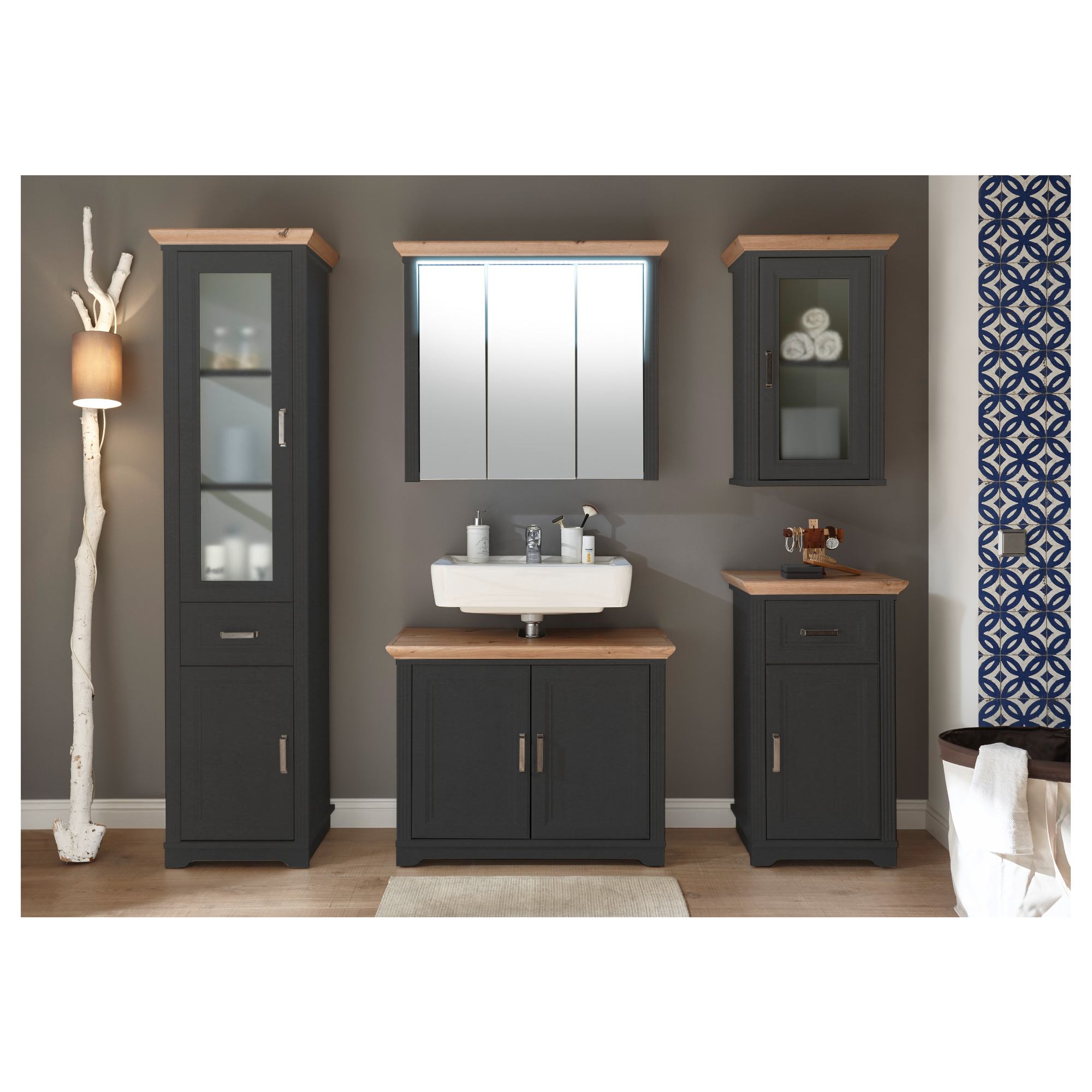 Závěsná koupelnová skříňka JASMIN vnese do vaší koupelny nádech venkovské romantiky. Provedení v imitaci borovice a dubu spolu s ozdobnými prvky a kovovými úchytkami dotváří celkový vzhled. Prosklená dvířka s mléčným sklem ukrývají prakticky rozdělené úložné místo. Nezabere moc místa, ale určitě vám poskytne dostatek úložného prostoru. Díky ní bude vaše koupelna vždy působit čistým a uklizeným dojmem.