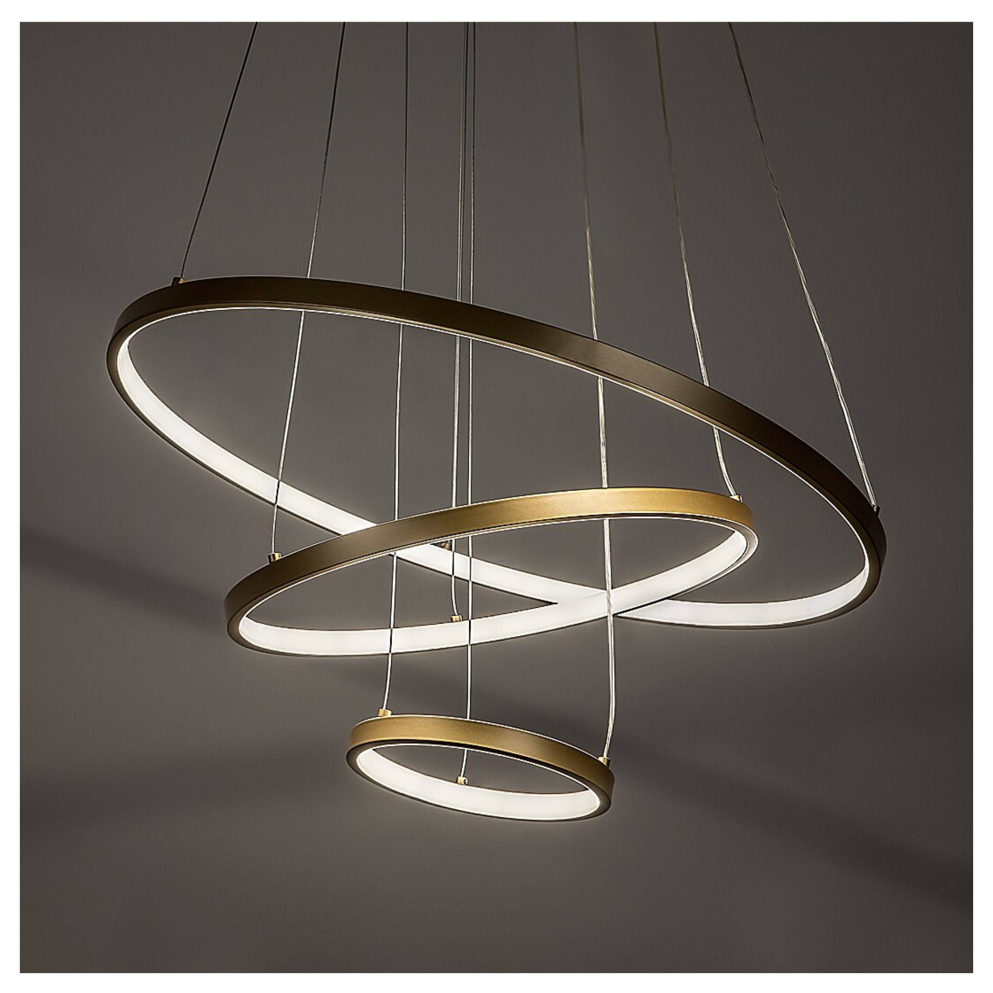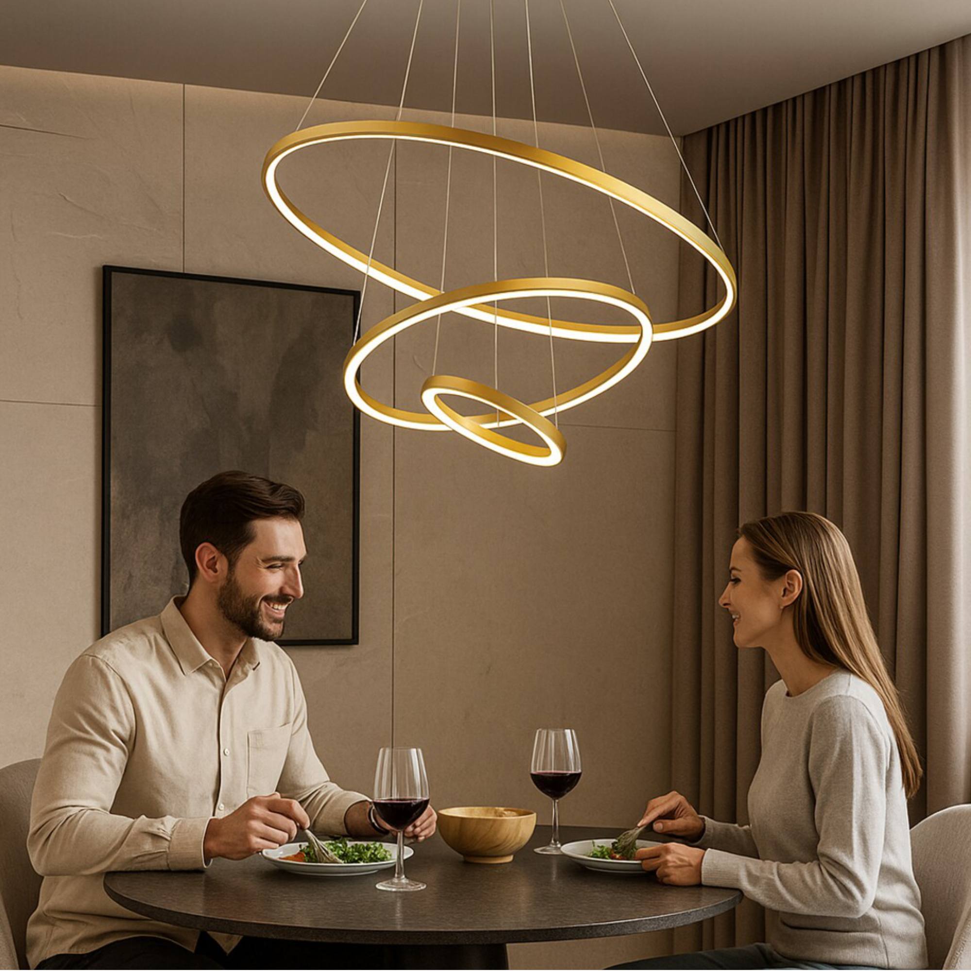 Zaujme svou konstrukcí, složenou ze 3 různě velkých kruhů, které ze svítidla vytvářejí jedinečný designový prvek každé místnosti. Kruhy lze navíc nastavit podle potřeby pomocí kovových lanek. Je vyrobeno z kovu a zavěšeno na kulaté základně. Bude ideálním osvětlením nad konferenční či jídelní stůl.