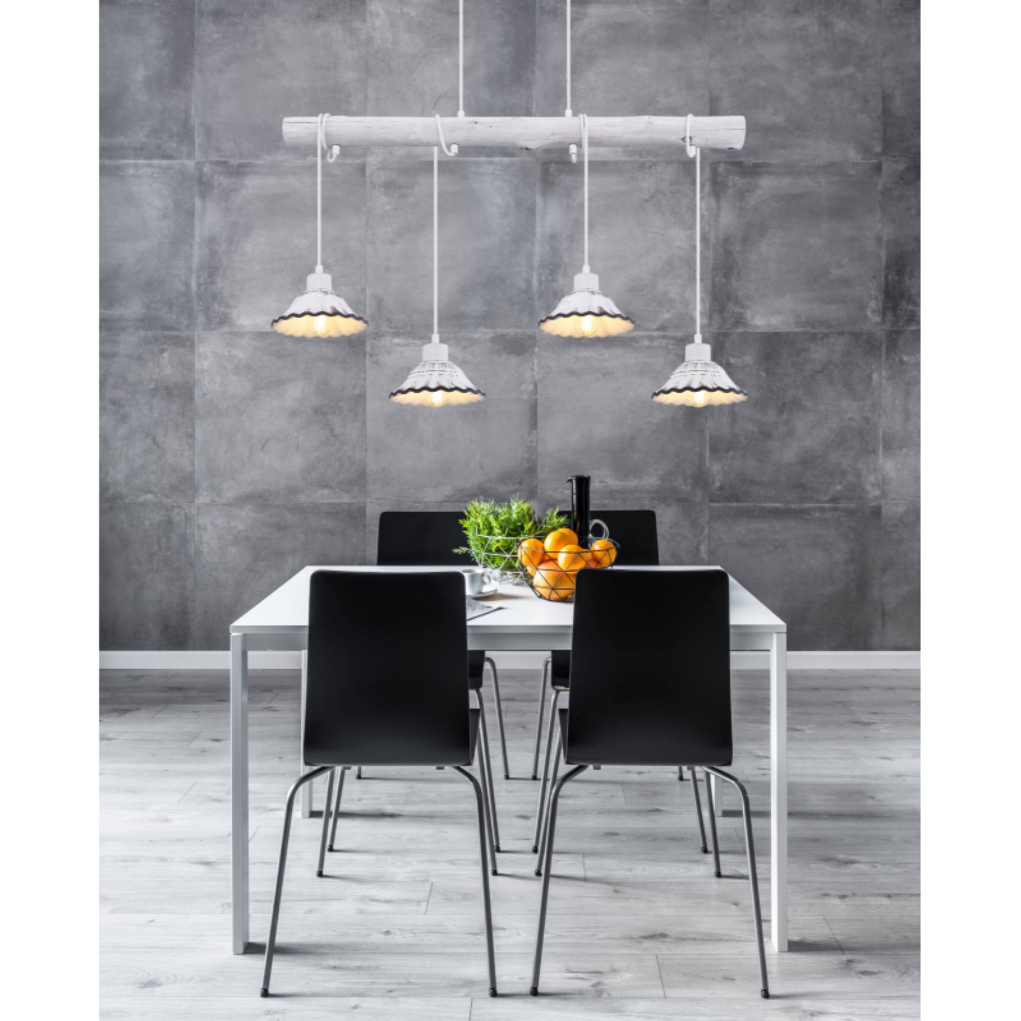 Závěsné svítidlo JOWITA 7 zaujme jednoduchým designem z bílého kovu a keramiky. Čtyři stínítka svítidla mohou být vybavena žárovkou E27 dle vašeho výběru, což vám dává možnost libovolně definovat barvu a jas světla. Celkový obraz ve svém interiéru můžete doplnit dalšími svítidly ze série JOWITA.