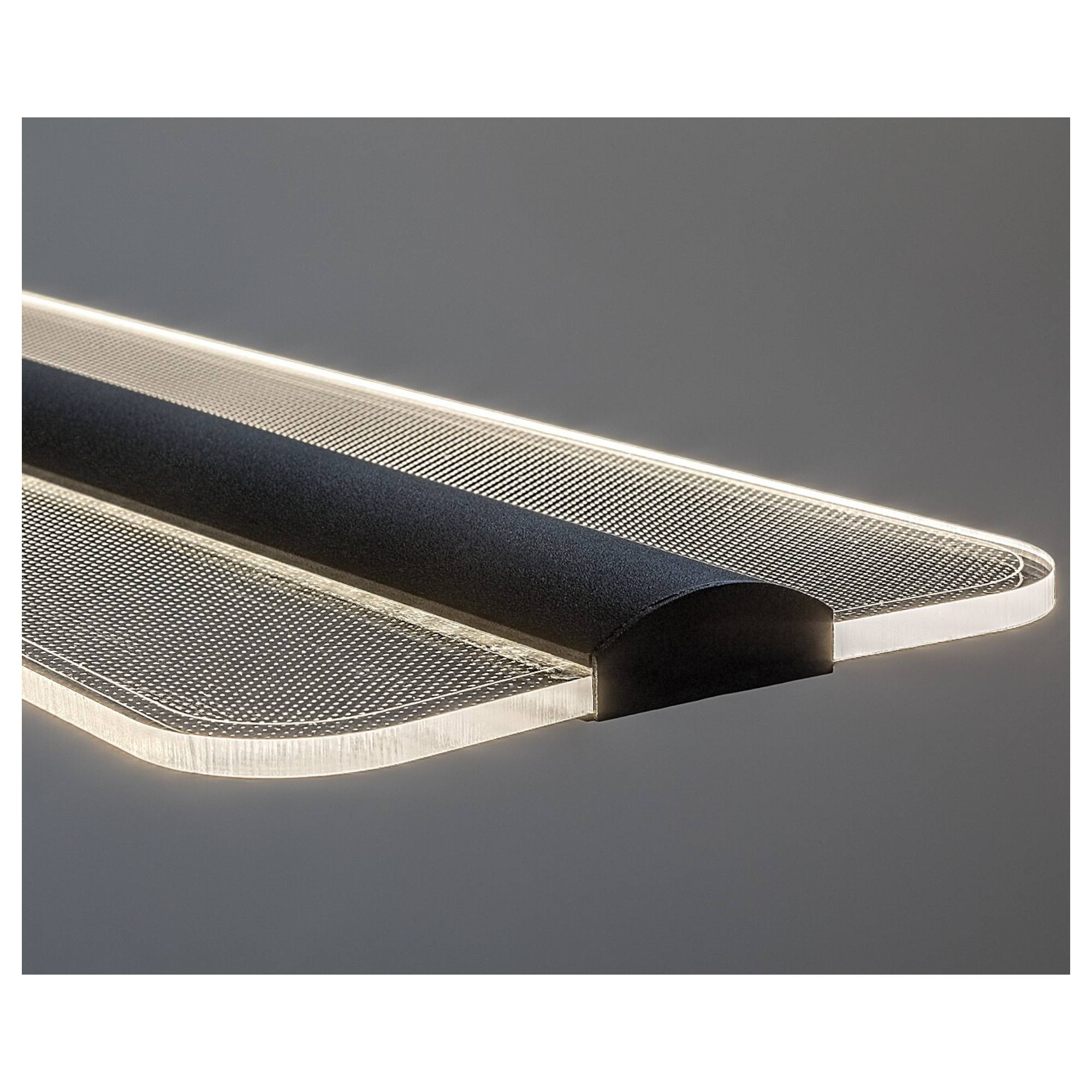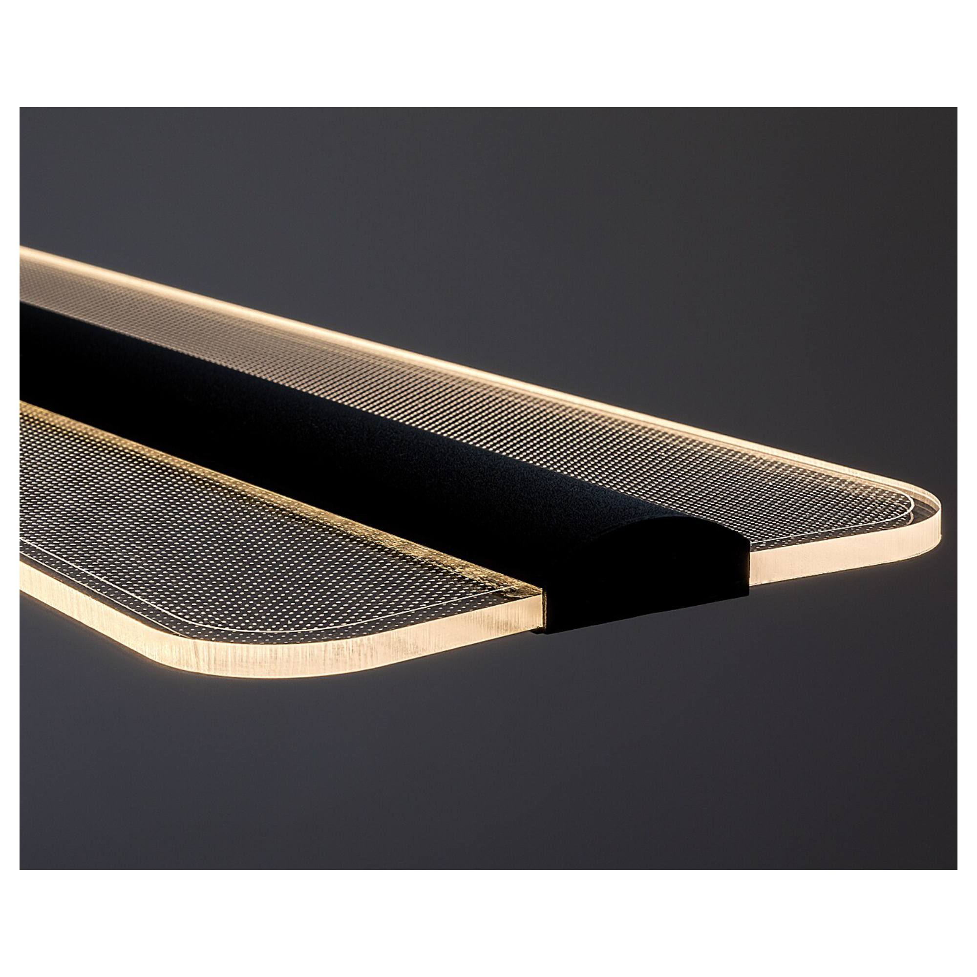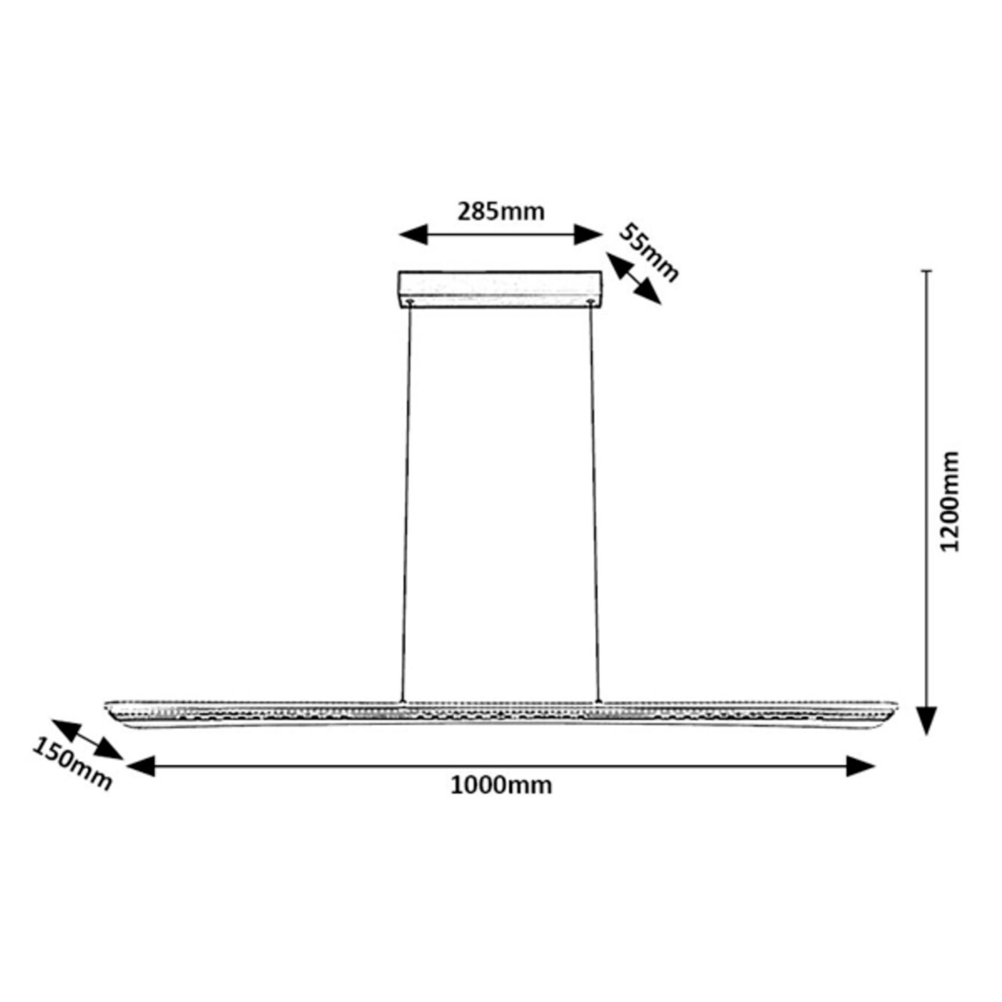 Zaujme na první pohled svým stínidlem o šířce 100 cm, které tvoří dominantní prvek svítidla. Ve středu svítidla je umístěna kovová tyč v černé barvě, ke které je z obou stran připevněno stínidlo z průhledného akrylu. Akryl je navíc doplněn tečkovaným vzorem, jež vytváří příjemné atmosférické osvětlení. Bude ideální volbou nad konferenční či jídelní stůl.
