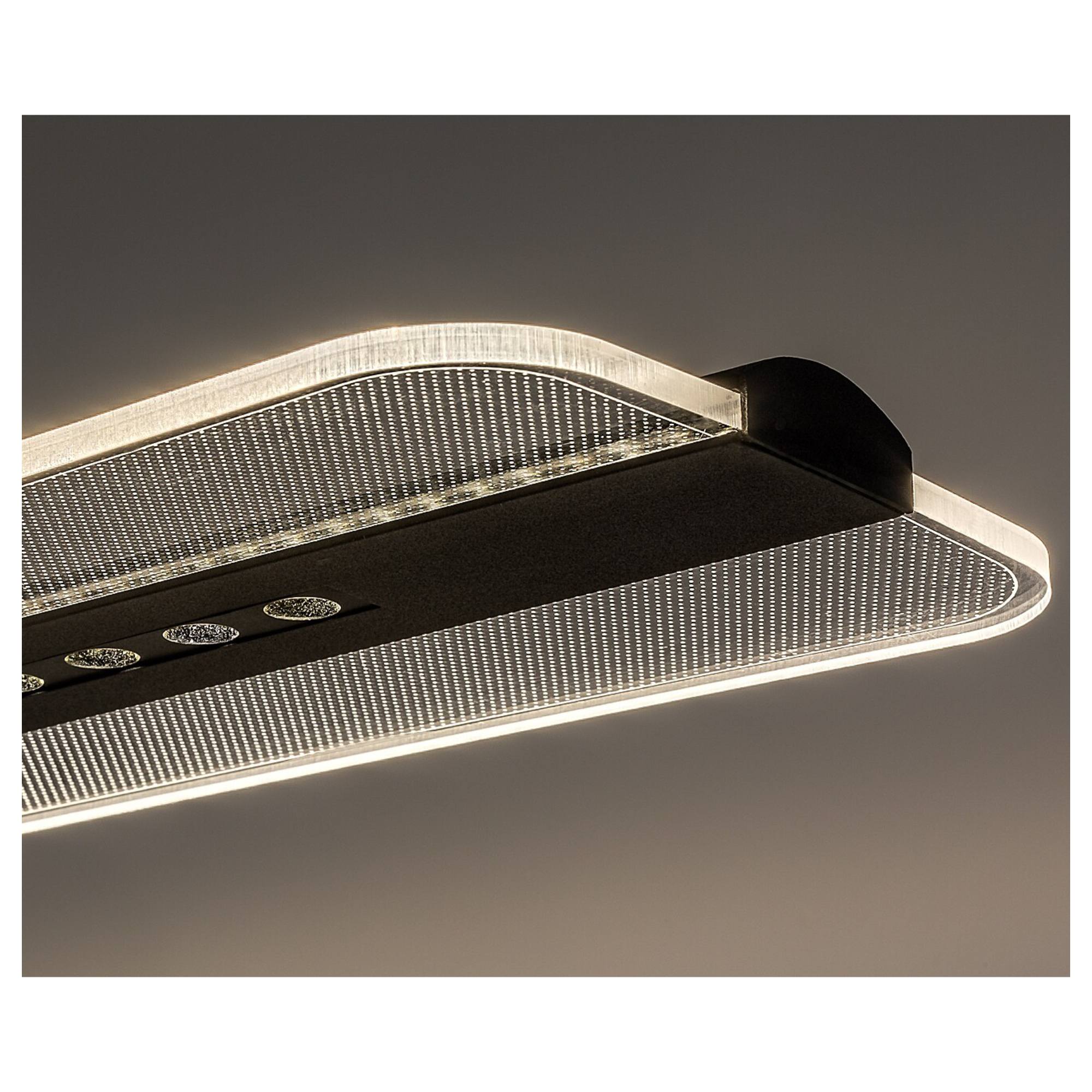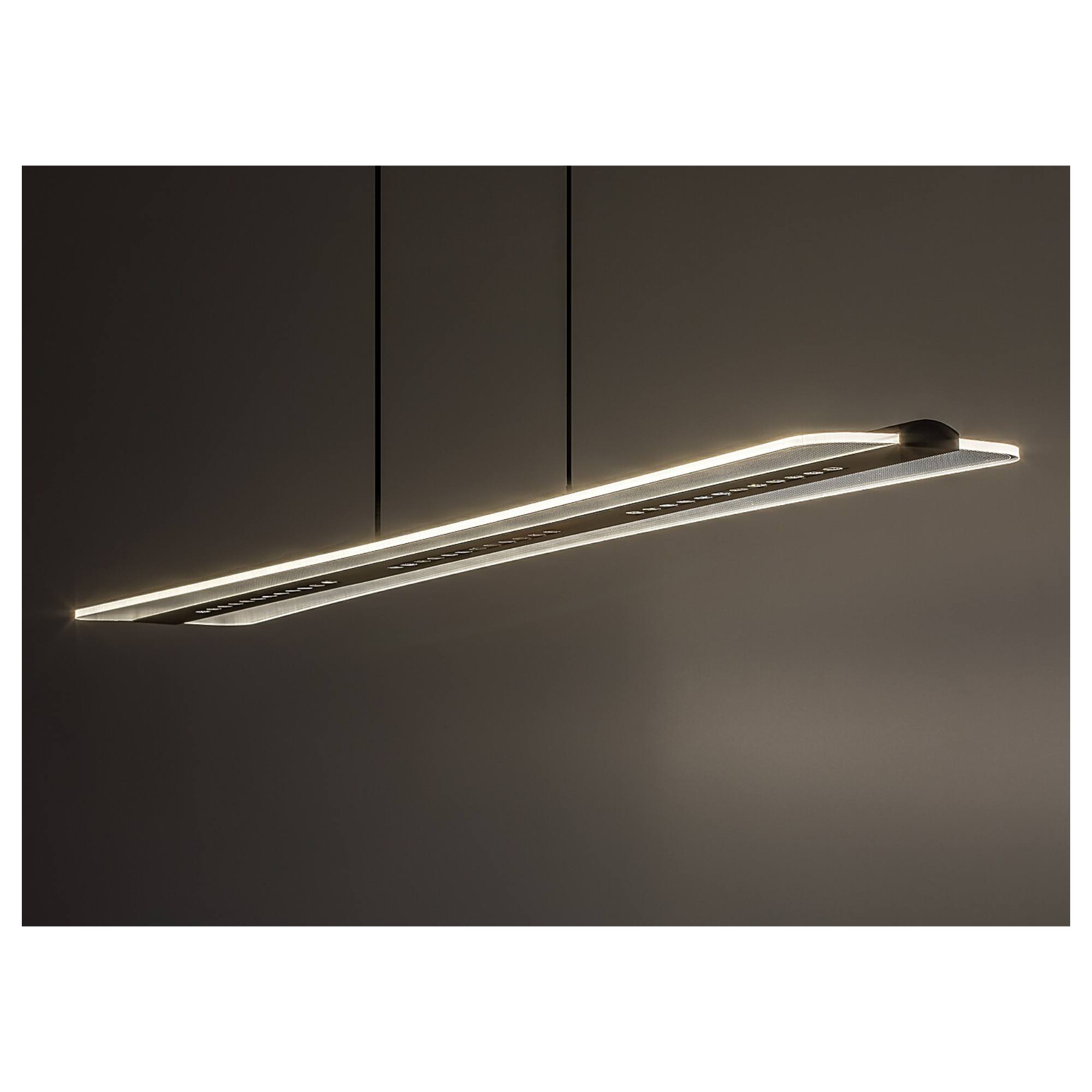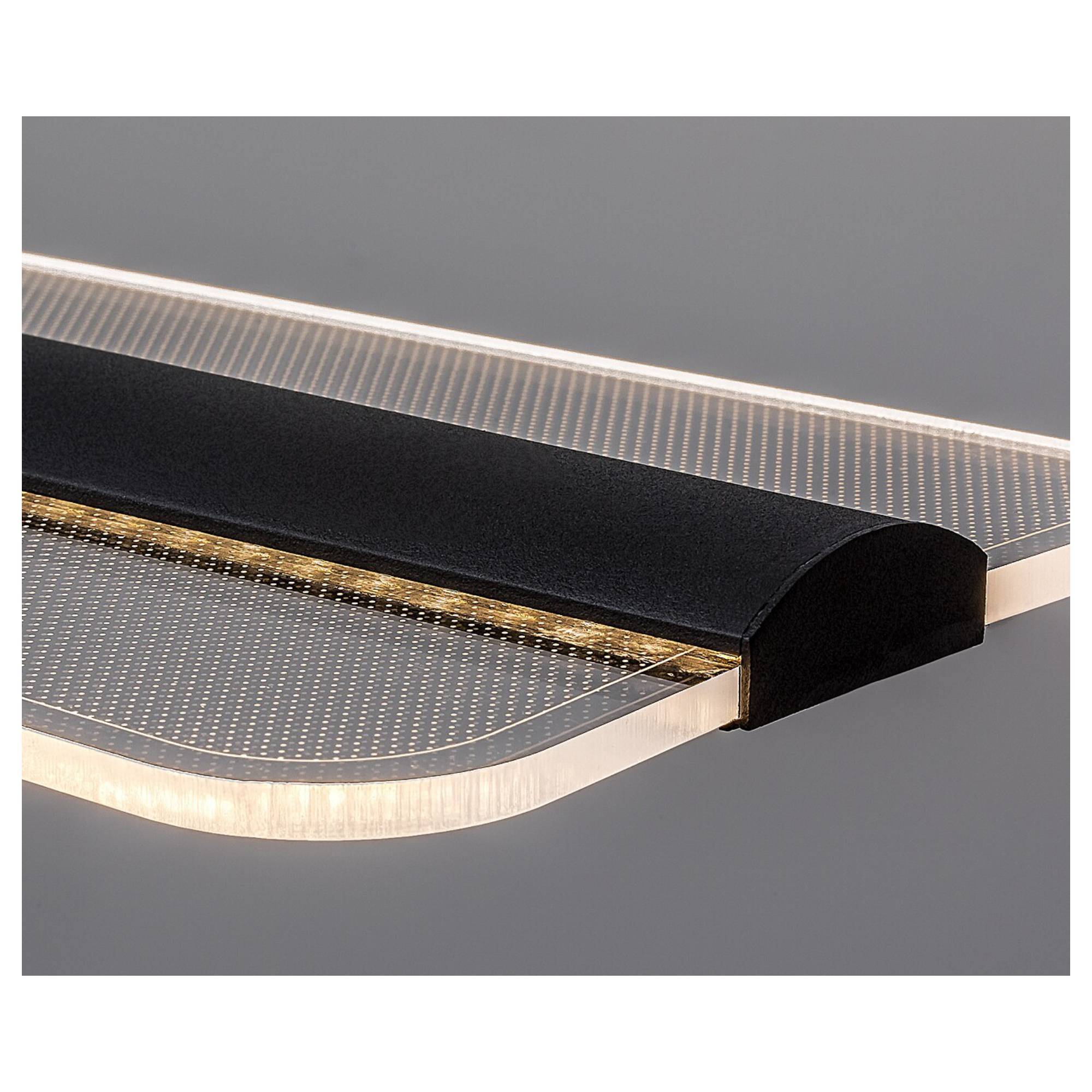 Zaujme na první pohled svým stínidlem o šířce 100 cm, které tvoří dominantní prvek svítidla. Ve středu svítidla je umístěna kovová tyč v černé barvě, ke které je z obou stran připevněno stínidlo z průhledného akrylu. Akryl je navíc doplněn tečkovaným vzorem, jež vytváří příjemné atmosférické osvětlení. Bude ideální volbou nad konferenční či jídelní stůl.