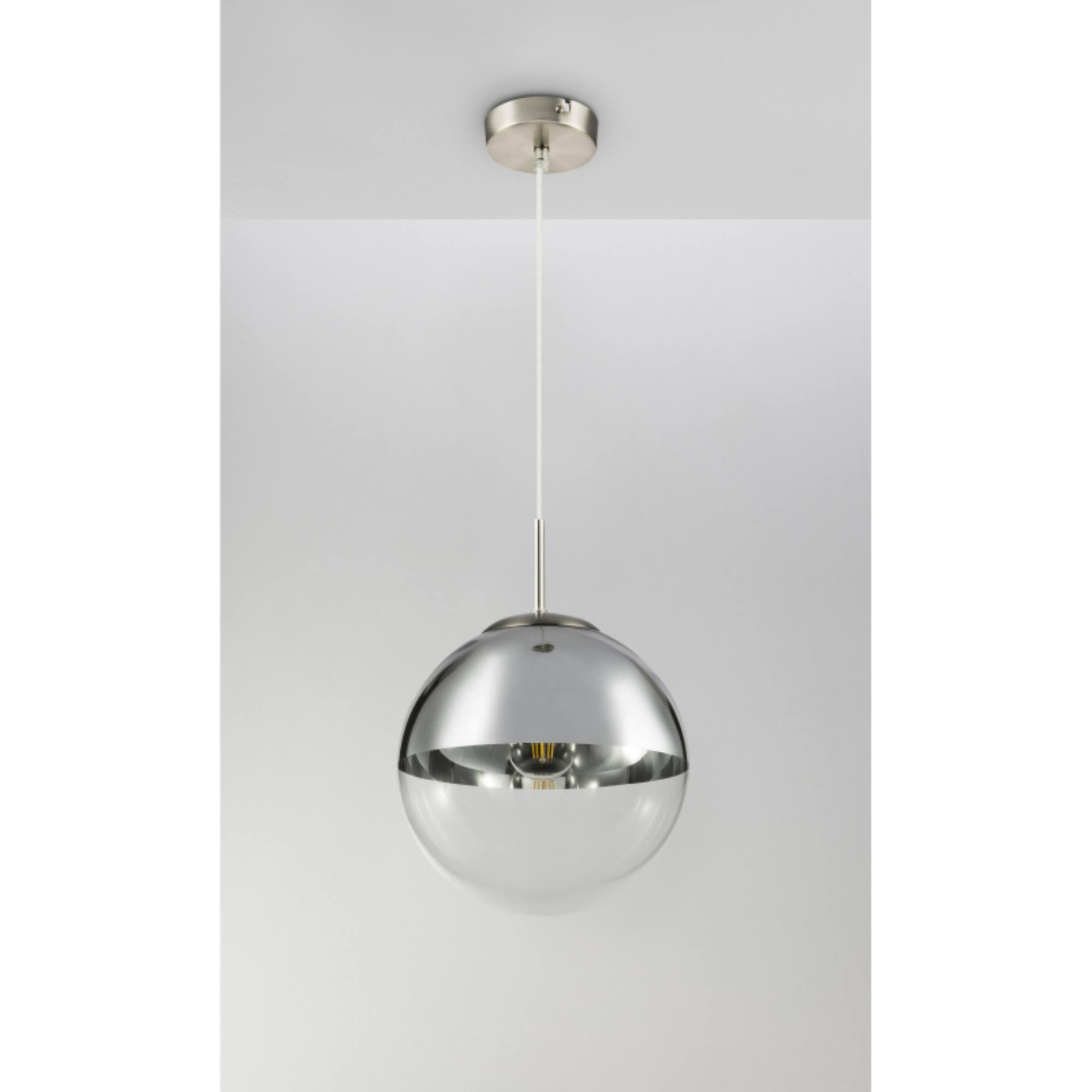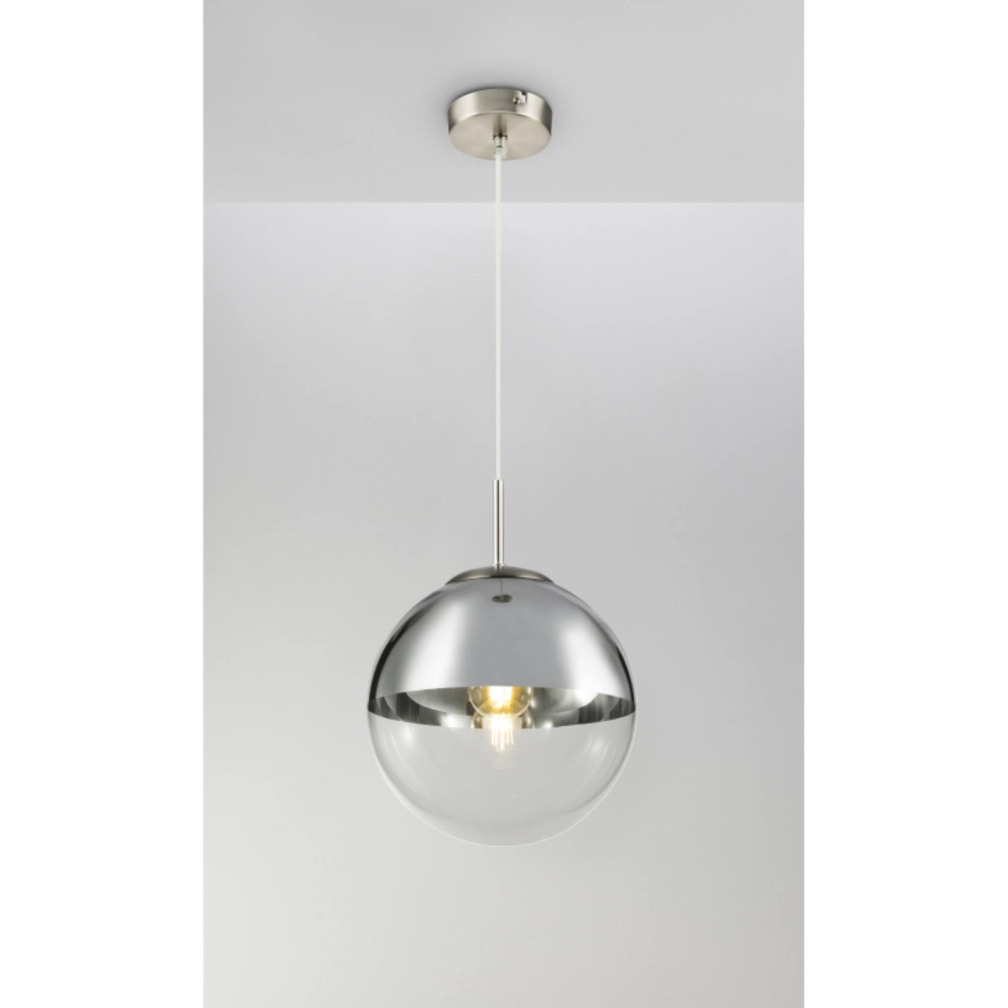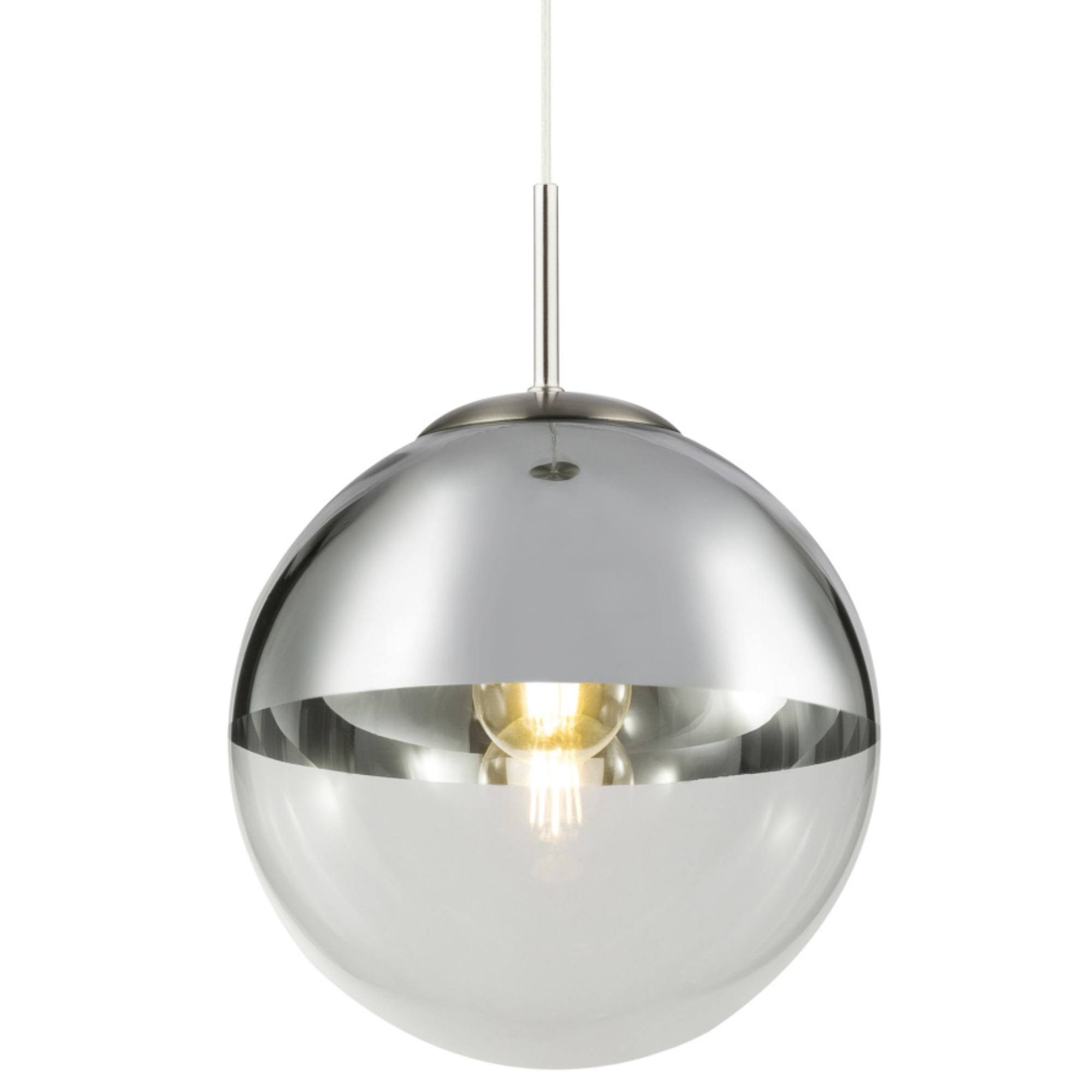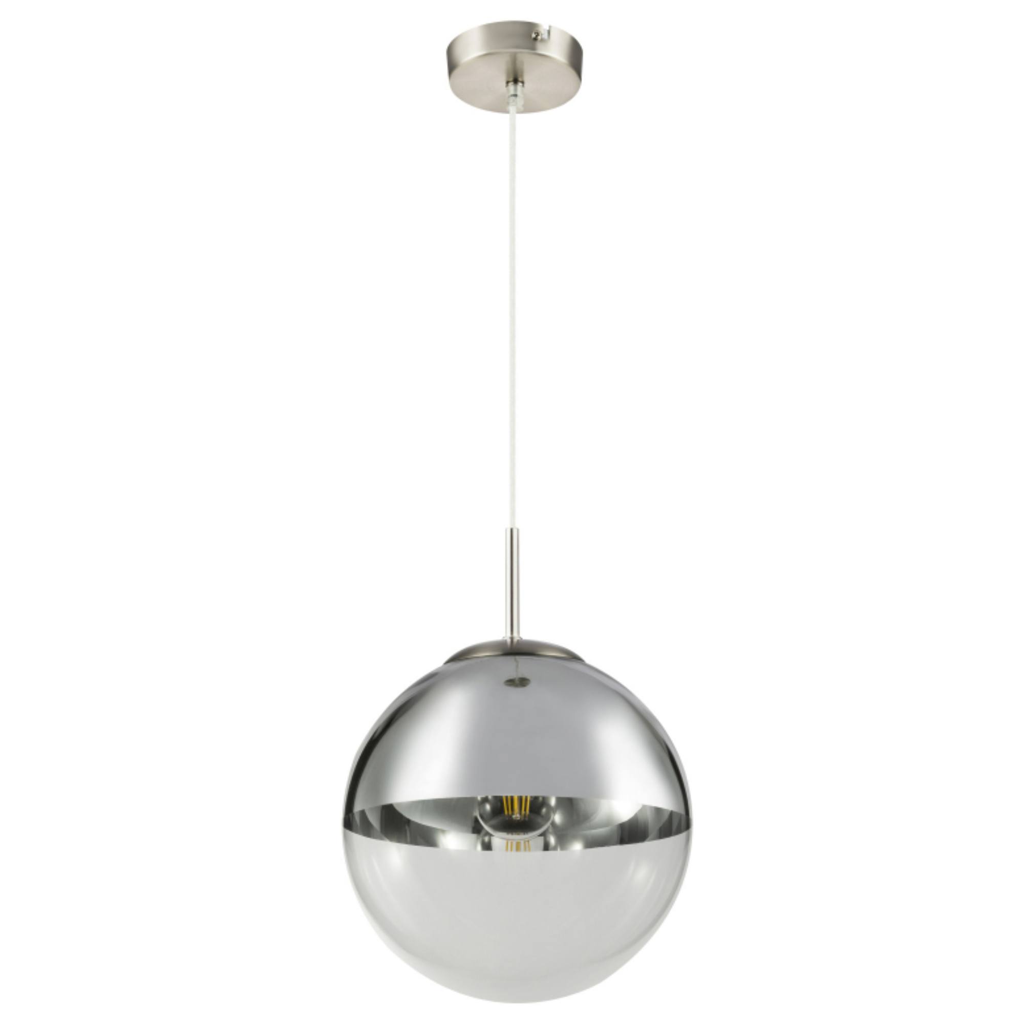 Závěsné svítidlo VARUS 2 vás uchvátí svým designovým vzhledem. Kovový materiál v kombinaci se skleněnou koulí o průměru 25 cm vytváří moderní atmosféru v celé místnosti. Objímka E27 vám umožňuje použít žárovku až do 40 W a určit si barvu a intenzitu světla. S dalšími modely stejnojmenné série VARUS si vybavíte interiér v jednotném pojetí.