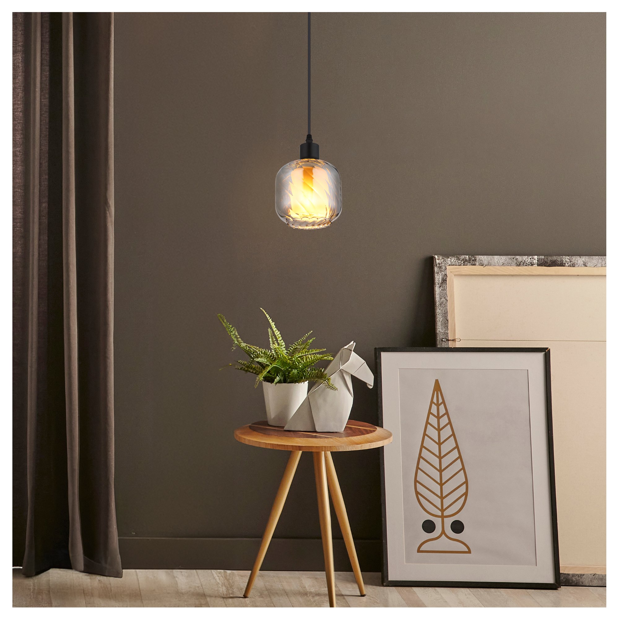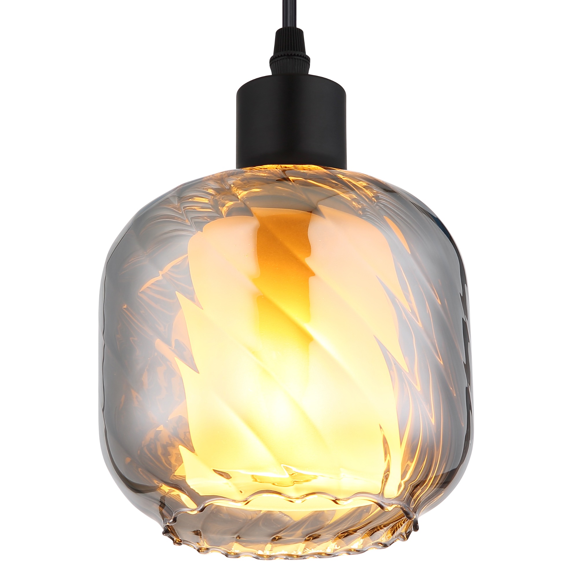 Má kovovou konstrukci v černé barvě, na které je umístěno elegantní skleněné stínidlo. Sklo je doplněno kouřovým efektem, který podtrhuje zajímavý design svítidla. Žárovka je umístěna za bílým sklem, jež jemně rozptýlí světlo v místnosti a vytváří tak útulnou atmosféru. Praktickým doplňkem je možnost zkrácení výšky podle vašich potřeb. Vyjímat se bude v moderních interiérech nad jídelním stolem či barem. Doplní však i klasický interiér jako zajímavý designový kousek.