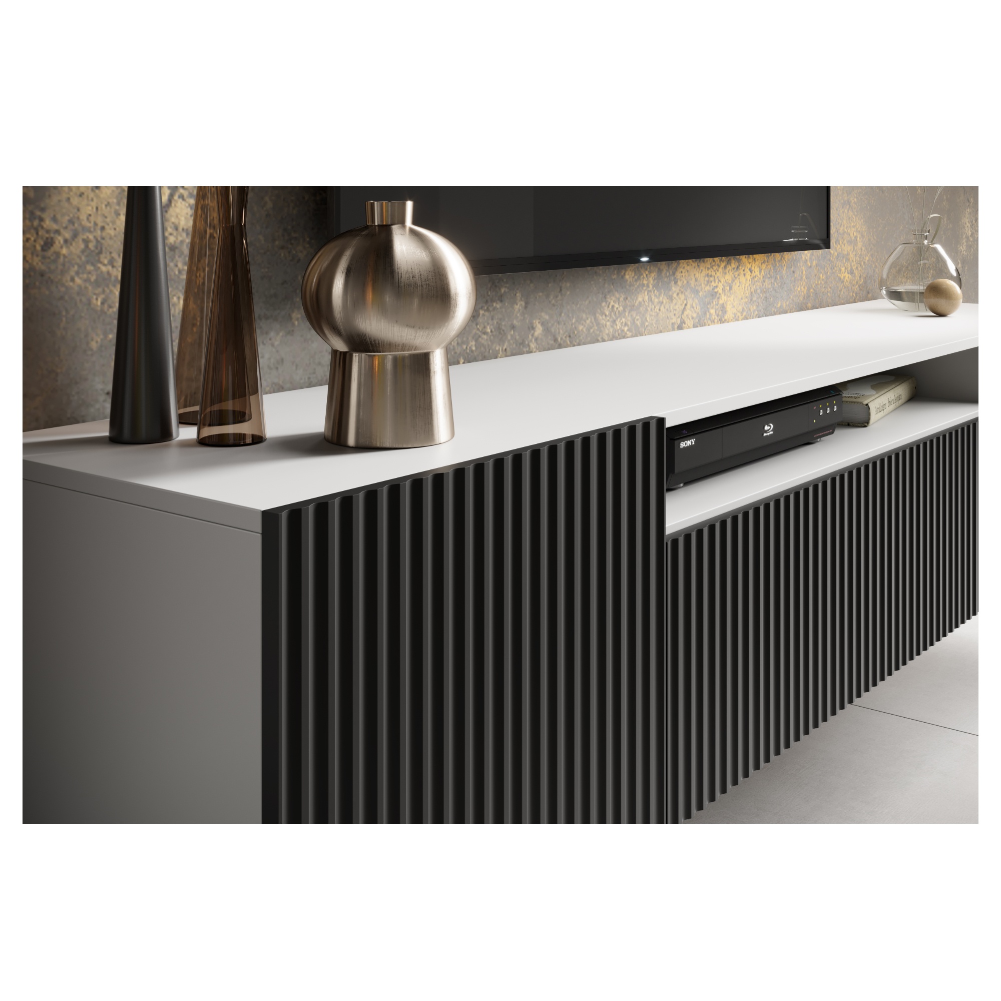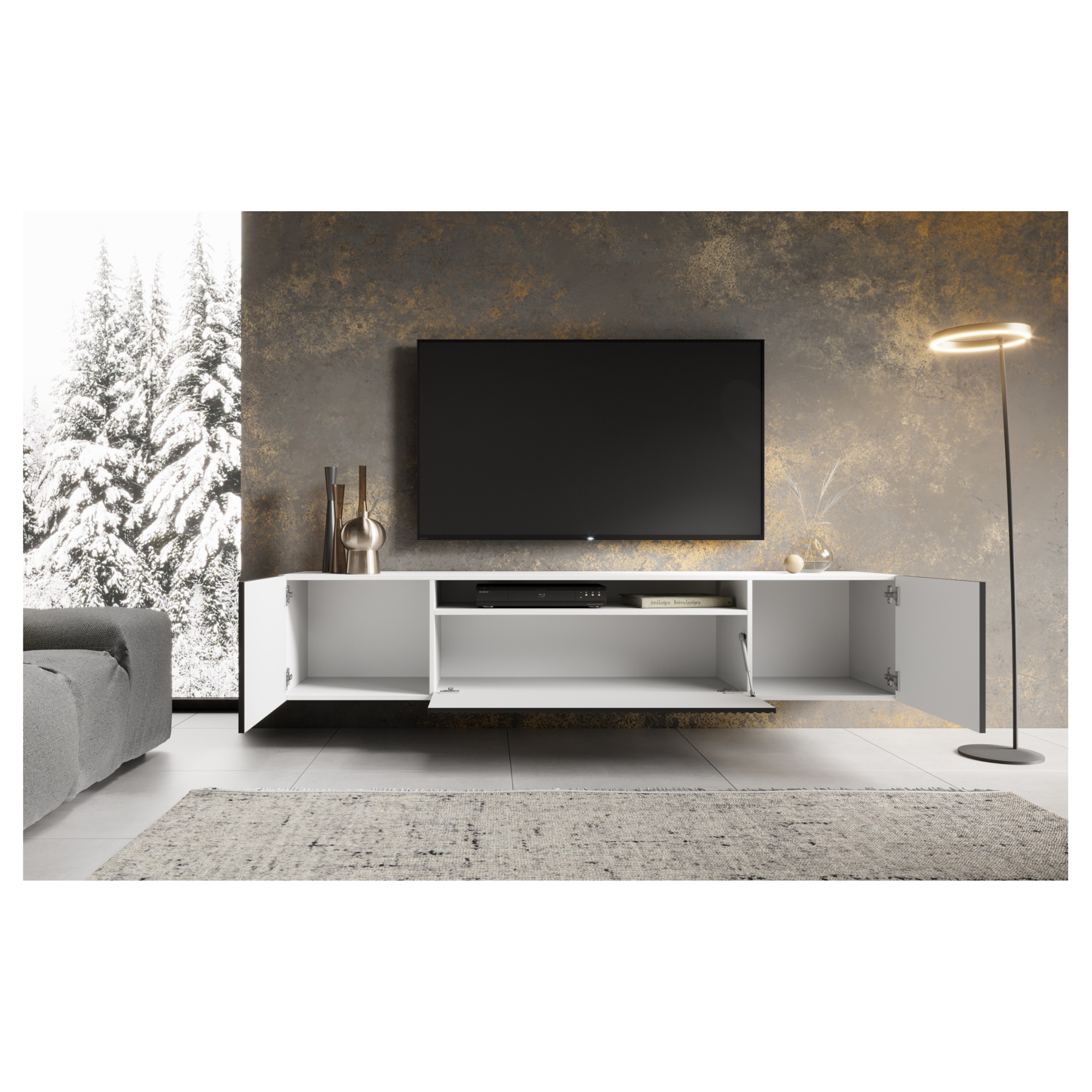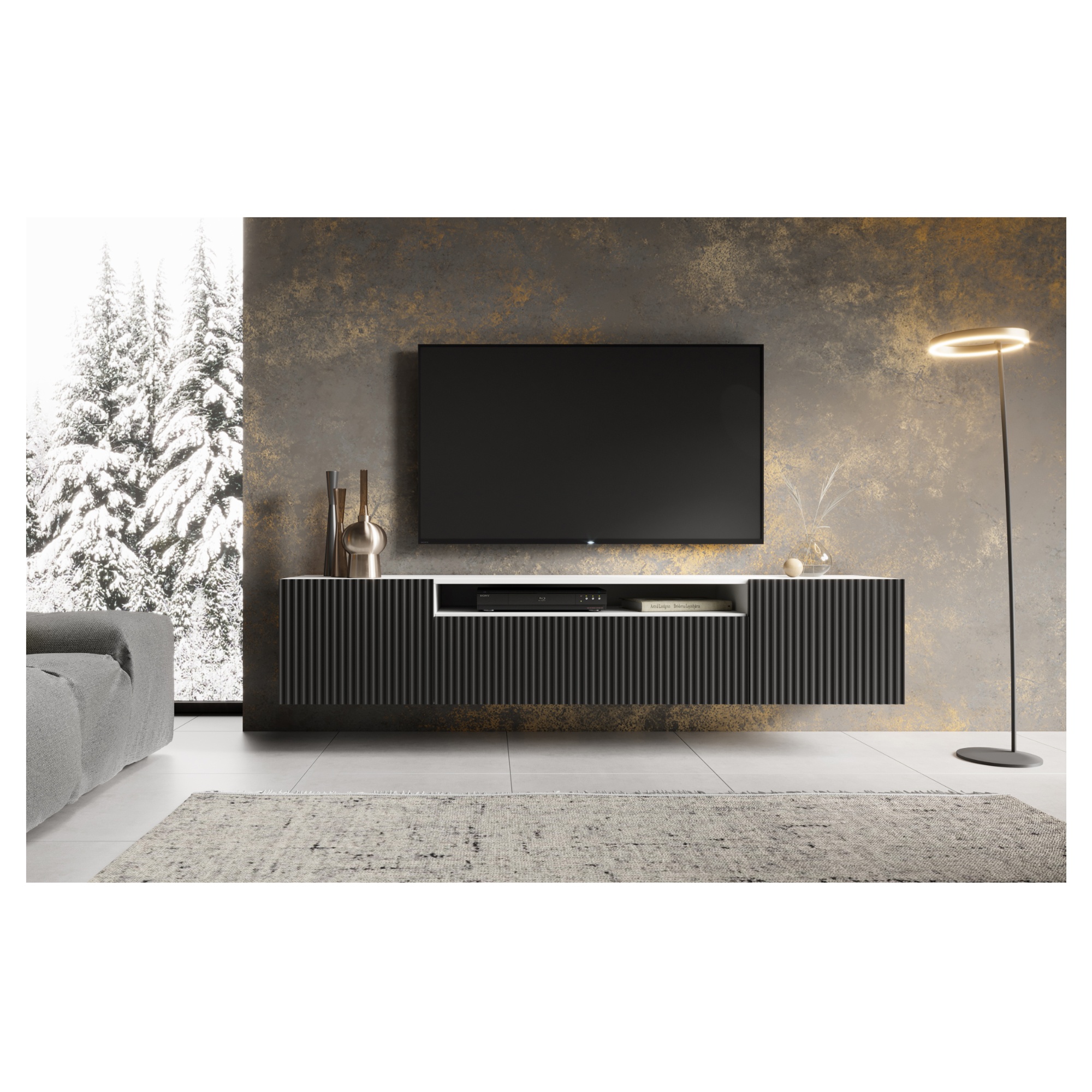 Závěsný TV stolek NONIE, který zaujme stylovým bezúchytovým provedením, moderním vzhledem i praktičností, dokonale zapadne do každého obývacího pokoje.