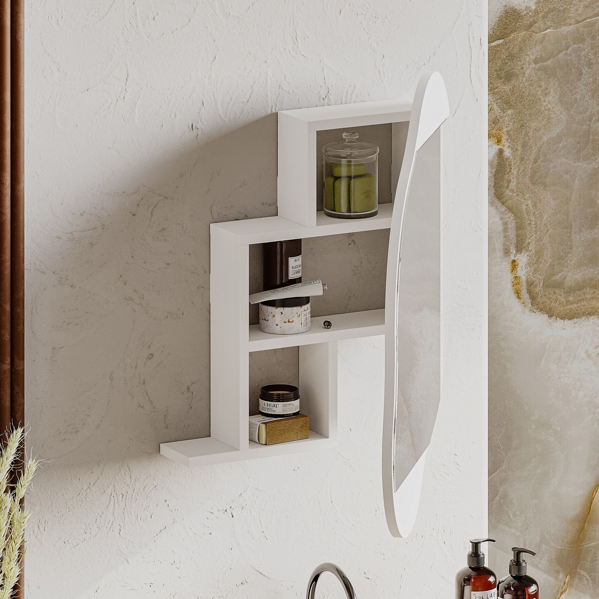 Skříňka nabízí praktický úložný prostor pro kosmetické a hygienické potřeby. Díky tomu, že do ní přehledně uložíte zubní kartáček, pastu i kosmetiku, bude vaše koupelna pořád působit uklizeně a organizovaně.