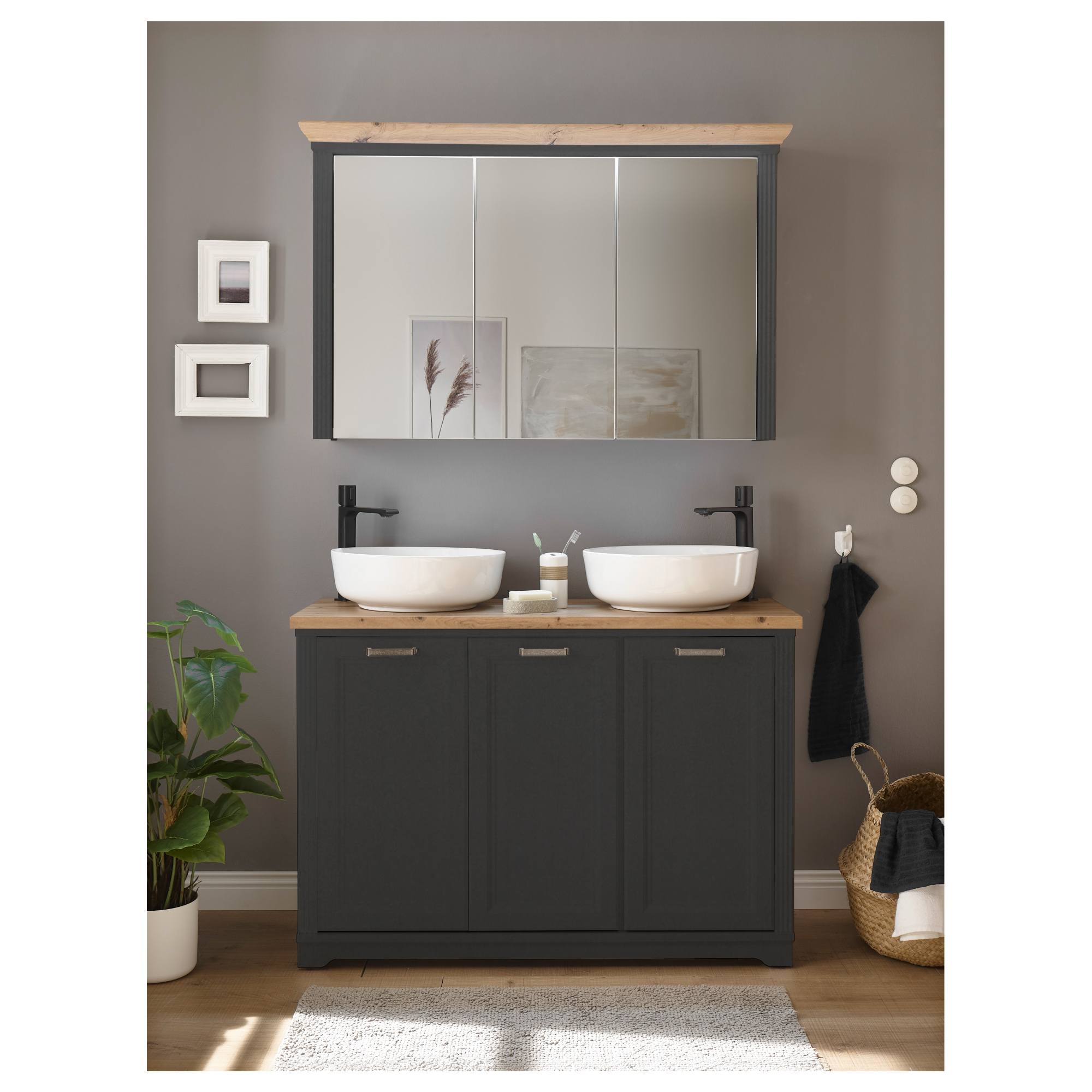 Velká zrcadlová dvířka projasní a opticky zvětší prostor a navíc skříňka nabízí velký úložný prostor pro kosmetické a hygienické přípravky. Svým čistým provedením vnese do vaší koupelny nádech venkovské romantiky. Odkládací prostor za dvířky je rozdělený policemi. Středové dvířka jsou variabilní a při montáži si můžete zvolit jestli se budou otevírat vpravo nebo vlevo. Jistě oceníte také integrované LED osvětlení, které je součástí skříňky.