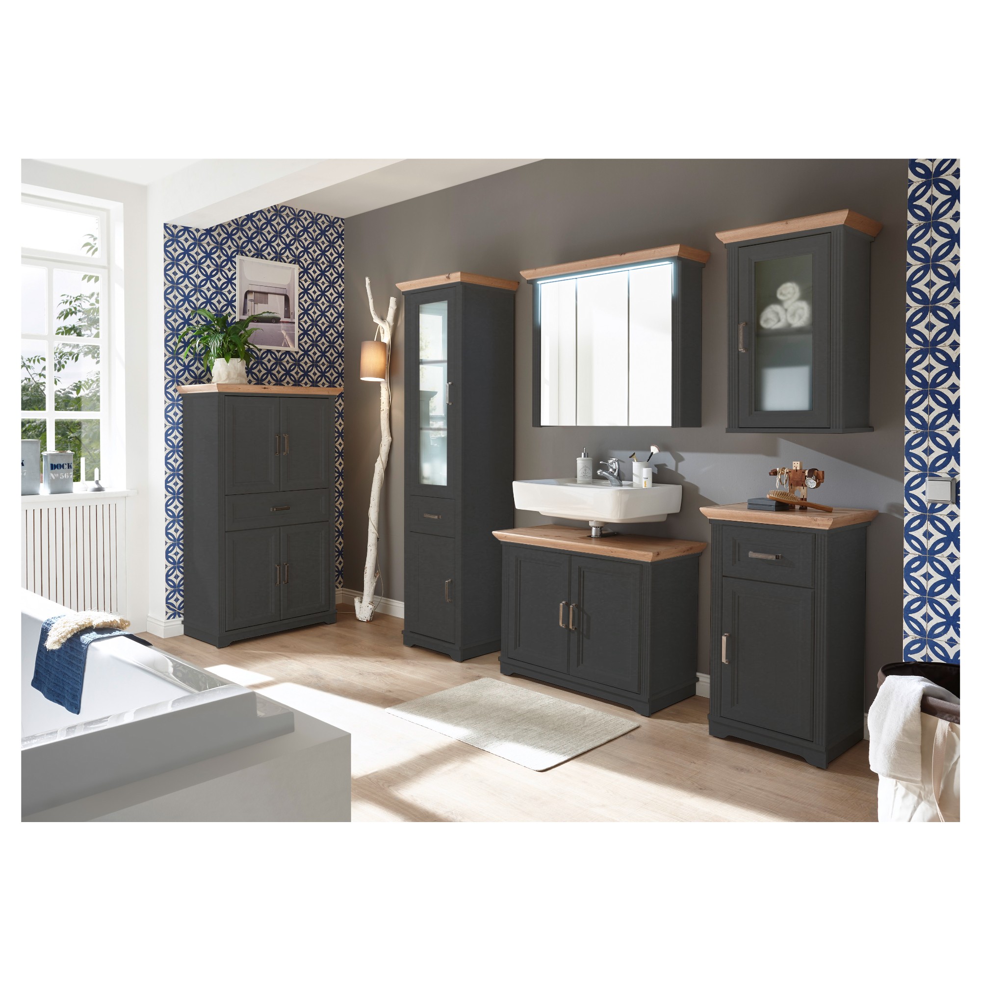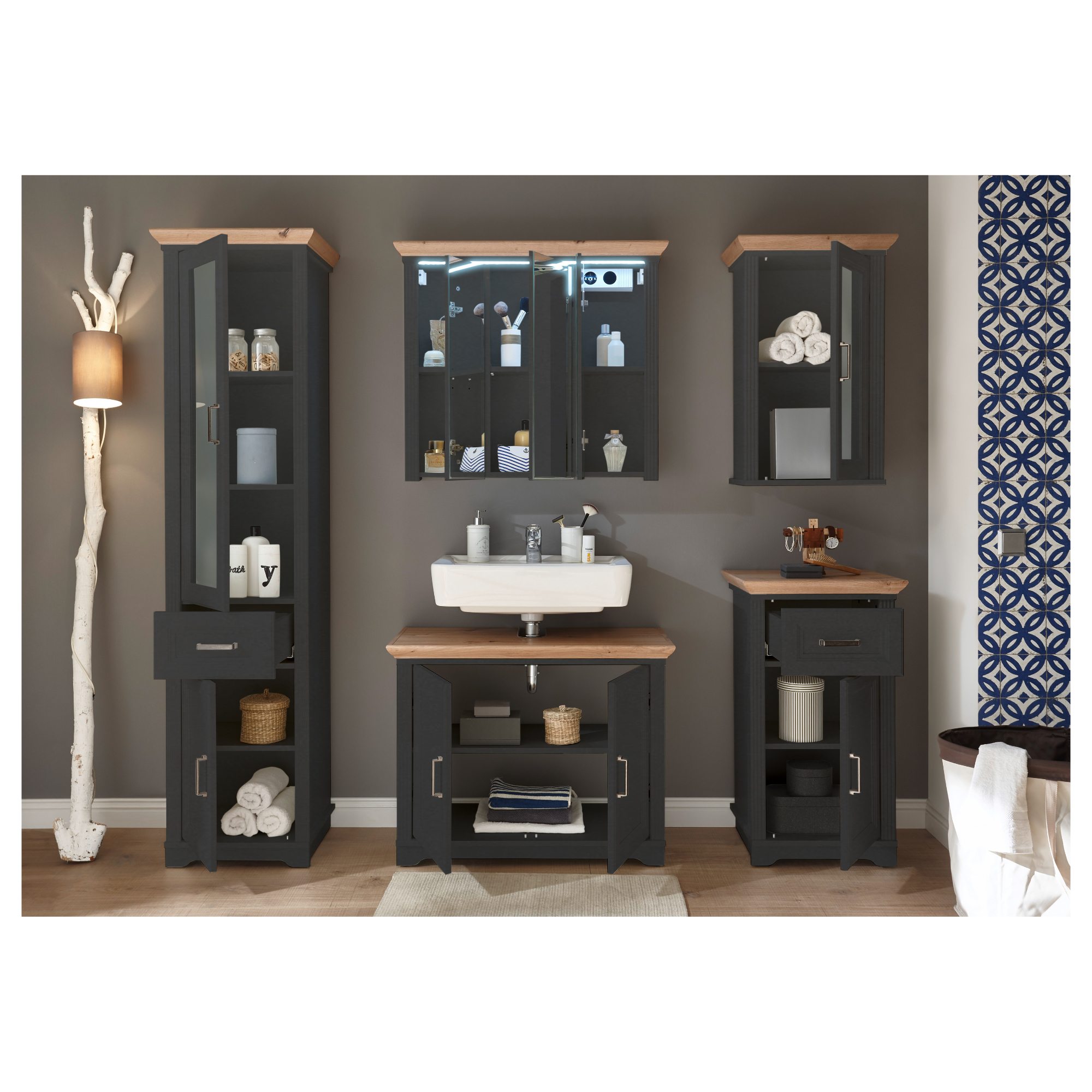 Zrcadlová škříňka JASMIN - šedá/dub artisan, šířka 83 cm