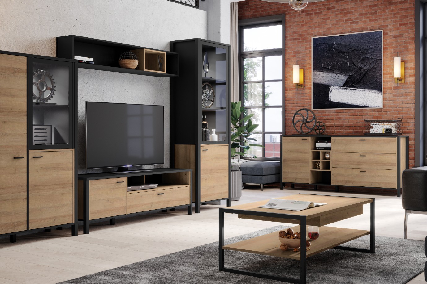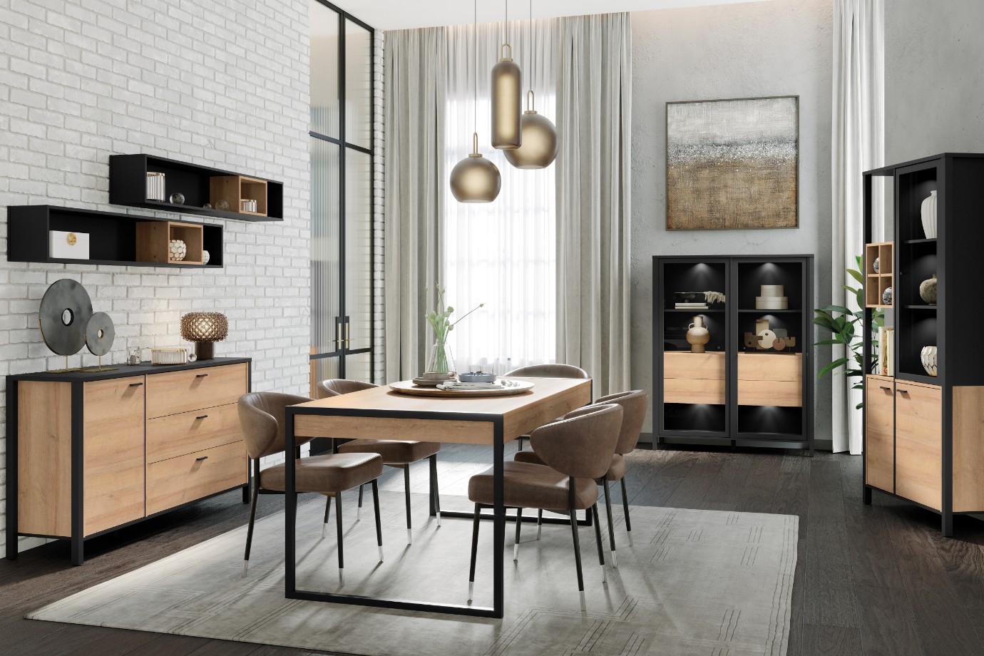 Moderní kolekce nábytku v industriálním stylu HIGH ROCK je originální kombinací dekoru dubu, tmavého dřeva a kovu. Detaily jako černé kovové úchyty, nebo kovové nohy u stolů v podobě rámu navíc dodávají interiéru loftový charakter. Nevšední design, ale také vysoká funkčnost, to jsou typické znaky kolekce HIGH ROCK. Její jednotlivé prvky můžete libovolně skládat k sobě a vytvořit tak jedinečnou kombinaci, která bude vypadat skvěle v obývacím pokoji i jídelně nebo přímo ve vstupním prostoru.