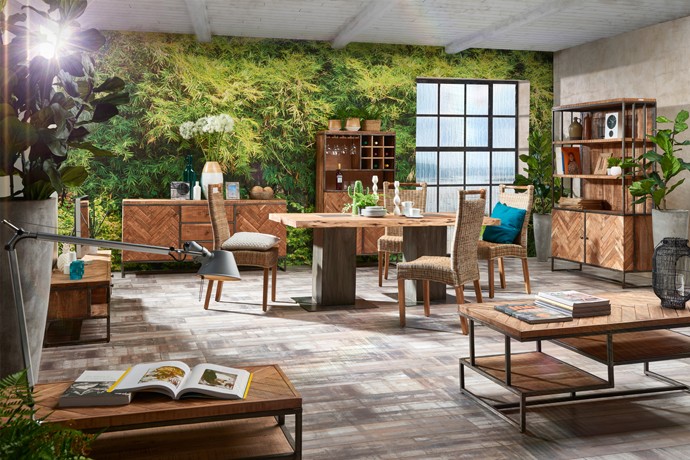 V sérii produktů PARQUET se industriální design střetává s exotickou přírodou. Nábytek je vyrobený z akáciového masivu z kontrolovaných indických plantáží. Akáciové dřevo je materiál, který přirozeně podléhá proměnám, může mít pruhovanou nebo skvrnitou strukturu. Typické pro tento druh nábytku jsou přiznané vady dřeva a ruční, hrubé zpracování, které dodává každému kusu zcela unikátní vzhled. Týká se to i kovových konstrukcí, které jsou opatřeny patinou a nakonec přelakovány. To vše ve výsledku dodává nábytku jedinečnost, kdy se provedení každého kusu může mírně lišit od produktové fotografie. K jeho největším přednostem patří dlouhá životnost a odolnost.